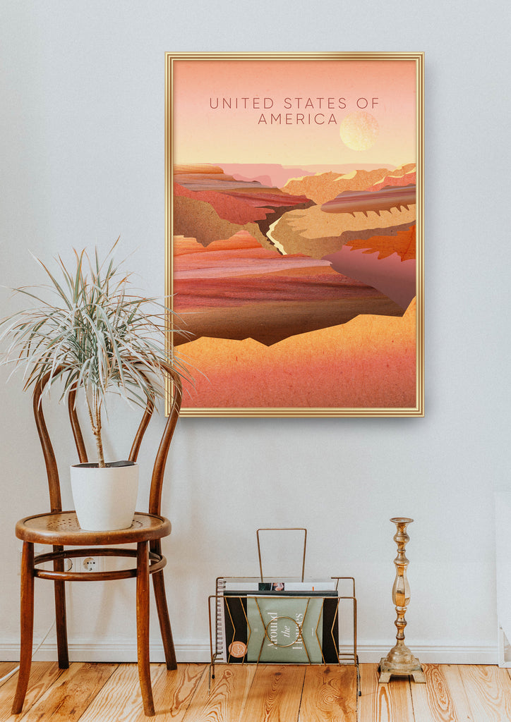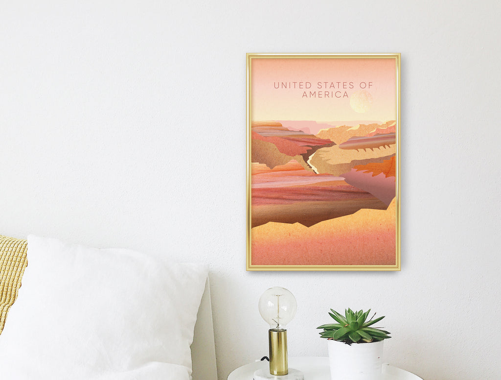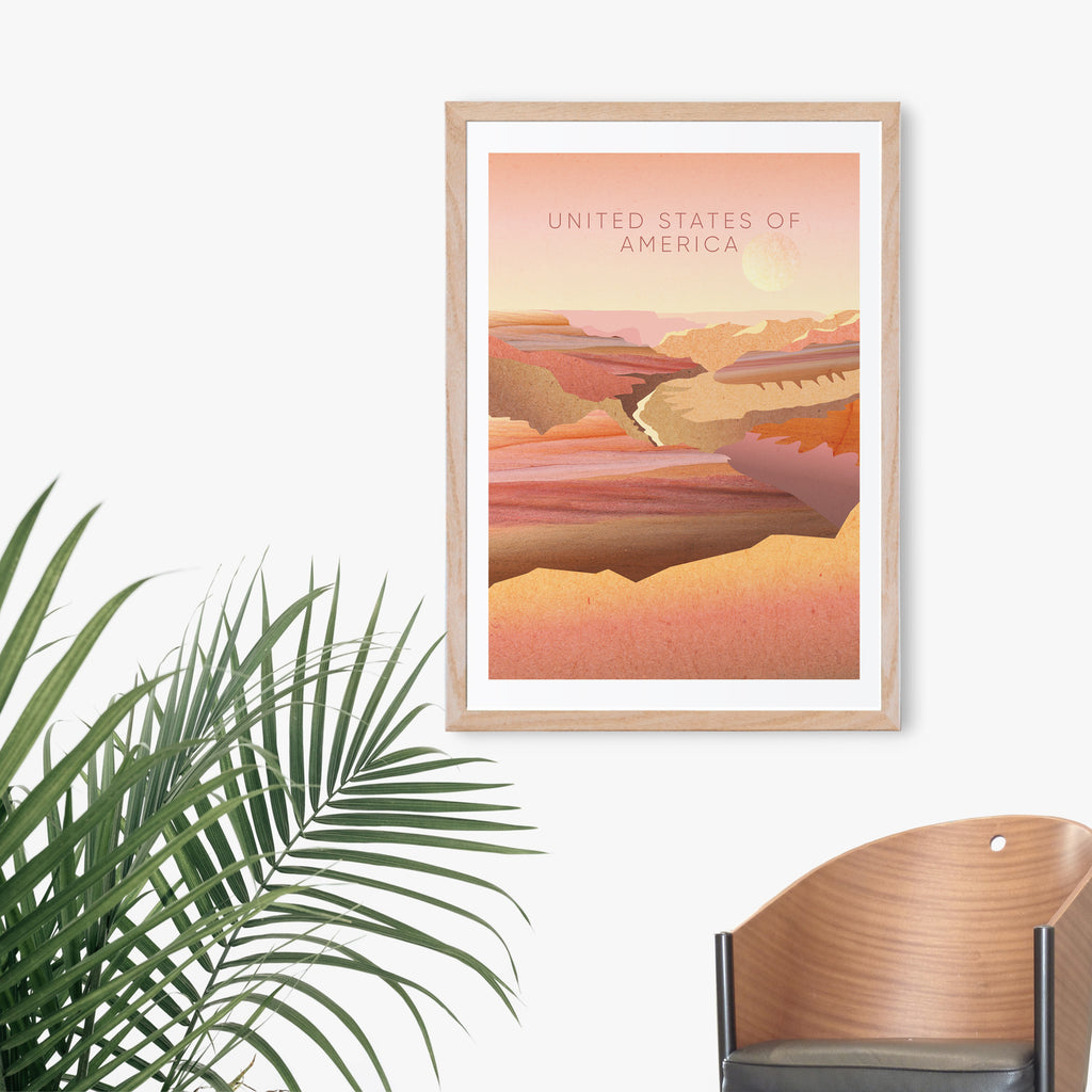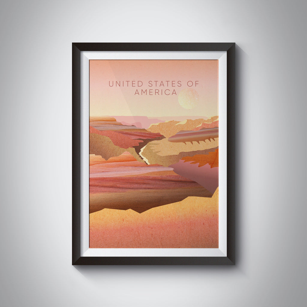 One of America's most famous landmarks, the Grand Canyon, is depicted in this travel poster.