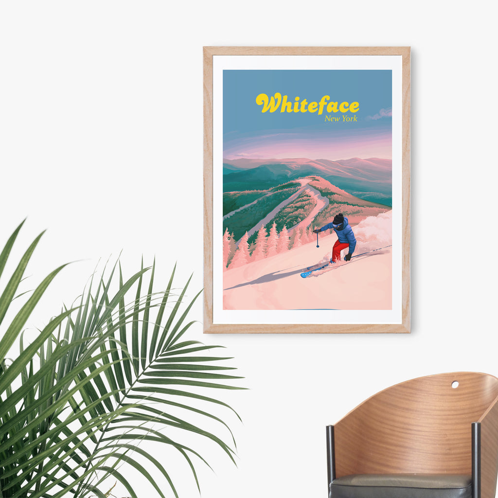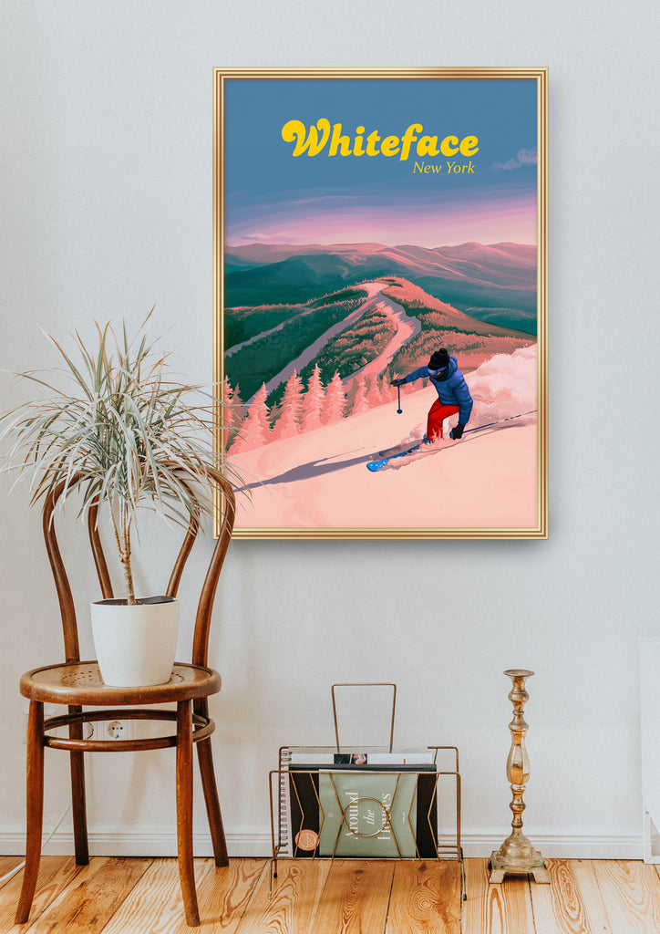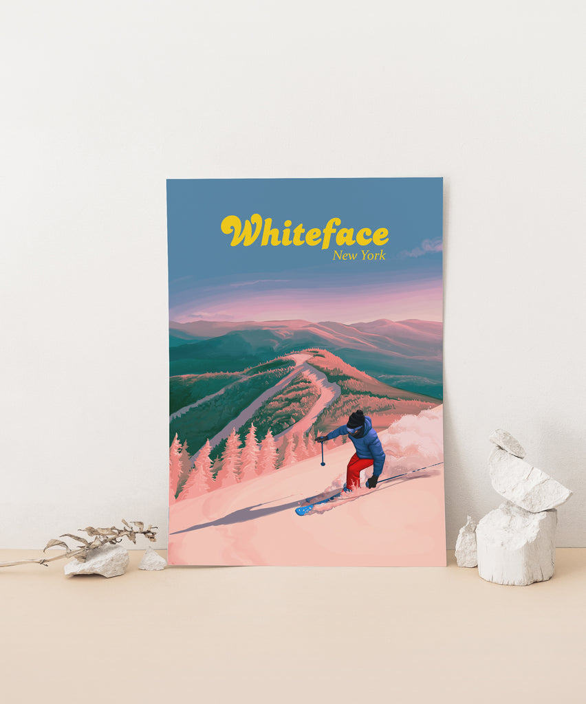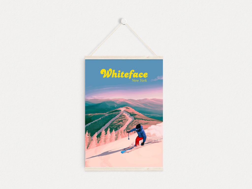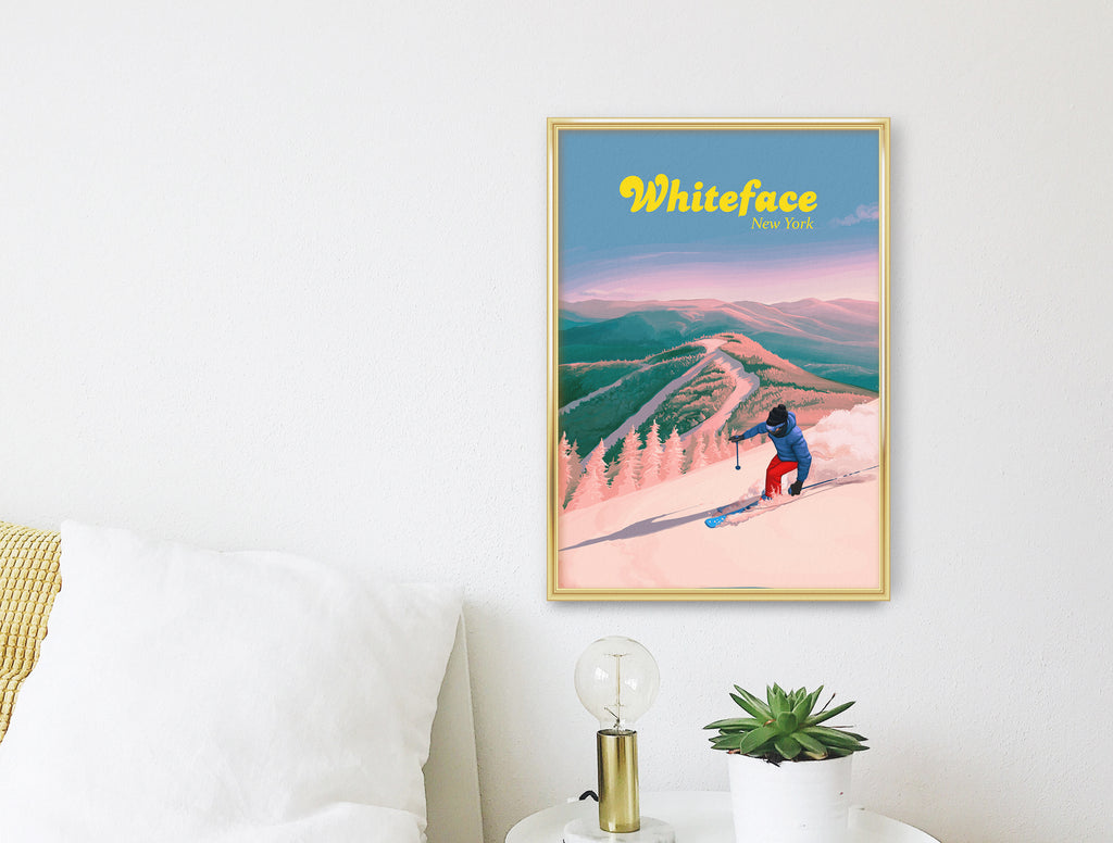 Whiteface Ski Resort Travel Poster, New York, USA.