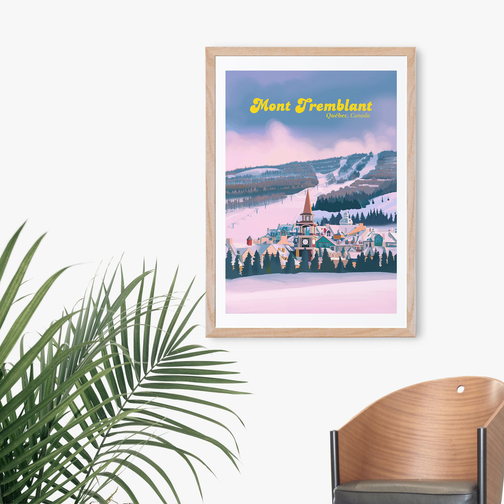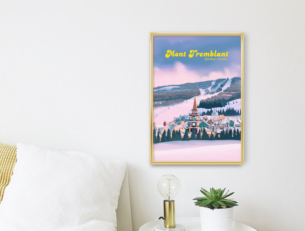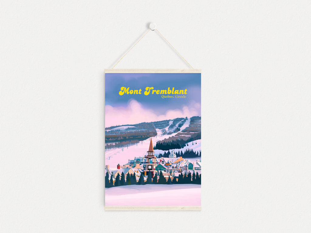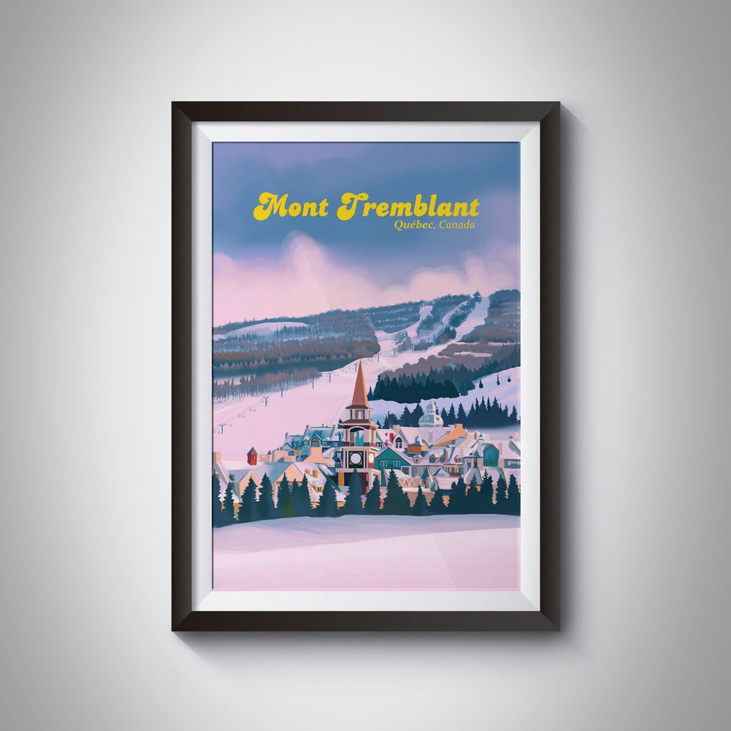 This is an original travel poster featuring Mont Tremblant Ski Resort.
