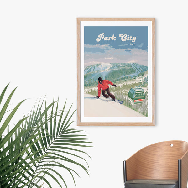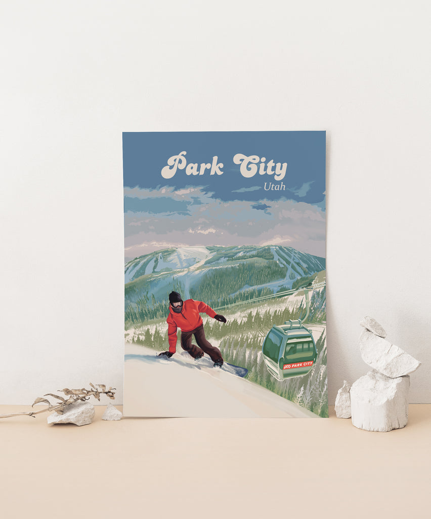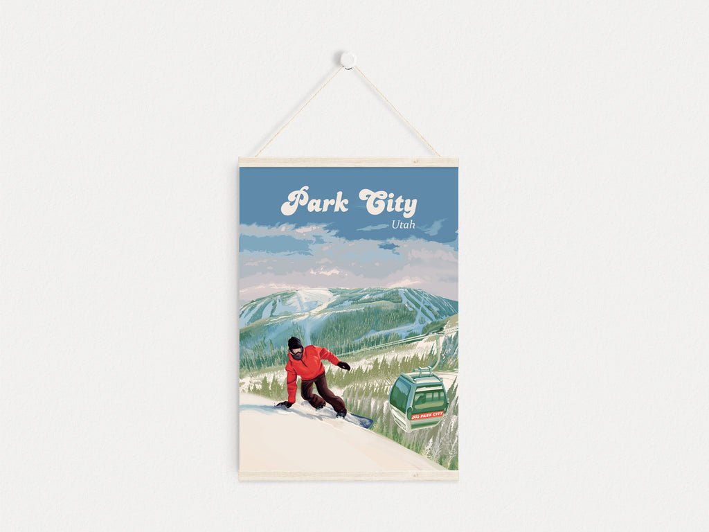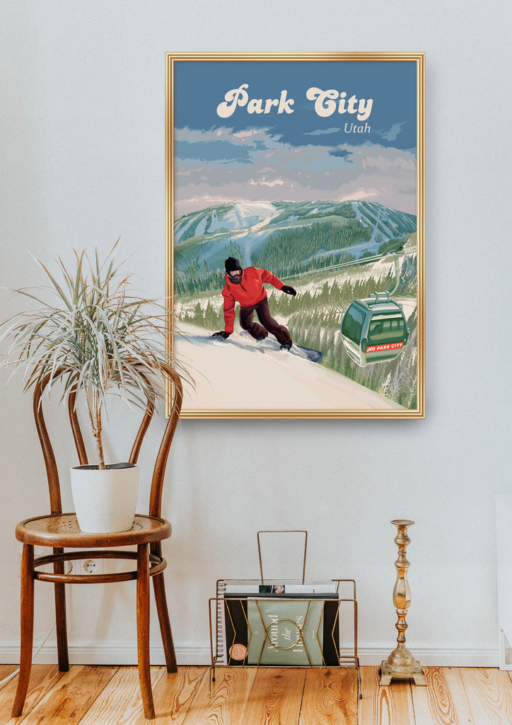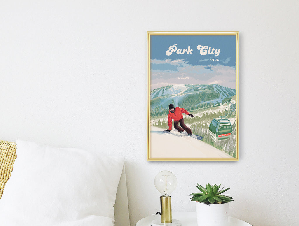 This is an original travel poster featuring the popular mountain ski resort of Park City.