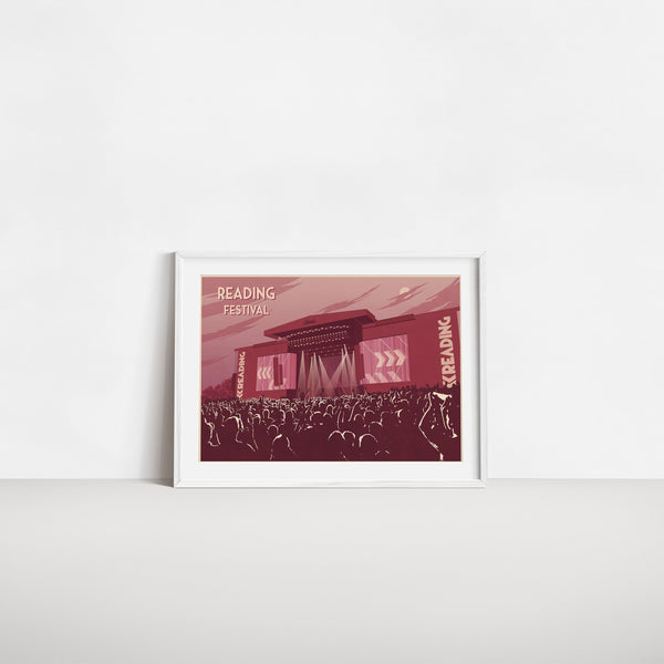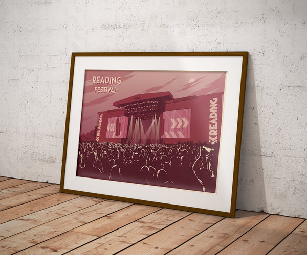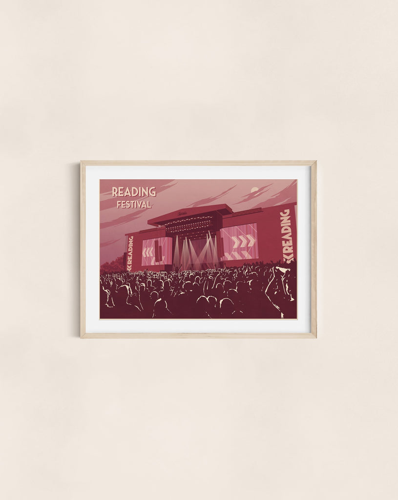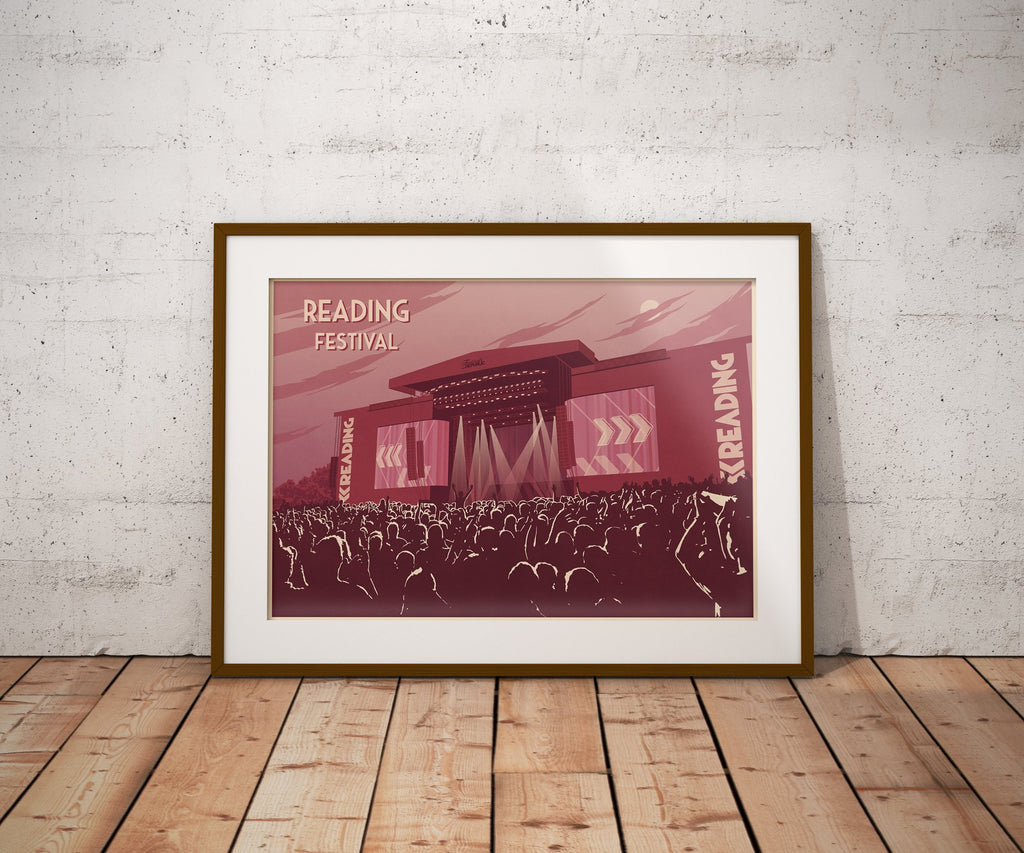 An original art print featuring the main stage at the legendary Reading Music Festival.