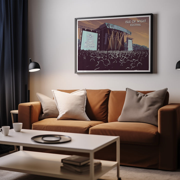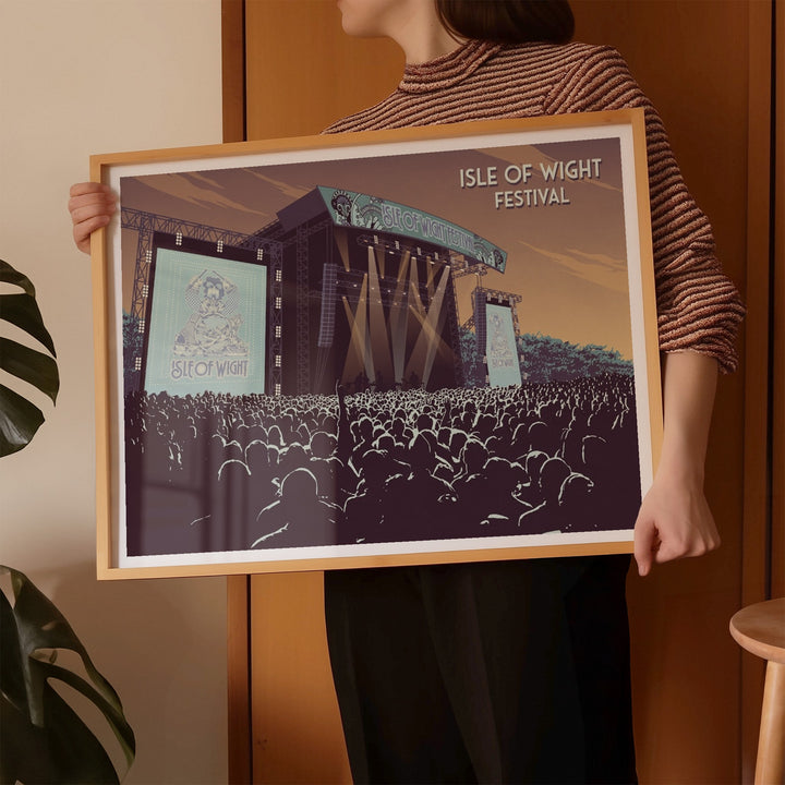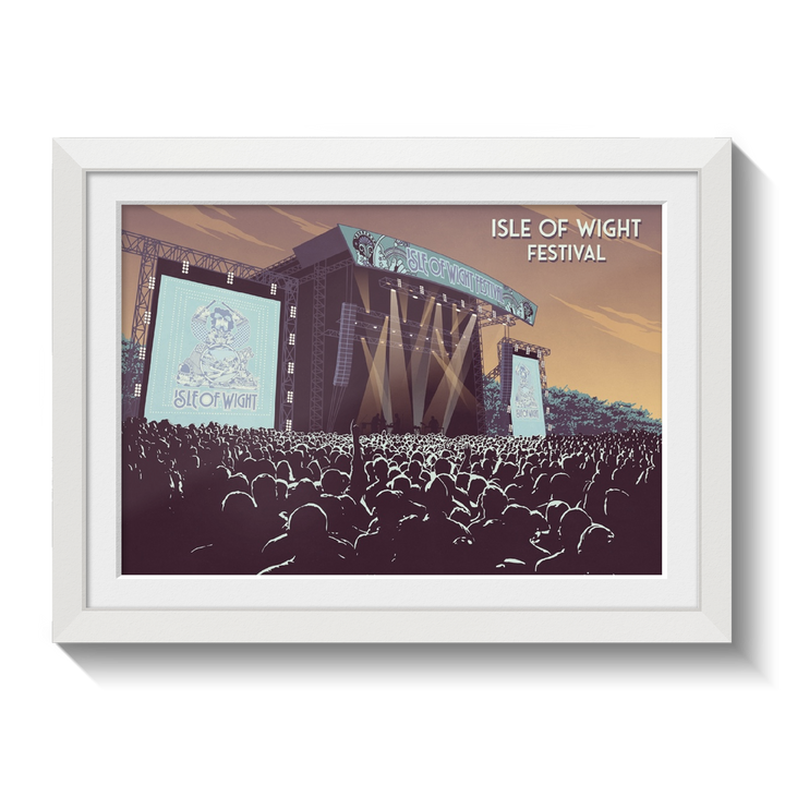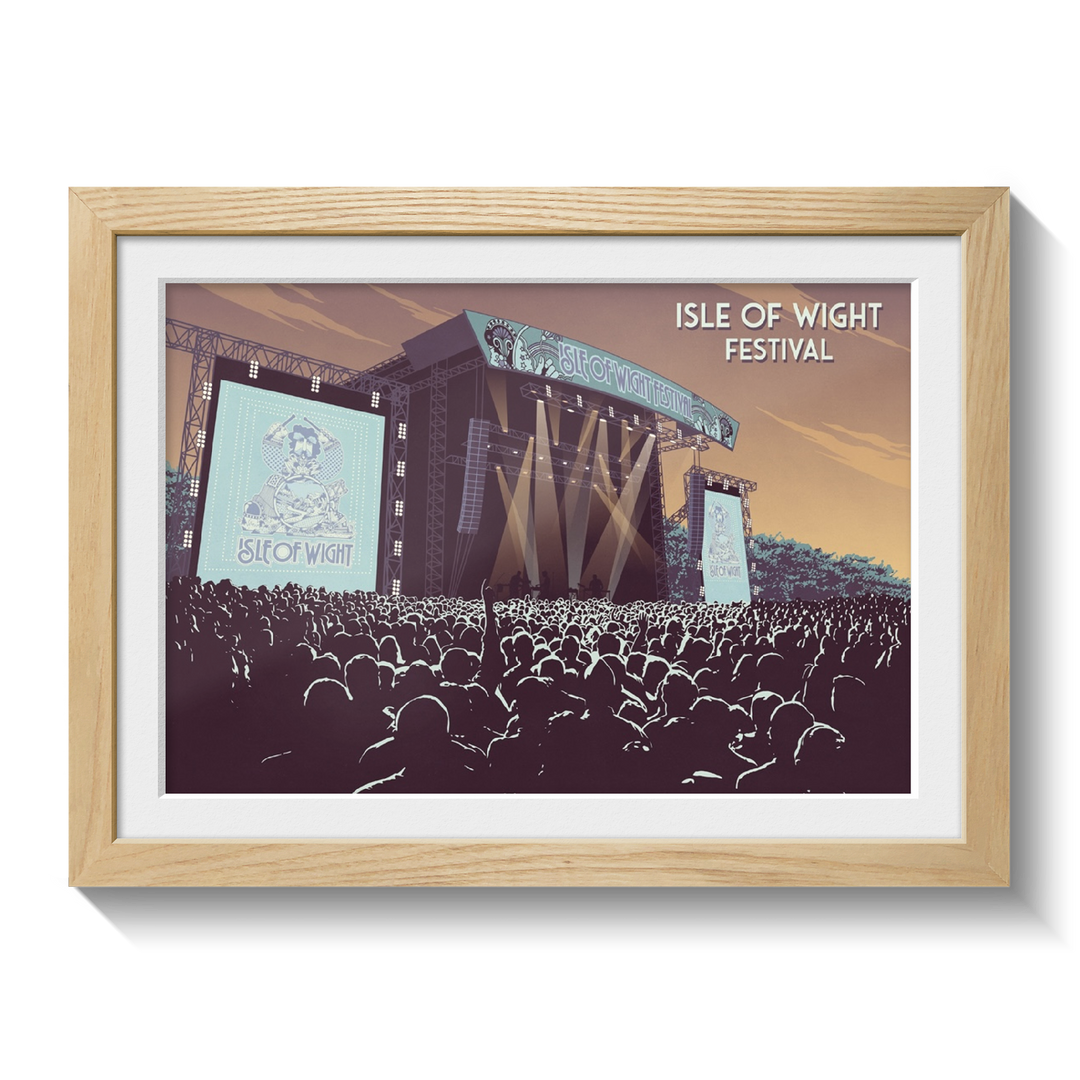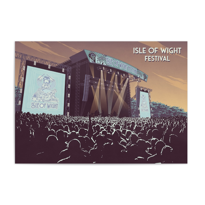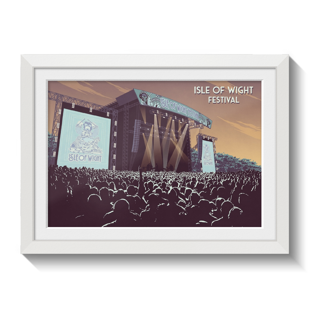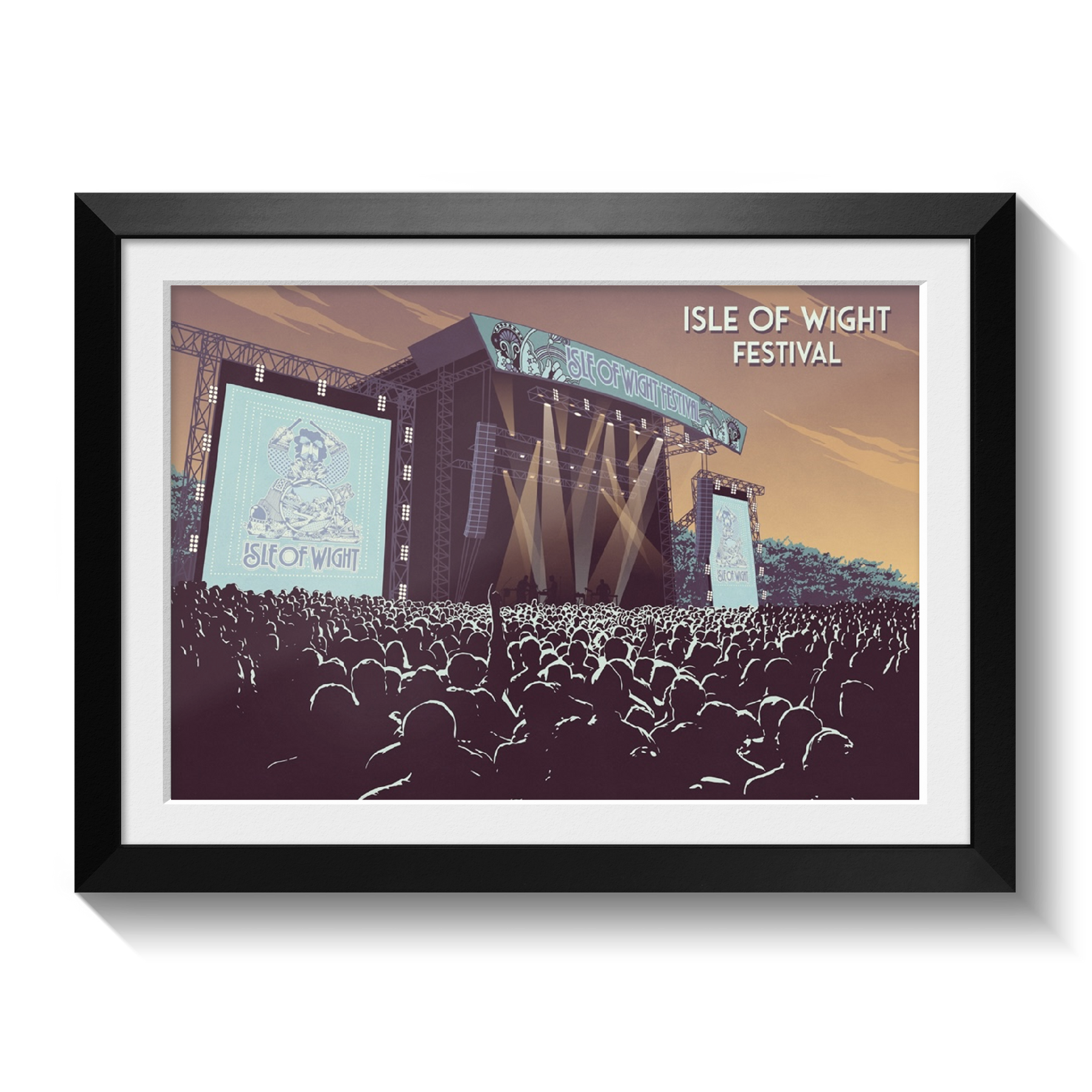 An original art print featuring the main stage at the Isle of Wight Festival in England.