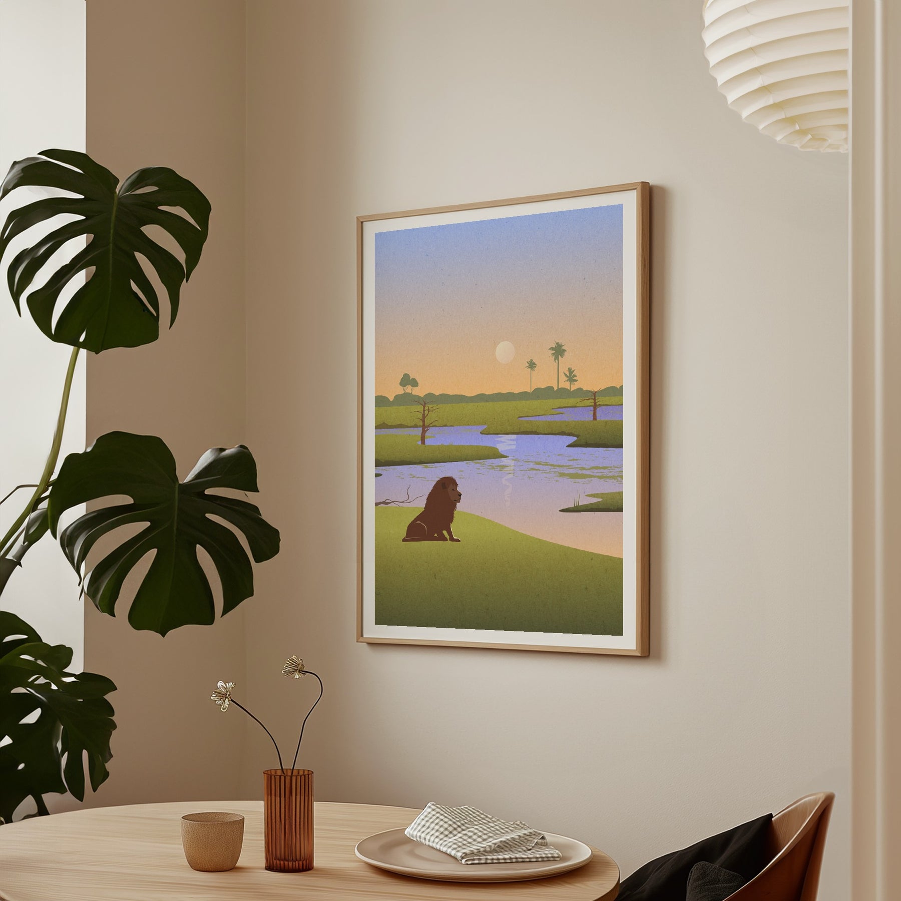 Original travel poster of Botswana. Discover the natural beauty with this minimalist travel poster. Showcasing the country's stunning landscapes and wildlife, Botswana offers unforgettable safaris and rich cultural experiences. Perfect for nature lovers and adventure seekers, this destination promises unique encounters in Africa’s pristine wilderness.