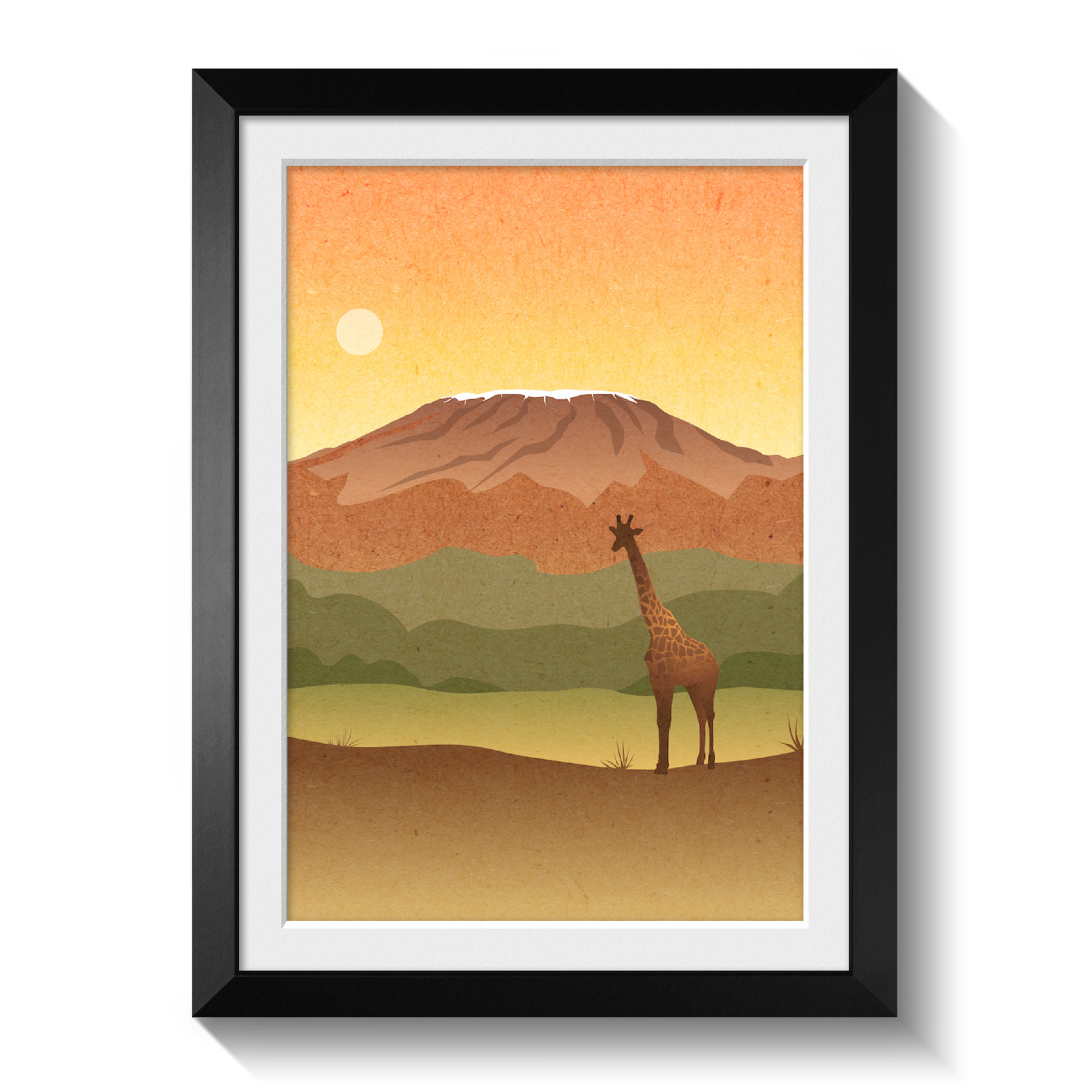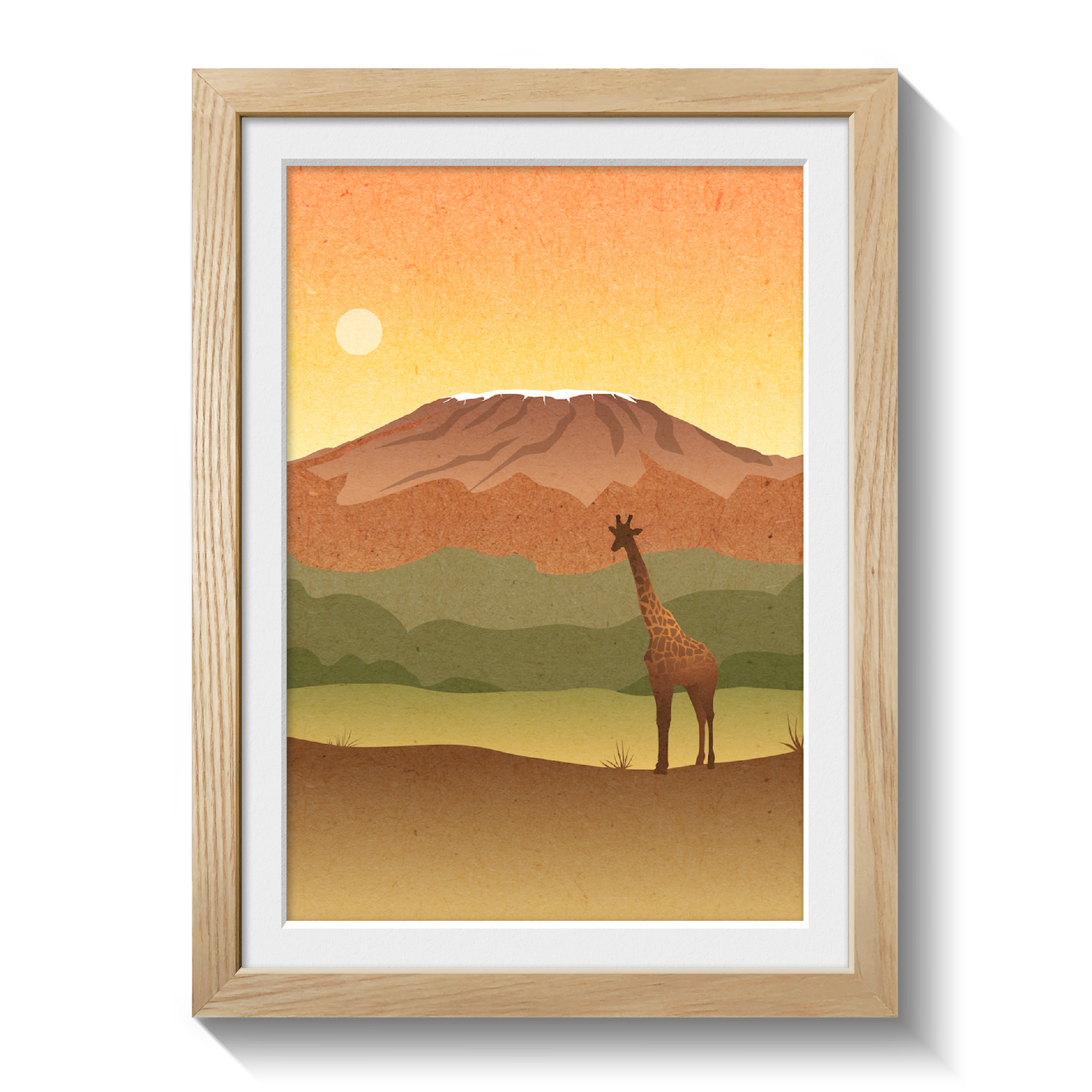 Original nursery poster for Tanzania featuring a giraffe. Perfect for a safari themed nursery.