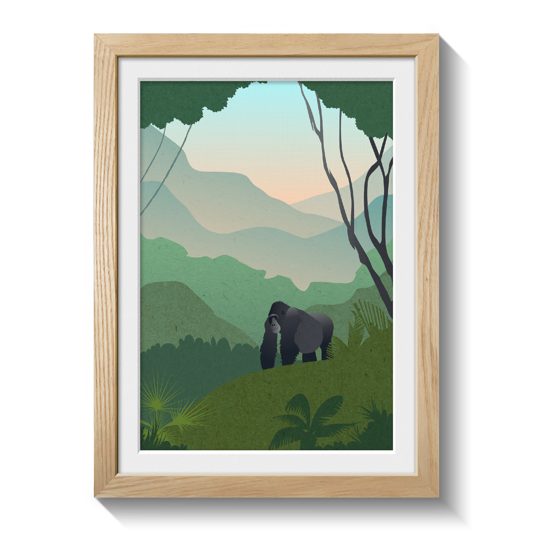 Original nursery poster for Uganda featuring a gorilla. Perfect for a safari themed nursery.