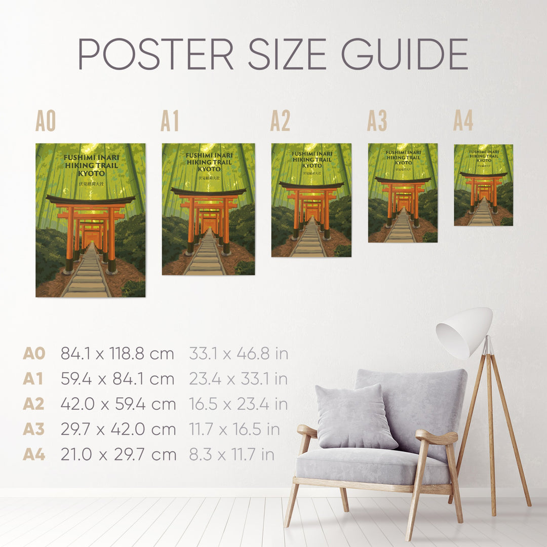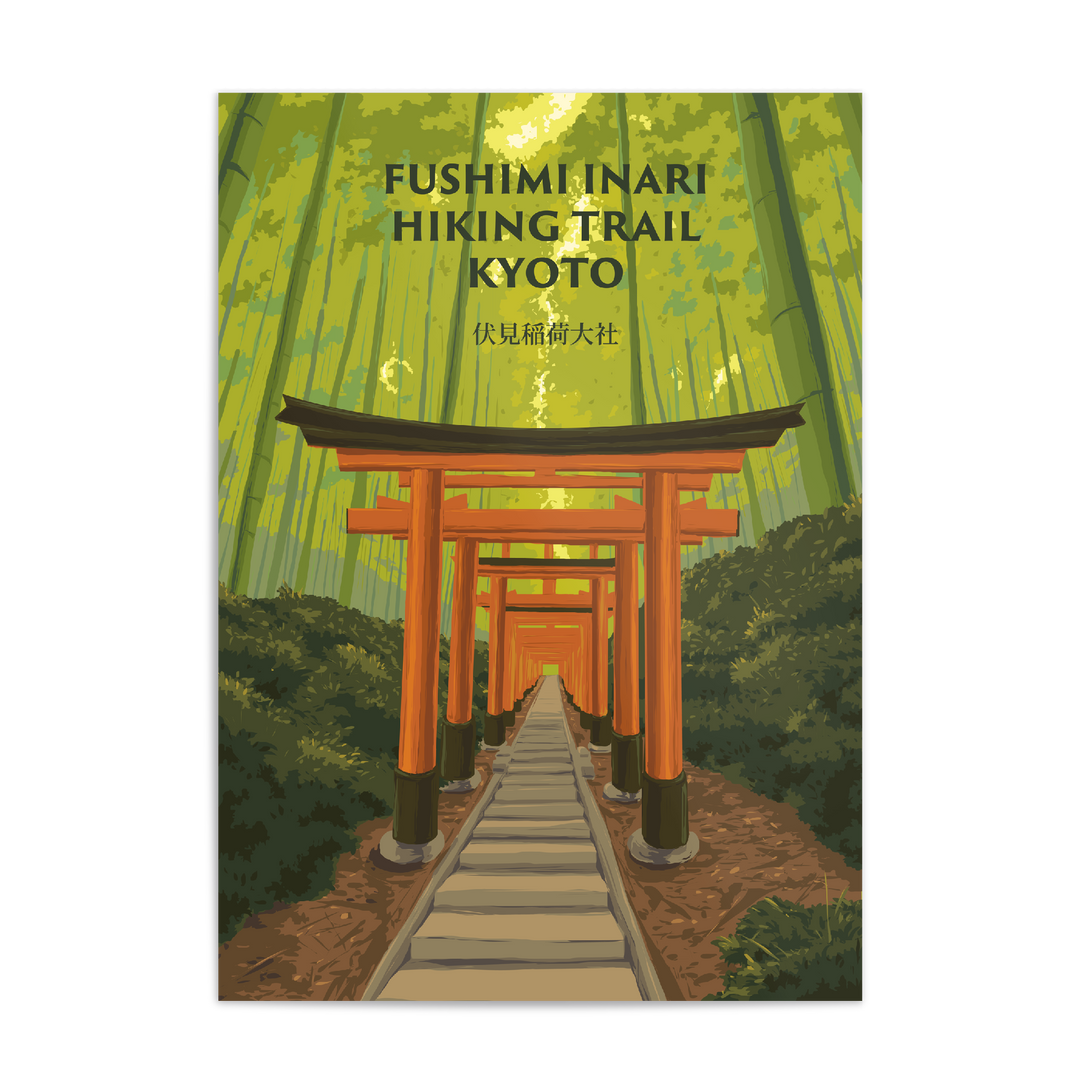 Fushimi Inari Hiking Trail, Kyoto Japan Travel Poster.