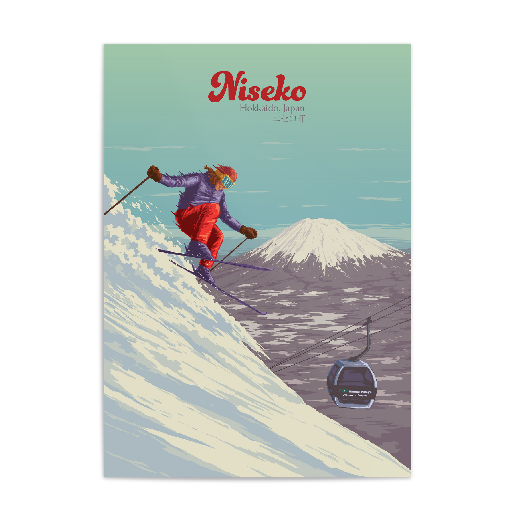 Niseko ski resort travel poster, Hokkaido, Japan.