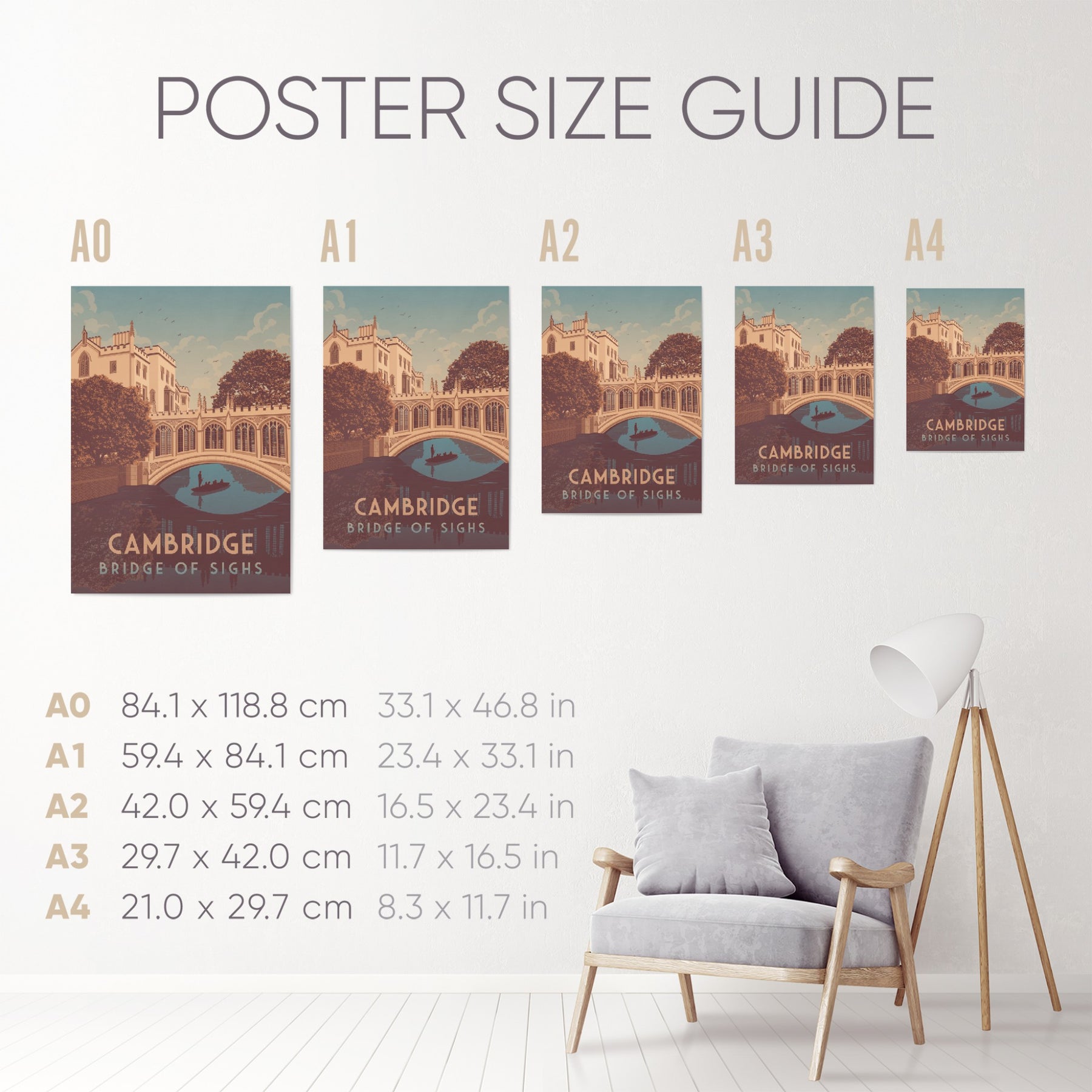 Cambridge Bridge of Sighs travel poster.