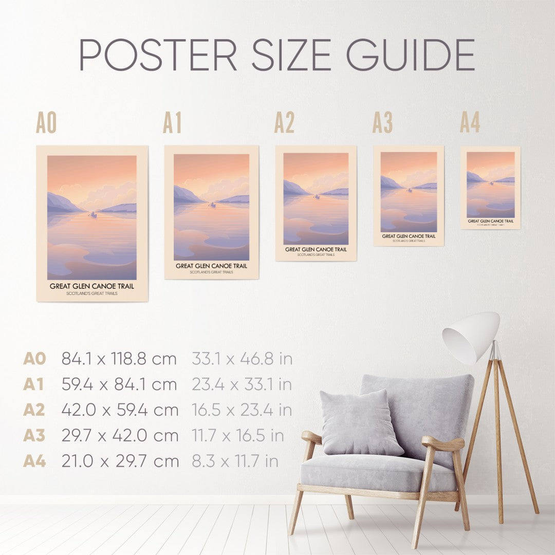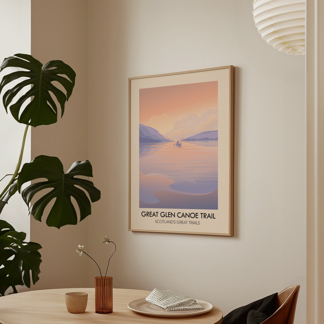 This original travel print features the Great Glen Canoe Trail, one of Scotland's Great Trails and the only one that isn't land based.