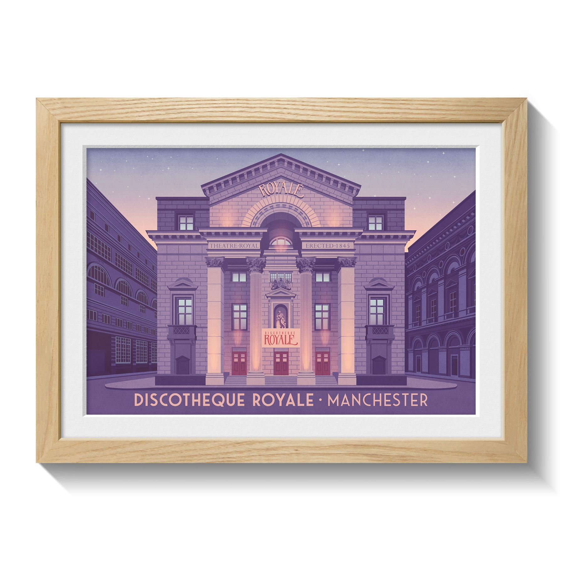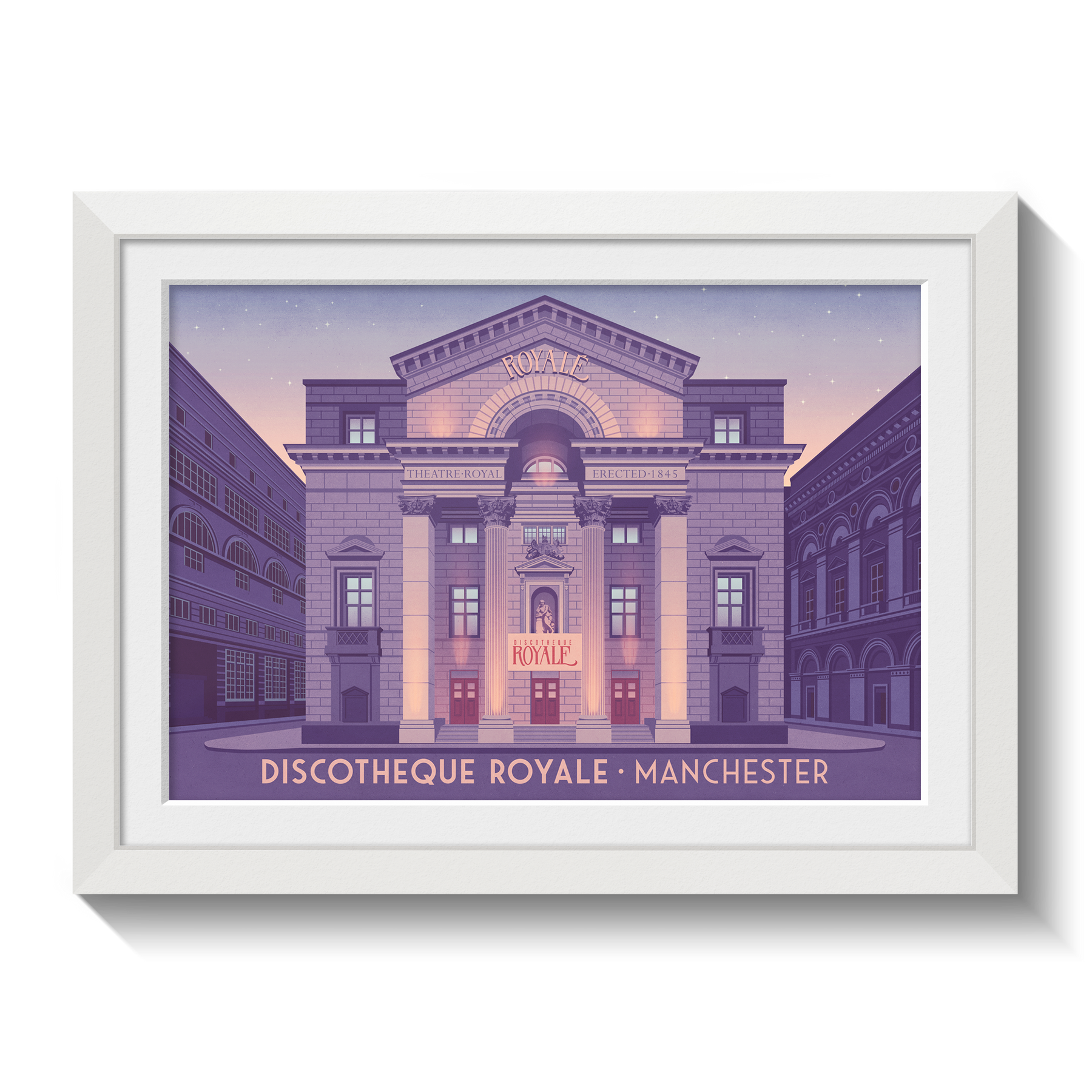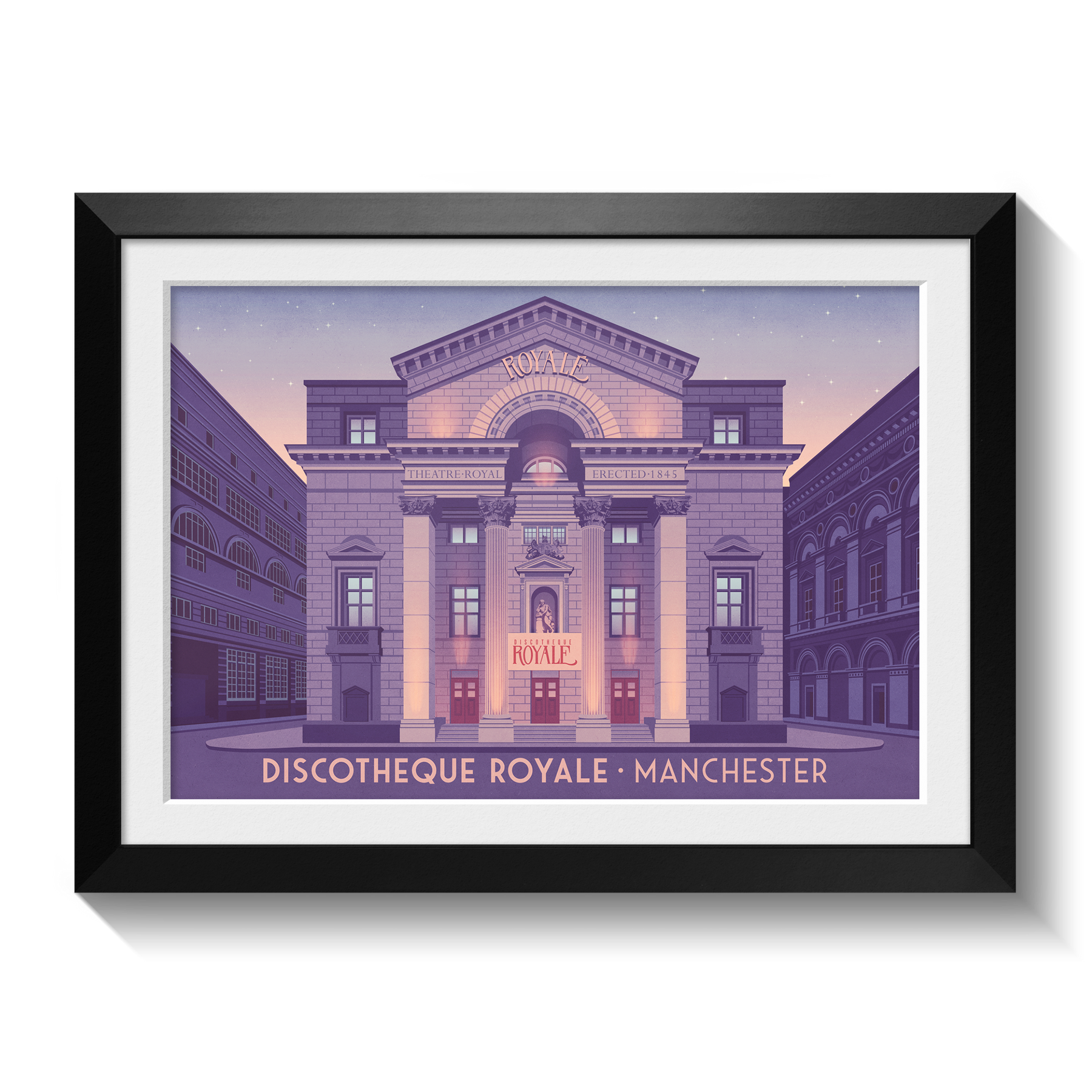 This Discotheque Royale Manchester poster celebrates the legacy of one of the city’s most iconic nightclubs. Famous for its lively atmosphere and unforgettable nights on the dance floor, it’s perfect for music fans and nightlife lovers. A stylish decor piece honoring the energy and history of Manchester’s club scene.