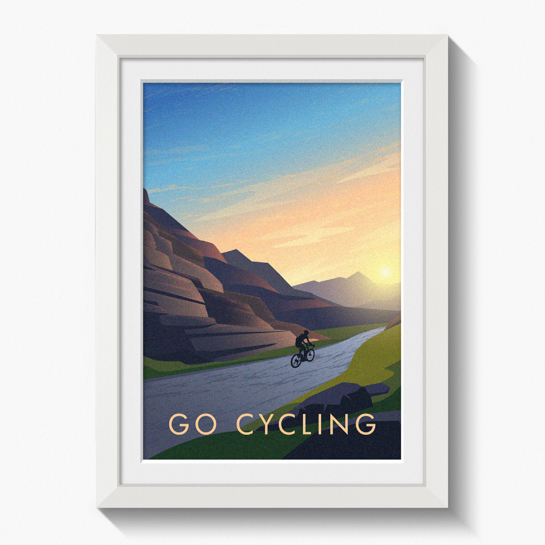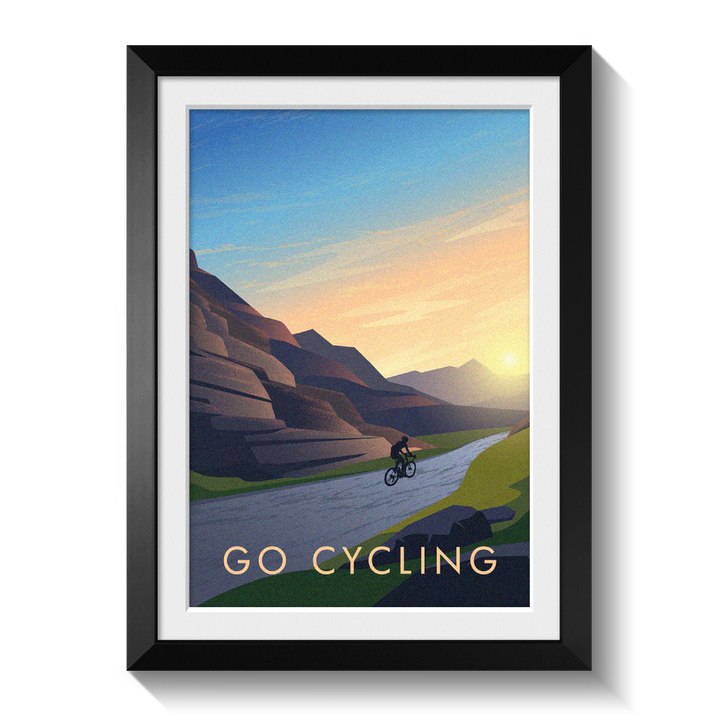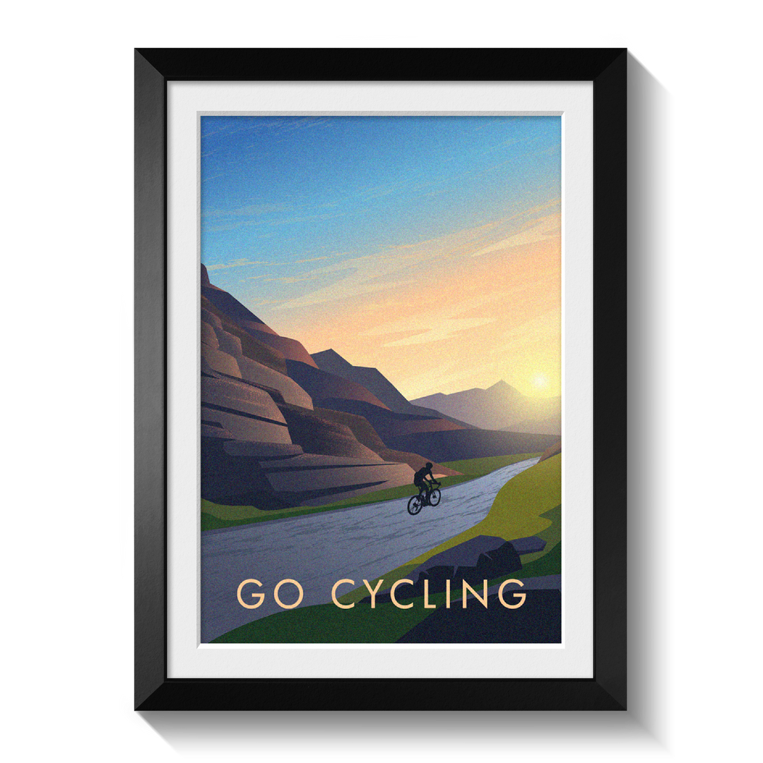 This is an original travel poster celebrating the popular sport of Road Cycling. A perfect gift for the Road Bike nut or lycra lout in your life or a great way to celebrate your love of your favourite adventure sport.