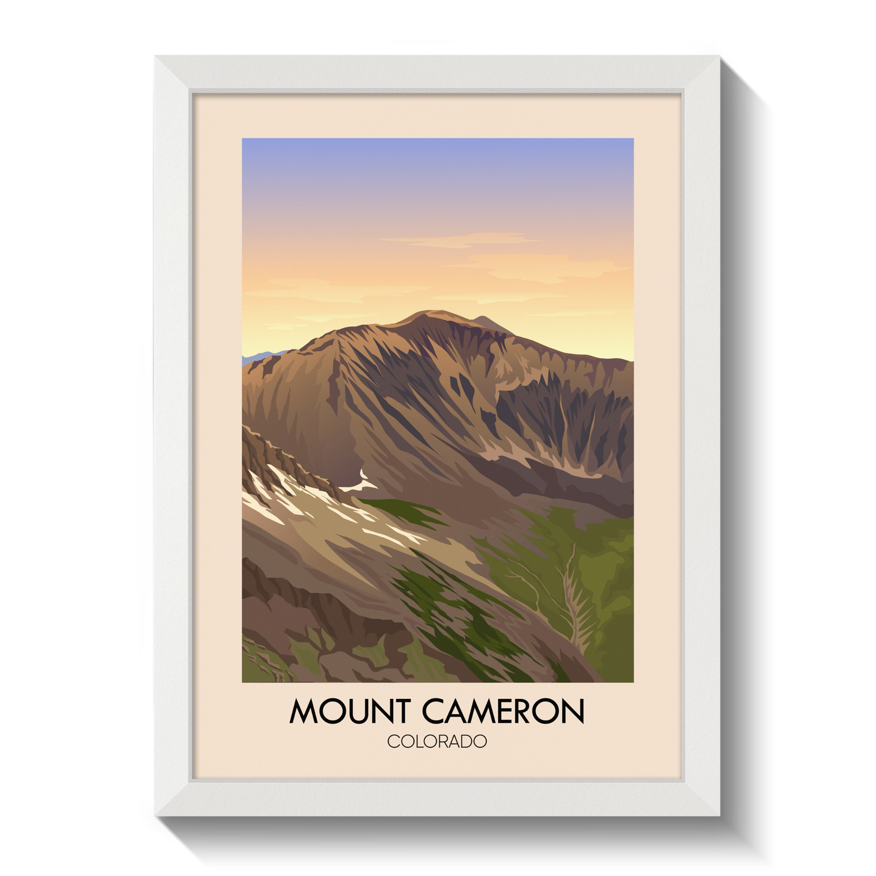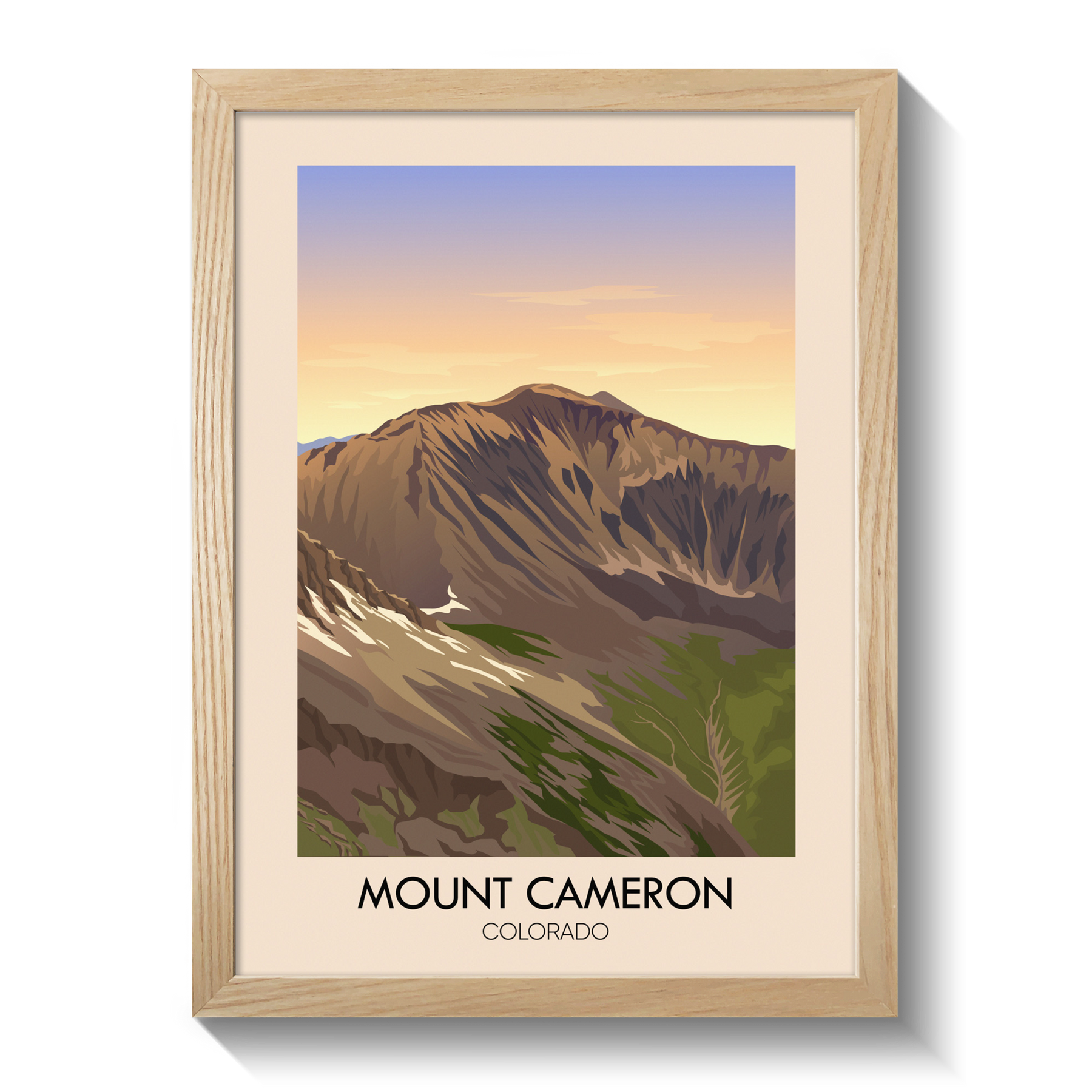 This Mount Cameron travel poster highlights the scenic beauty of one of Colorado’s lesser-known yet impressive Fourteeners, often climbed alongside Mount Lincoln. Ideal for hikers and peak baggers, it offers expansive alpine views. Part of our Colorado 14ers collection, it’s a stylish celebration of Mount Cameron’s quiet, rugged charm.
