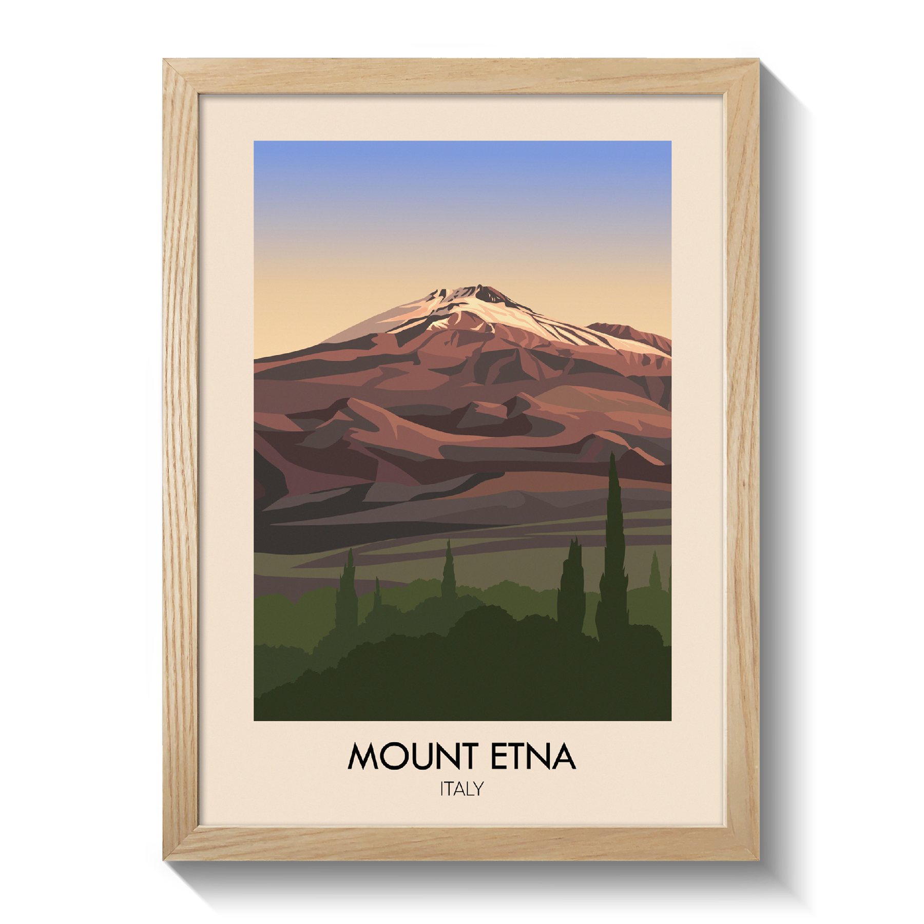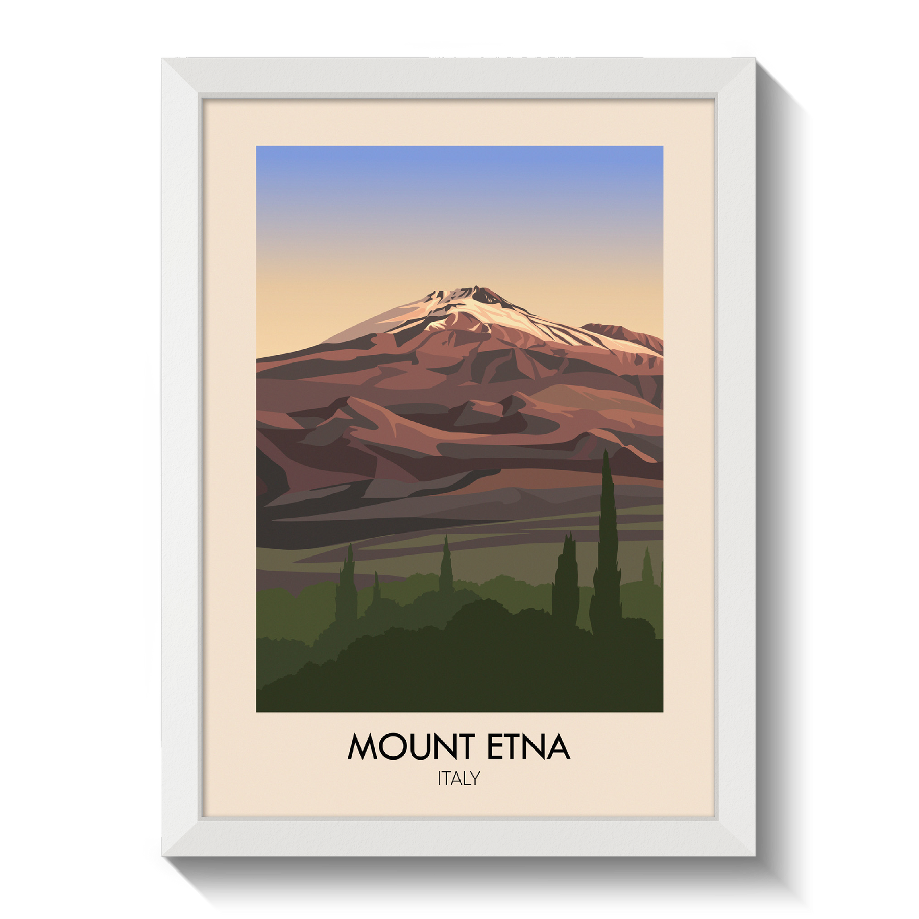 This Mount Etna travel poster captures the dramatic landscape of Italy’s most famous volcano. Perfect for travelers, hikers and nature enthusiasts, it brings the powerful beauty of Sicily’s iconic landmark into your space. A great addition to any decor, this print celebrates the unique allure of Italy’s mountain scenery.