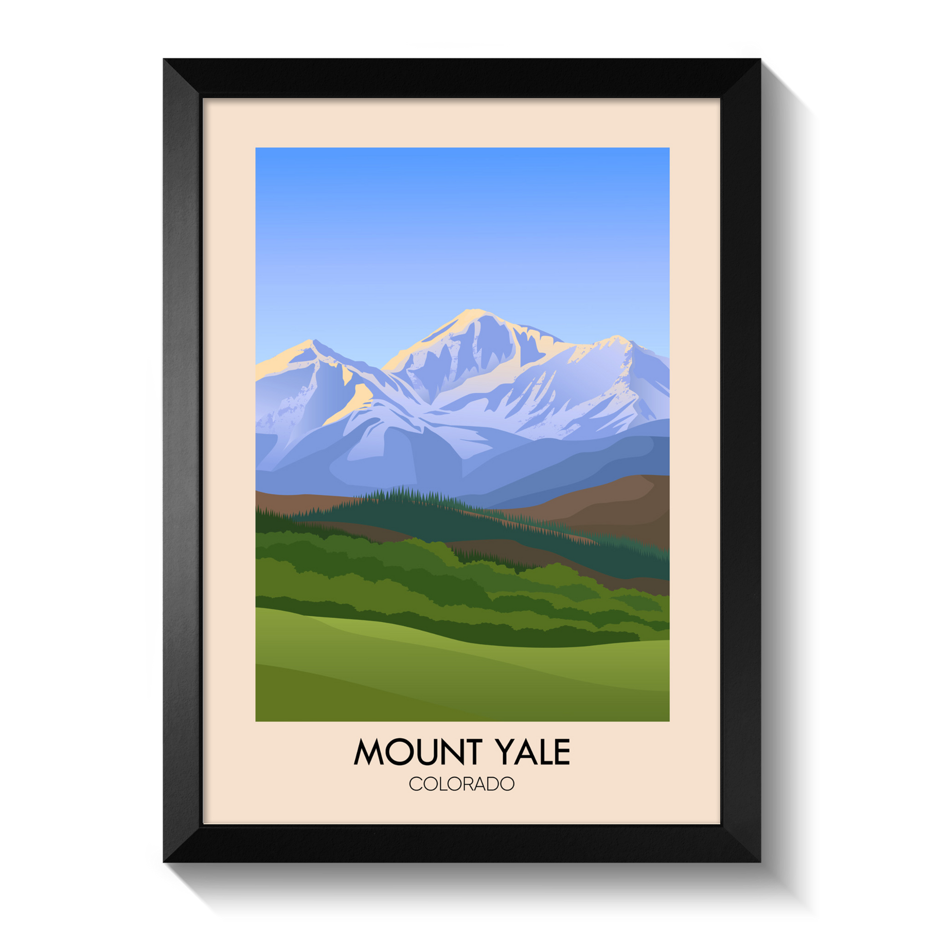 This Mount Yale travel poster captures the scenic beauty of one of Colorado’s beloved Fourteeners, located in the Sawatch Range near Buena Vista. Known for its accessible trail and sweeping views, it’s perfect for hikers and mountain enthusiasts. Part of our Colorado 14ers collection, it celebrates the adventure of Mount Yale.