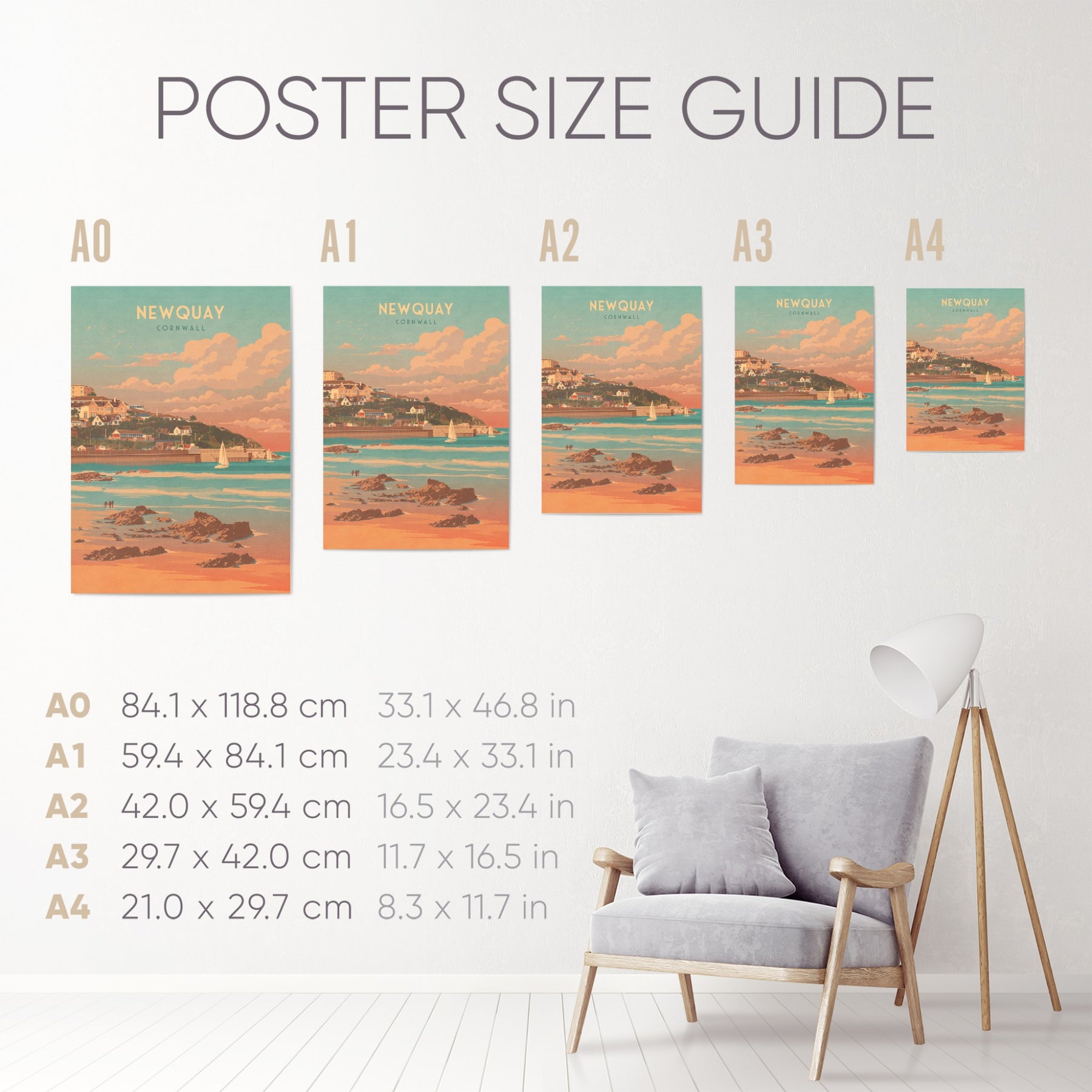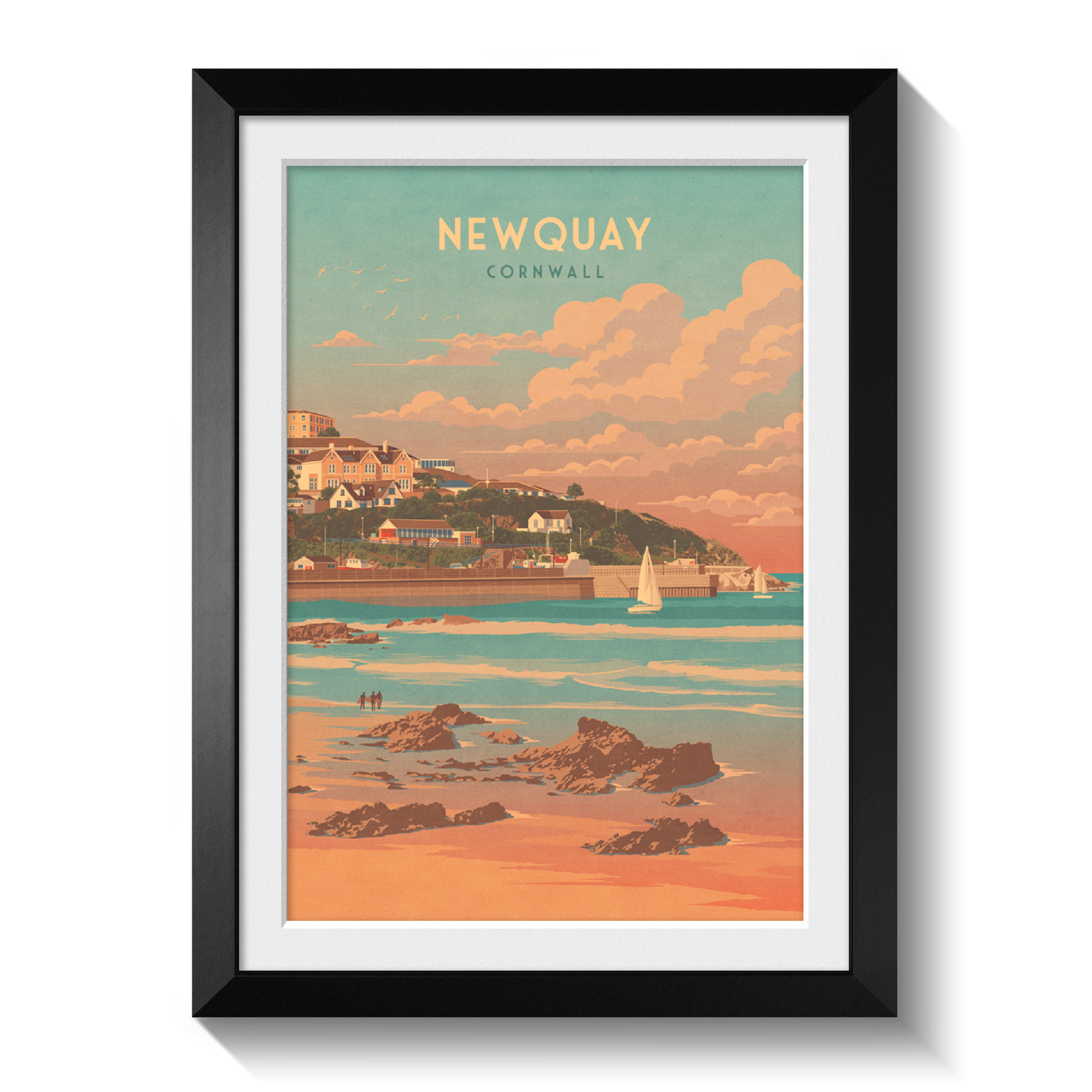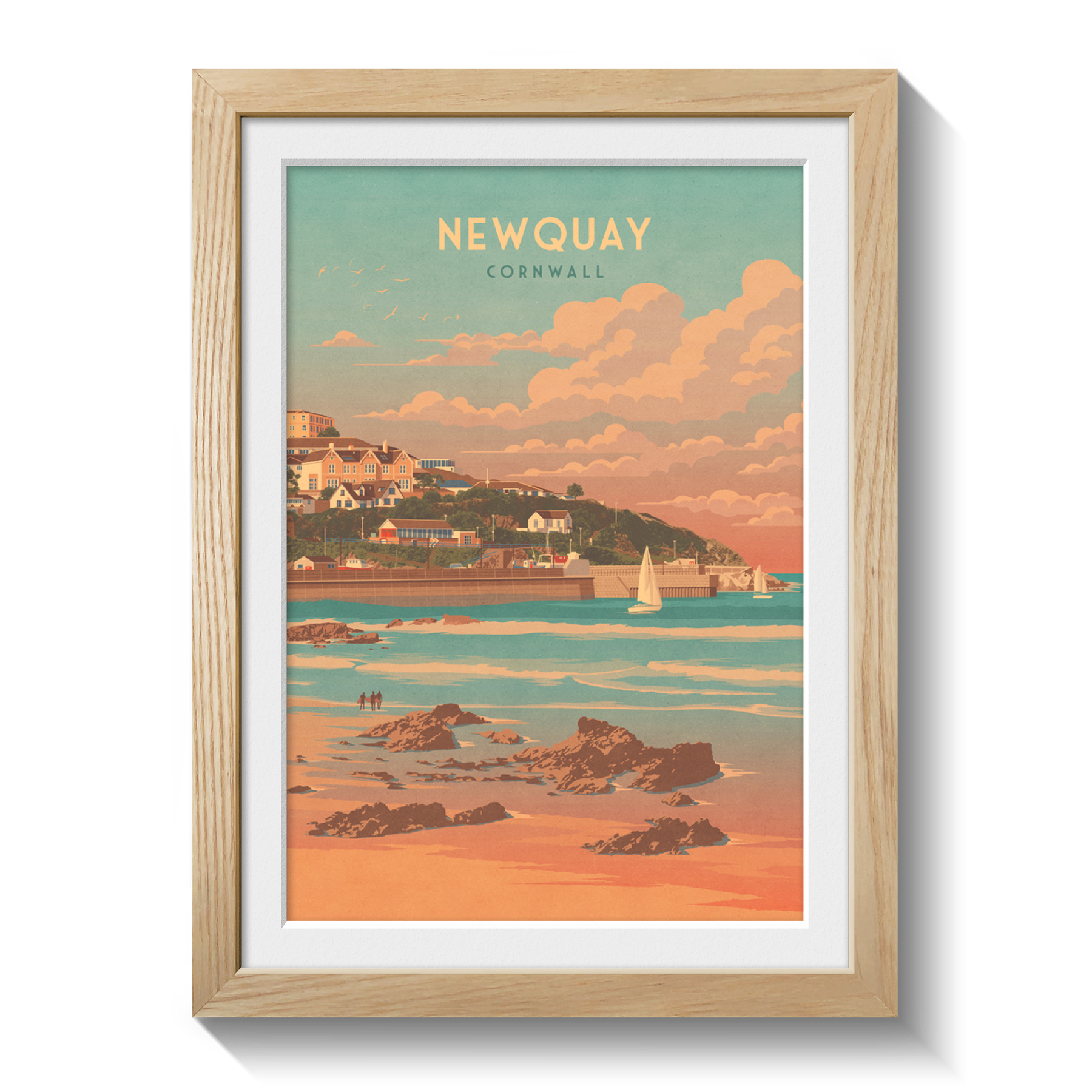 This full colour print features the beautiful sandy beach and rolling waves of Newquay, one of Cornwall's favourite seaside locations.