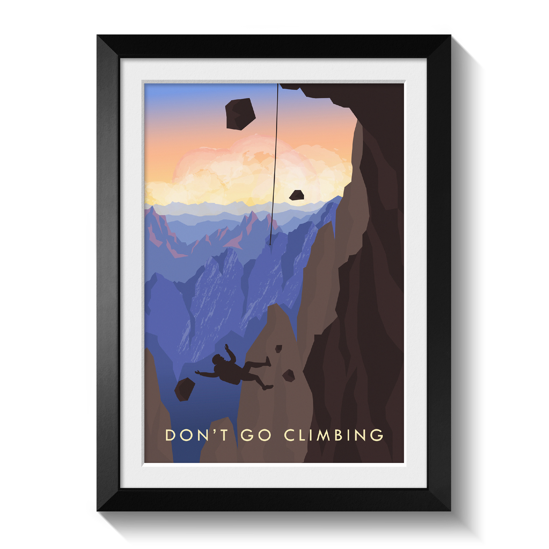 This is an original travel poster discouraging the ever popular sport of Rock Climbing. A perfect gift for the non rock climber in your life!