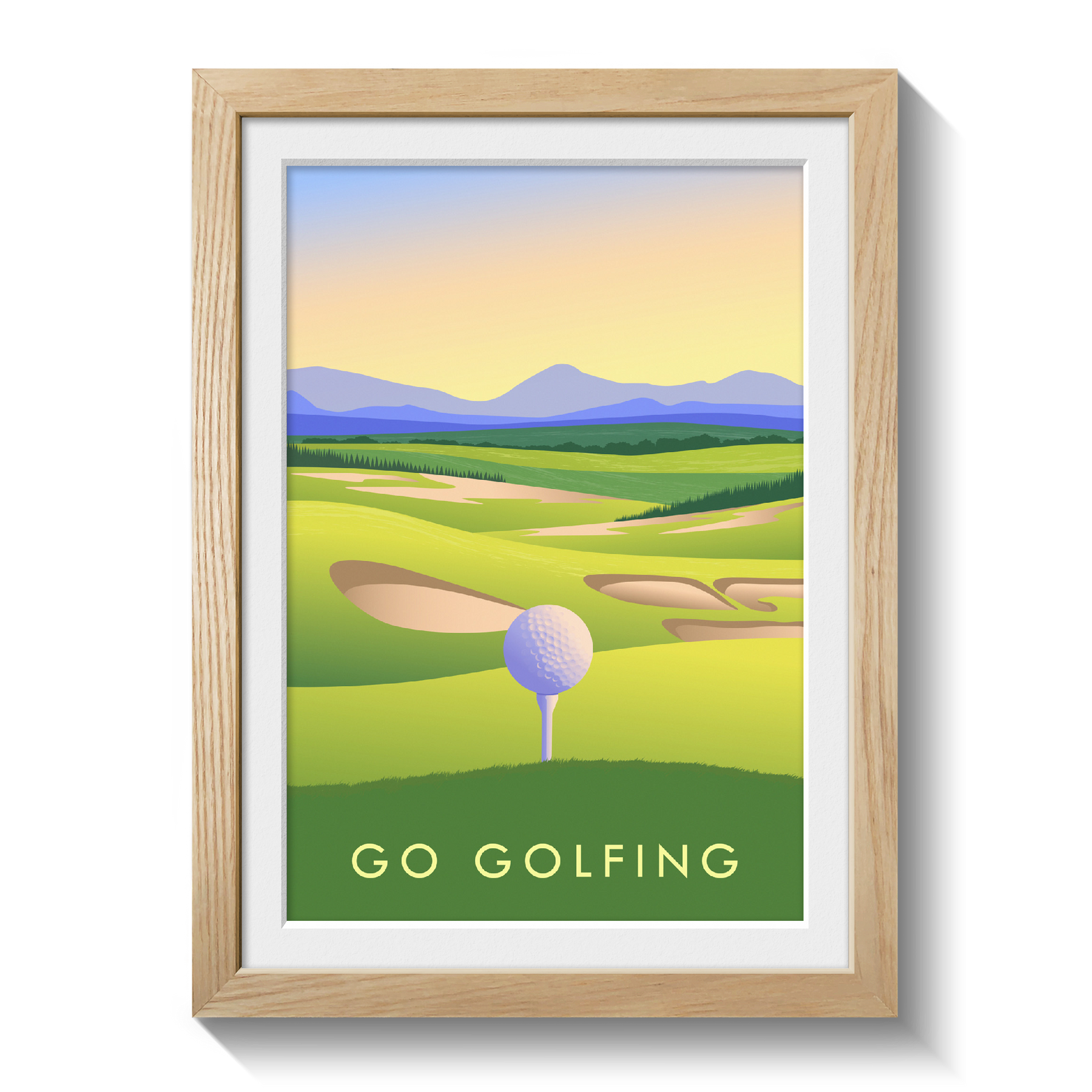 This is an original travel poster celebrating one of the world's most popular sports - Golf. A perfect gift for the Golf lover in your life or a great way to celebrate your love of your favourite outdoor sport.