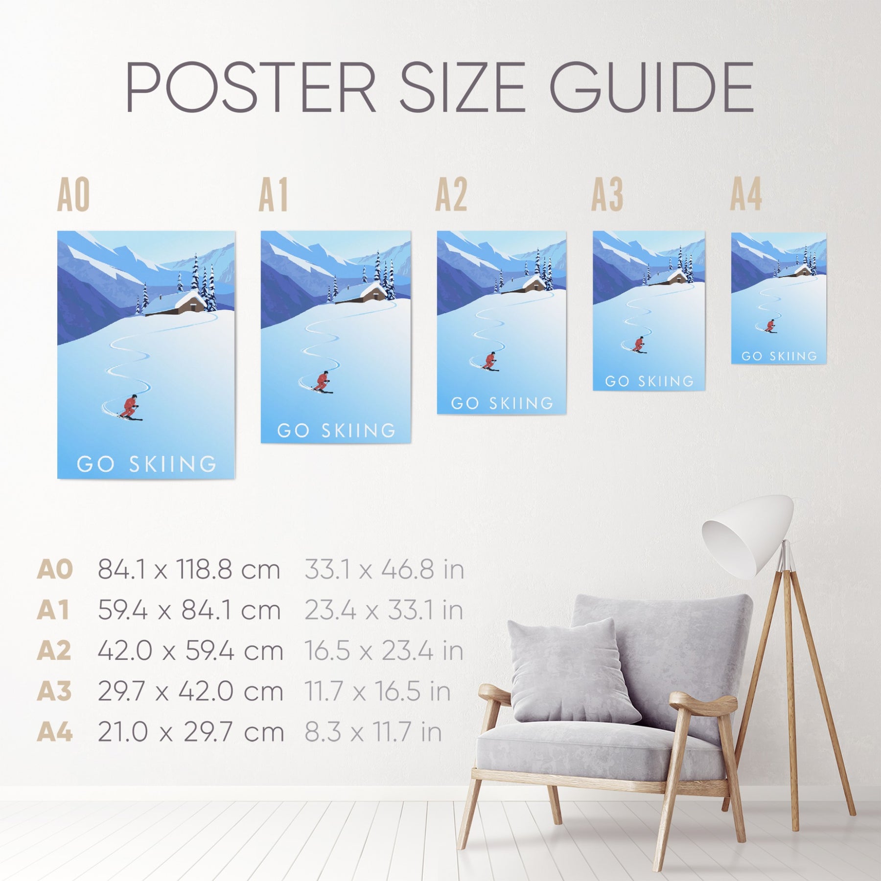 This is an original travel poster celebrating the ever popular winter sport of Skiing. A perfect gift for the skier in your life or a great way to celebrate your love of your favourite adventure sport.