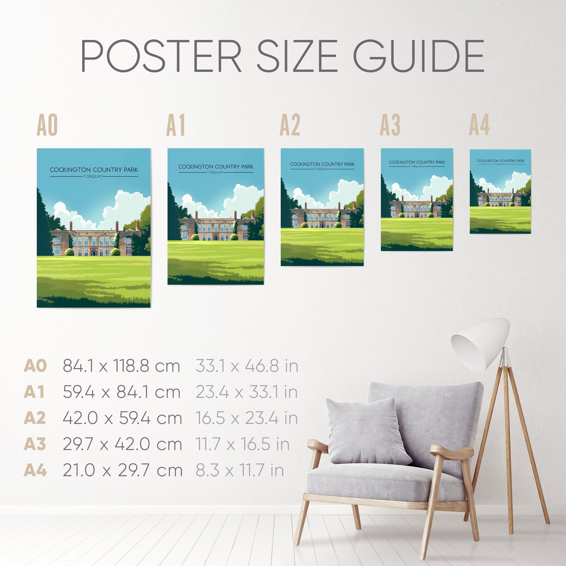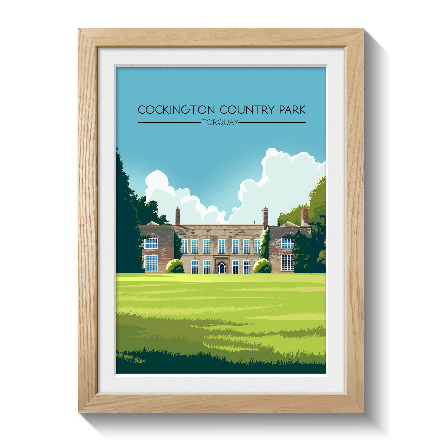 This Cockington Country Park travel poster showcases the idyllic charm of one of Torquay’s most picturesque spots. Featuring lush gardens, thatched cottages, and peaceful woodlands, it’s perfect for nature lovers and visitors to the English Riviera. A stylish decor piece celebrating the beauty and heritage of Cockington Country Park in Devon.