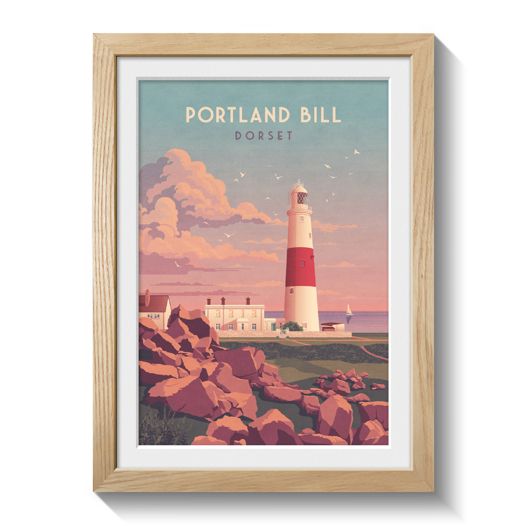 Original travel poster featuring Portland Bill Lighthouse, Dorset.