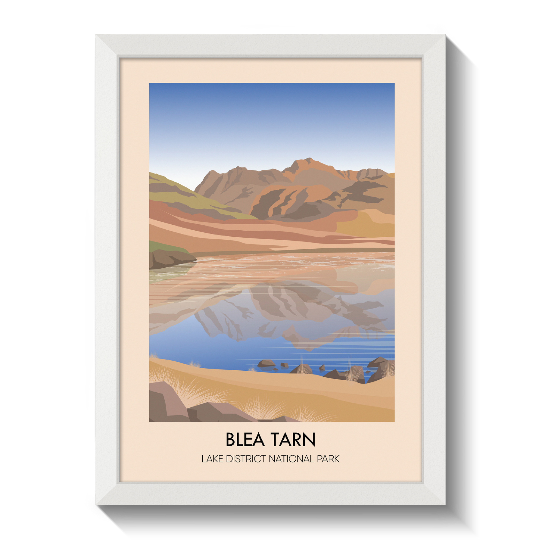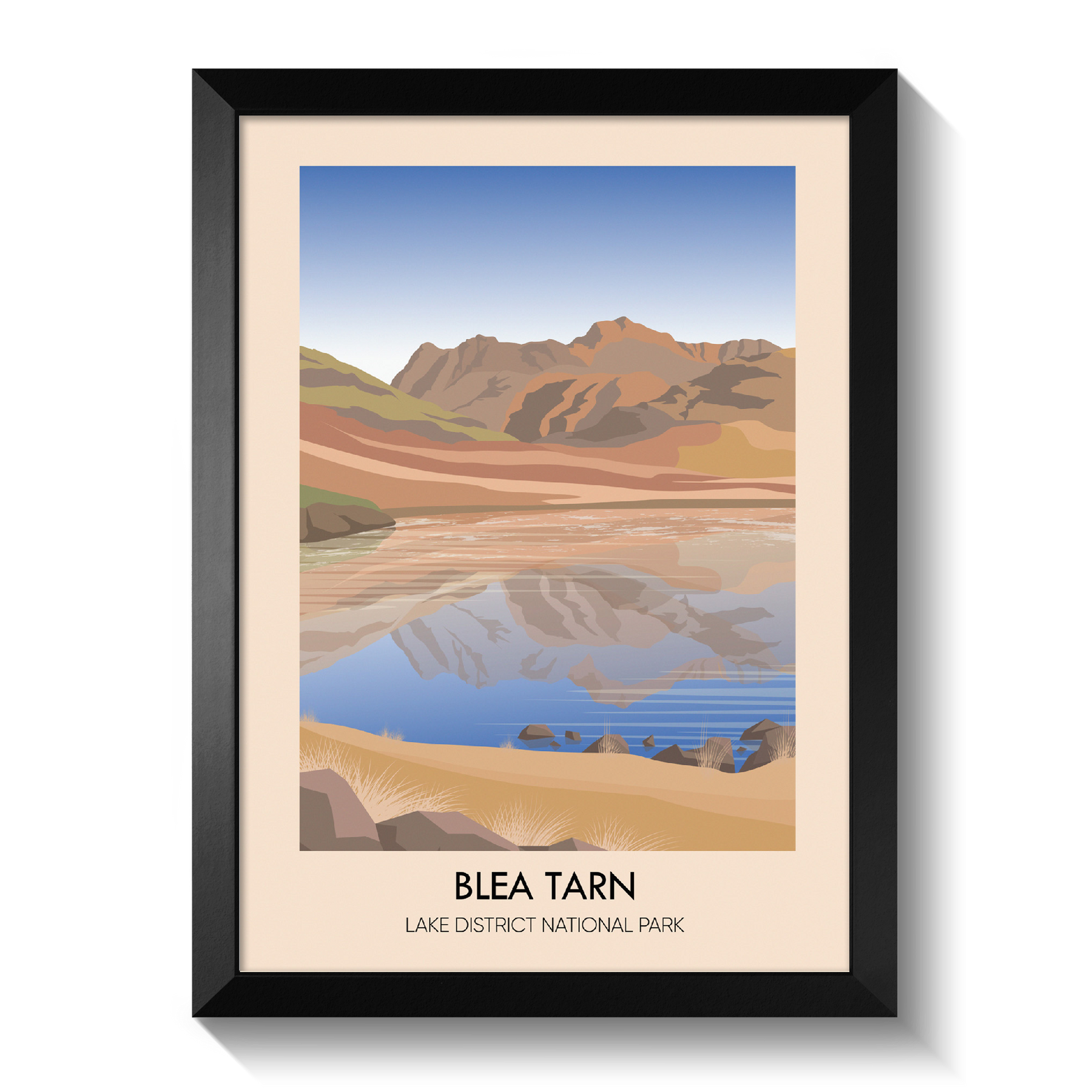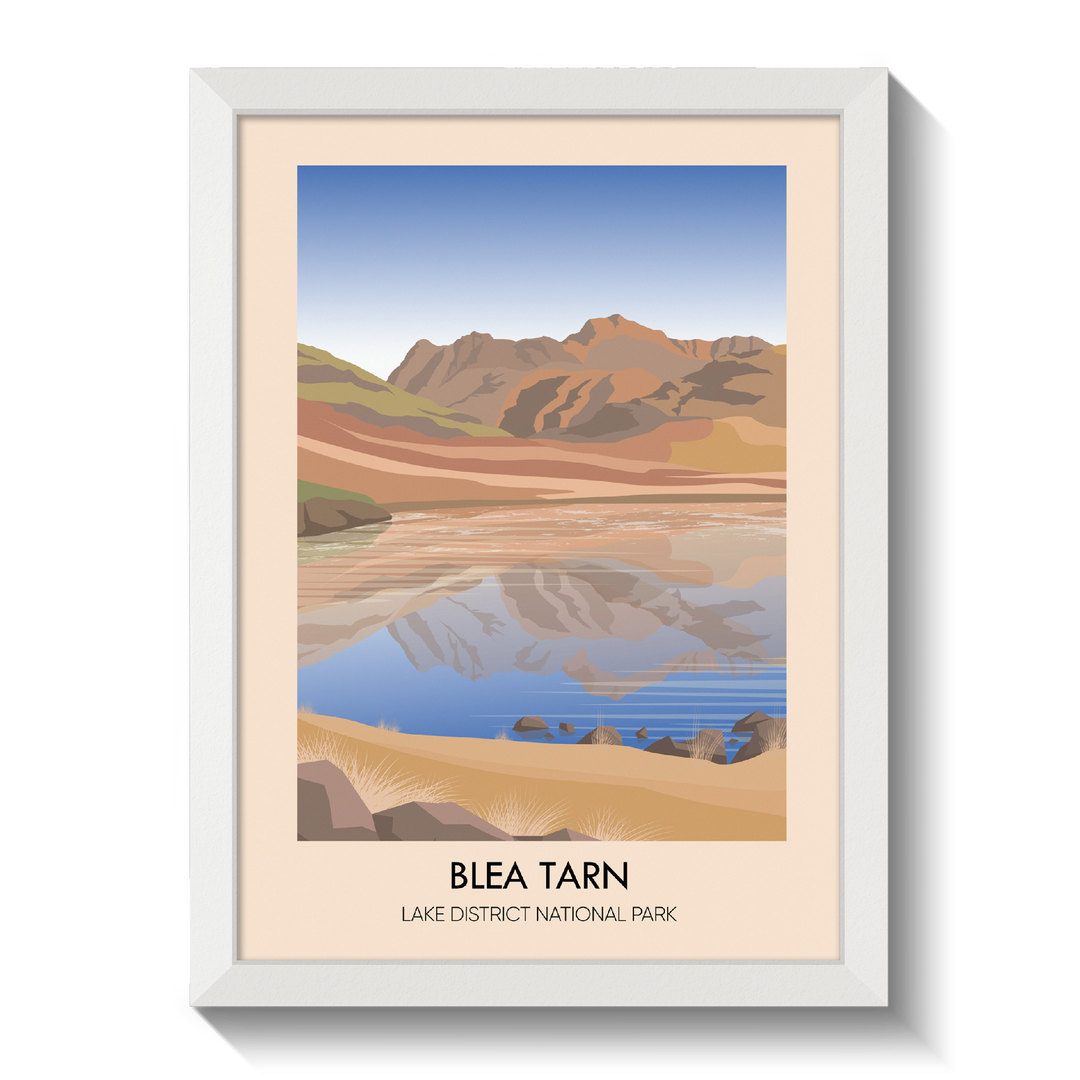 An original travel print featuring Blea Tarn Lake in Cumbria in the Lake District National Park. A Tarn is another name for a small mountain lake.