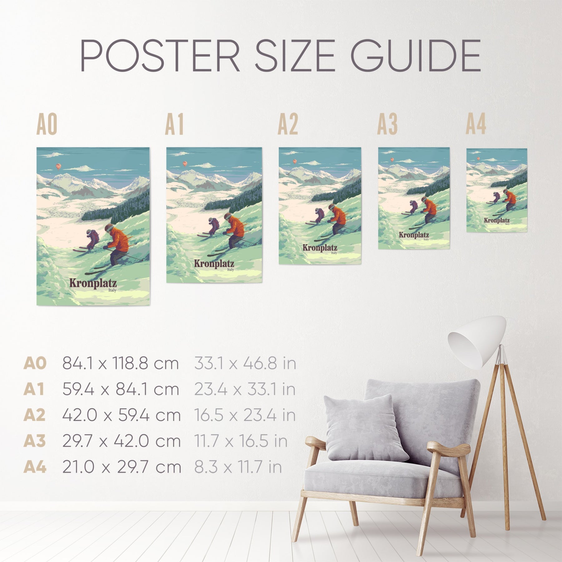 This Kronplatz travel poster showcases the stunning alpine scenery of one of Italy’s top ski resorts in the Dolomites. Perfect for winter sports enthusiasts and mountain lovers, it features the resort’s scenic slopes and panoramic views. A stylish decor piece celebrating the adventure and beauty of Kronplatz in South Tyrol.