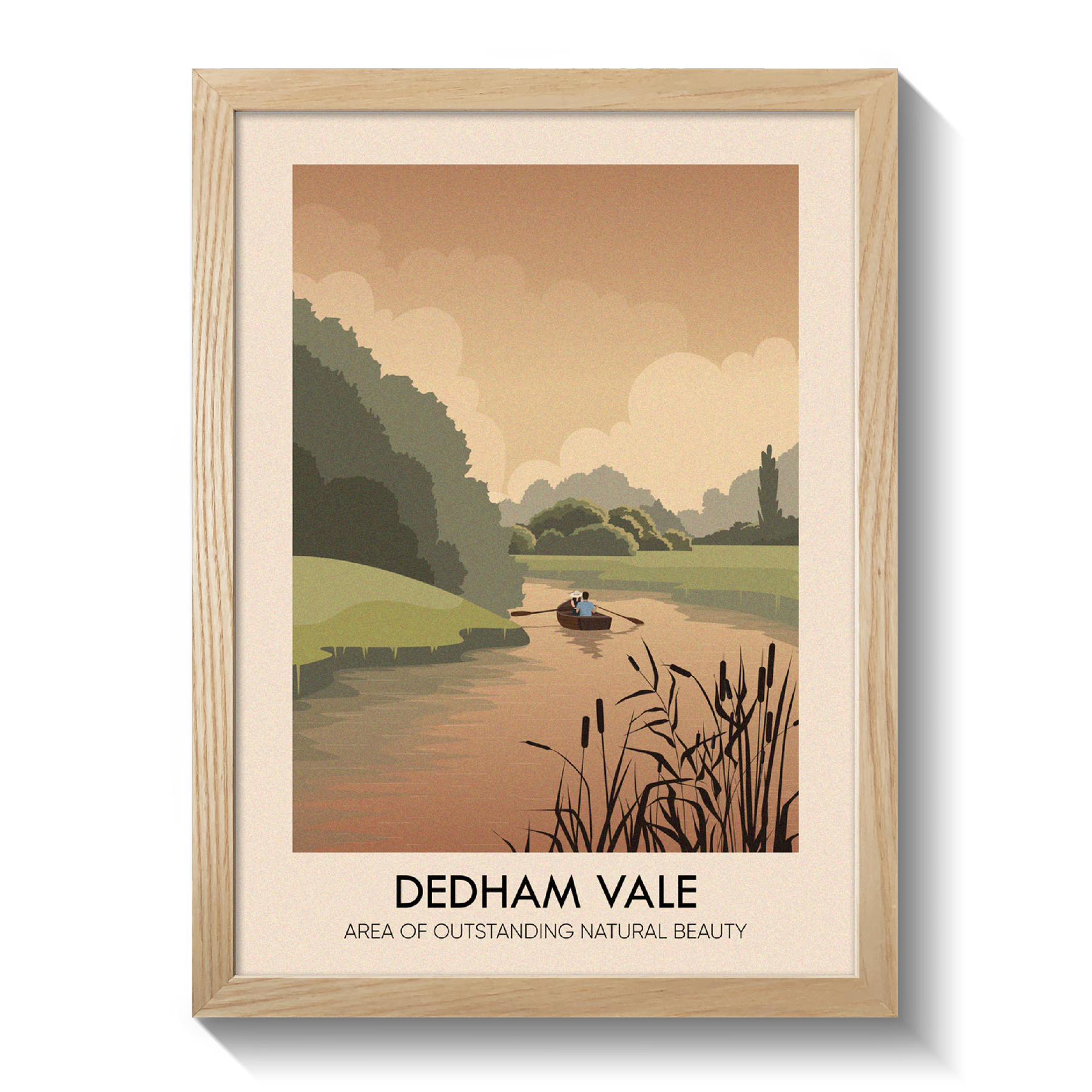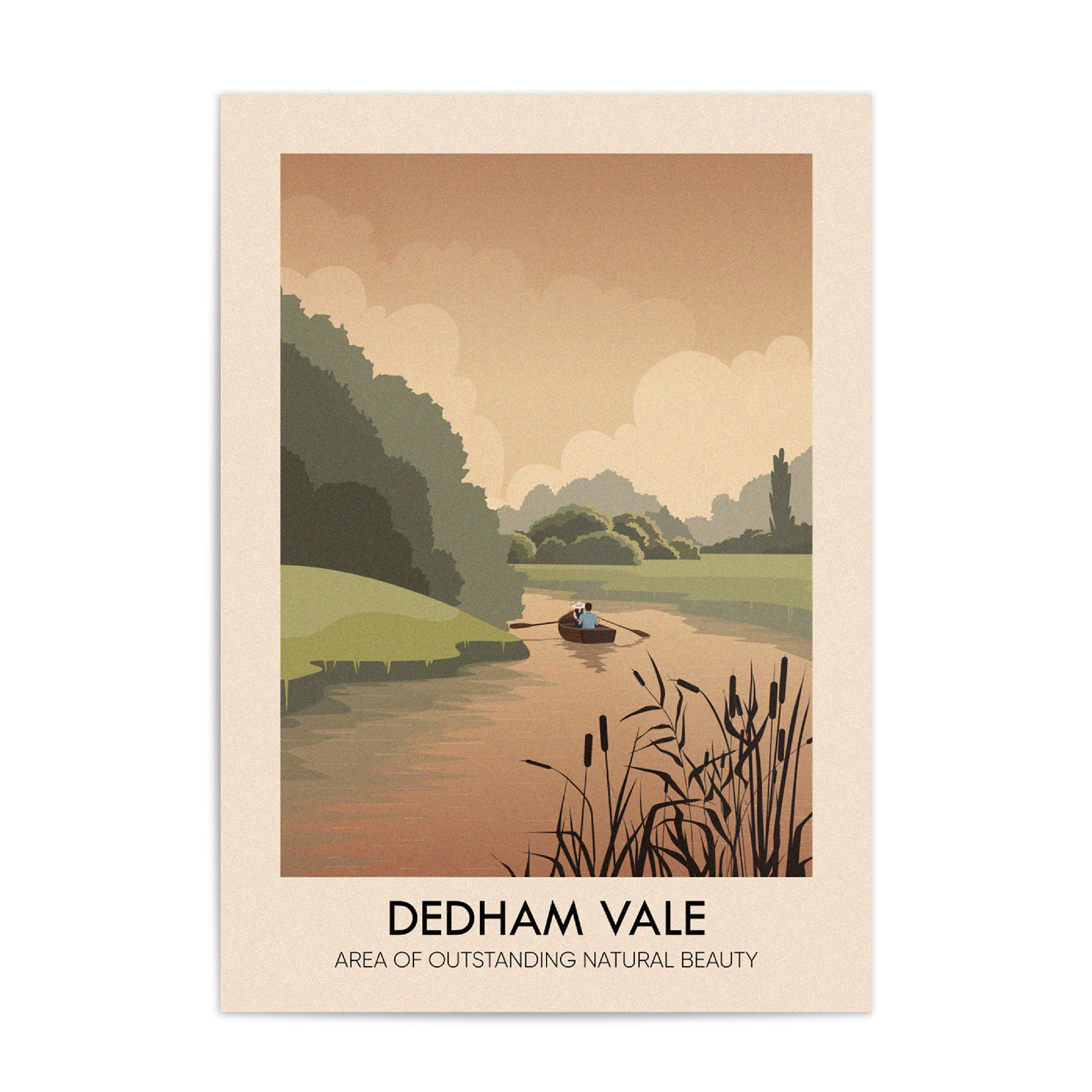 Original travel poster featuring England's Dedham Vale AONB. The poster features a picturesque view of the River Stour complete with rowing boat.