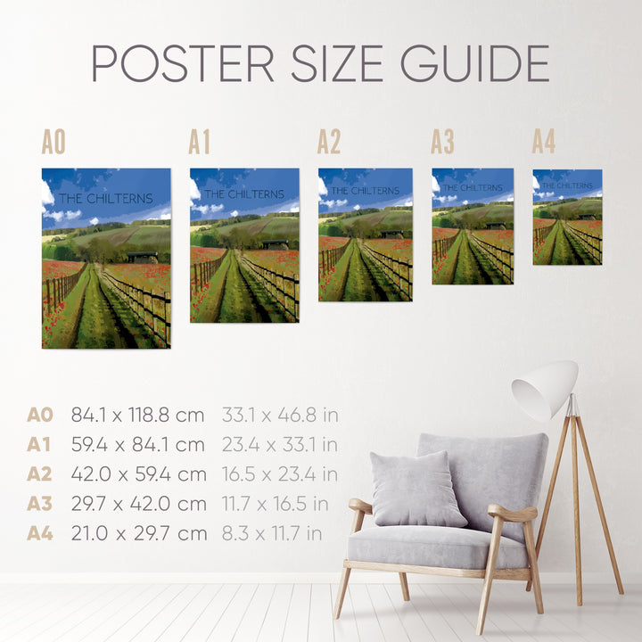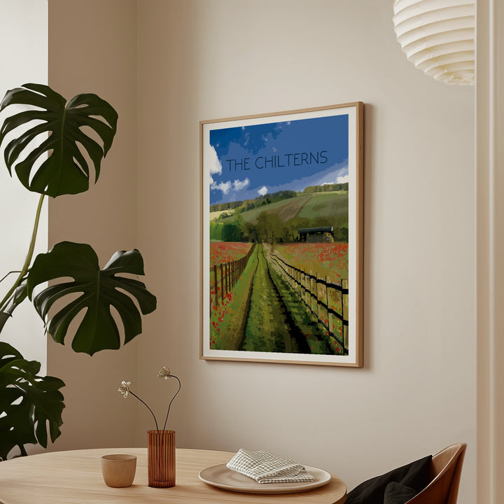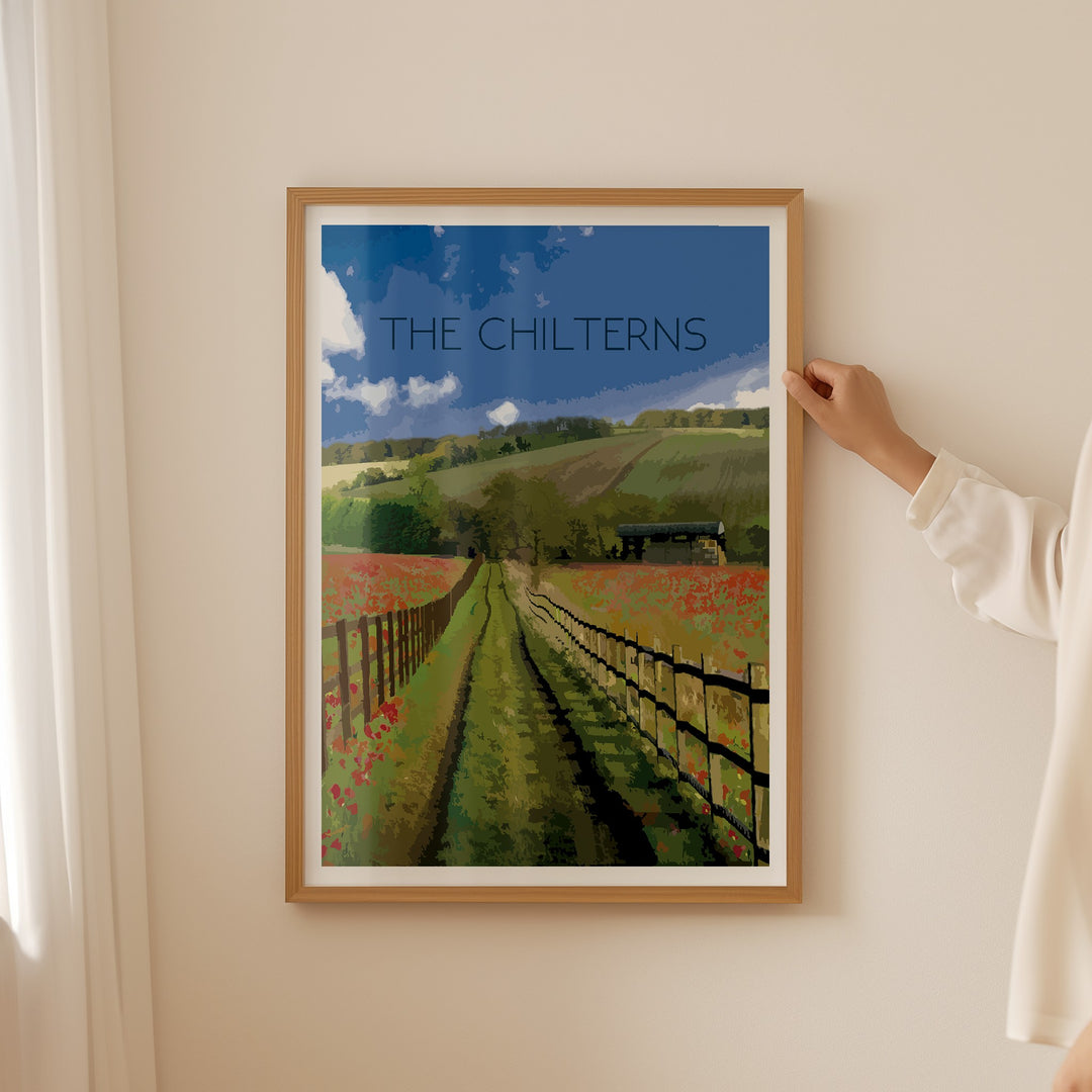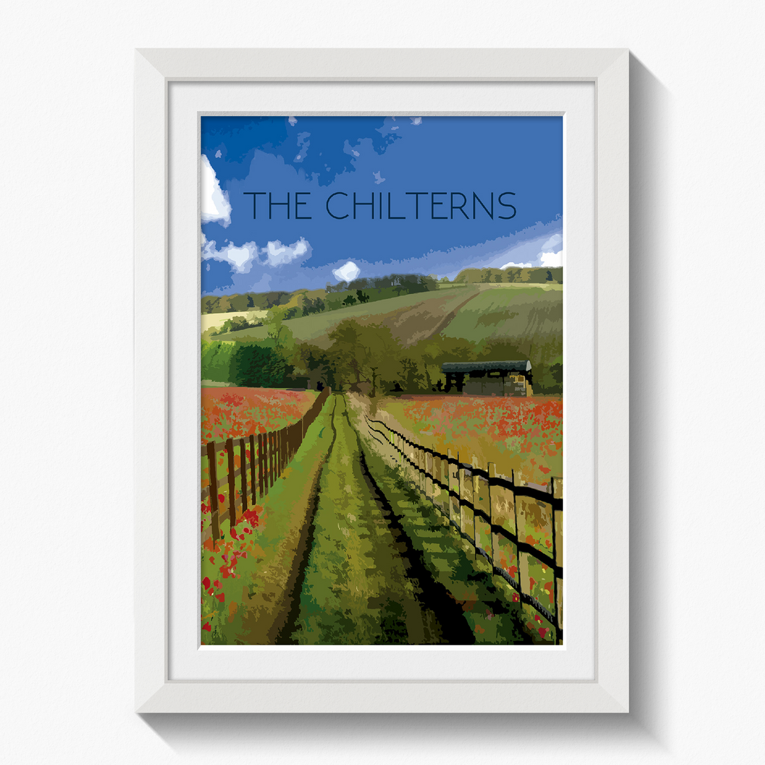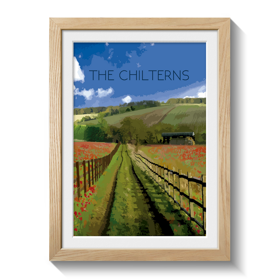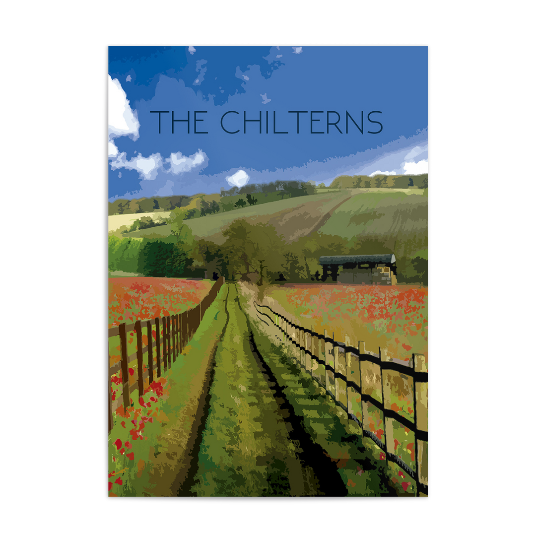 An original print featuring the charming Chiltern Hills Area of Natural Beauty, home of Ivinghoe Beacon, Dunstable Downs and the Ridgeway National Trail.