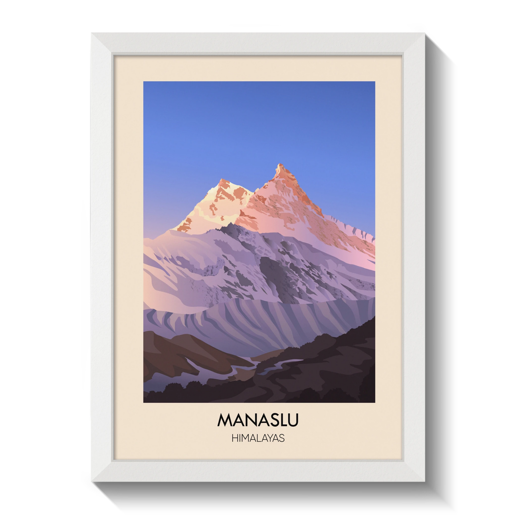 This Manaslu travel poster showcases the breathtaking beauty of the Himalayan peak, the eighth highest mountain in the world. Perfect for adventure seekers and mountain lovers, it captures the remote and rugged charm of Nepal’s Manaslu region. A striking decor piece celebrating the majesty of the Himalayas and high-altitude trekking.