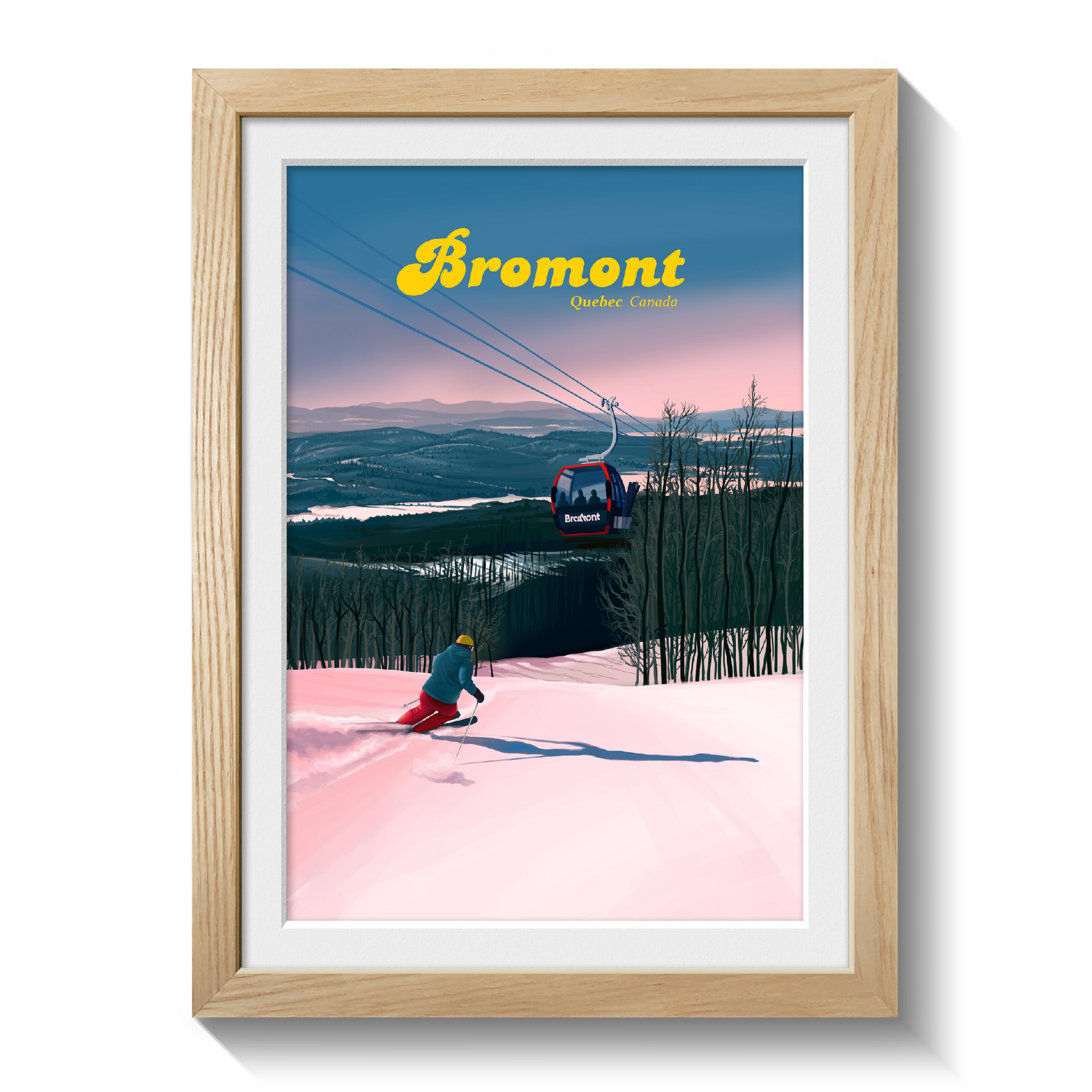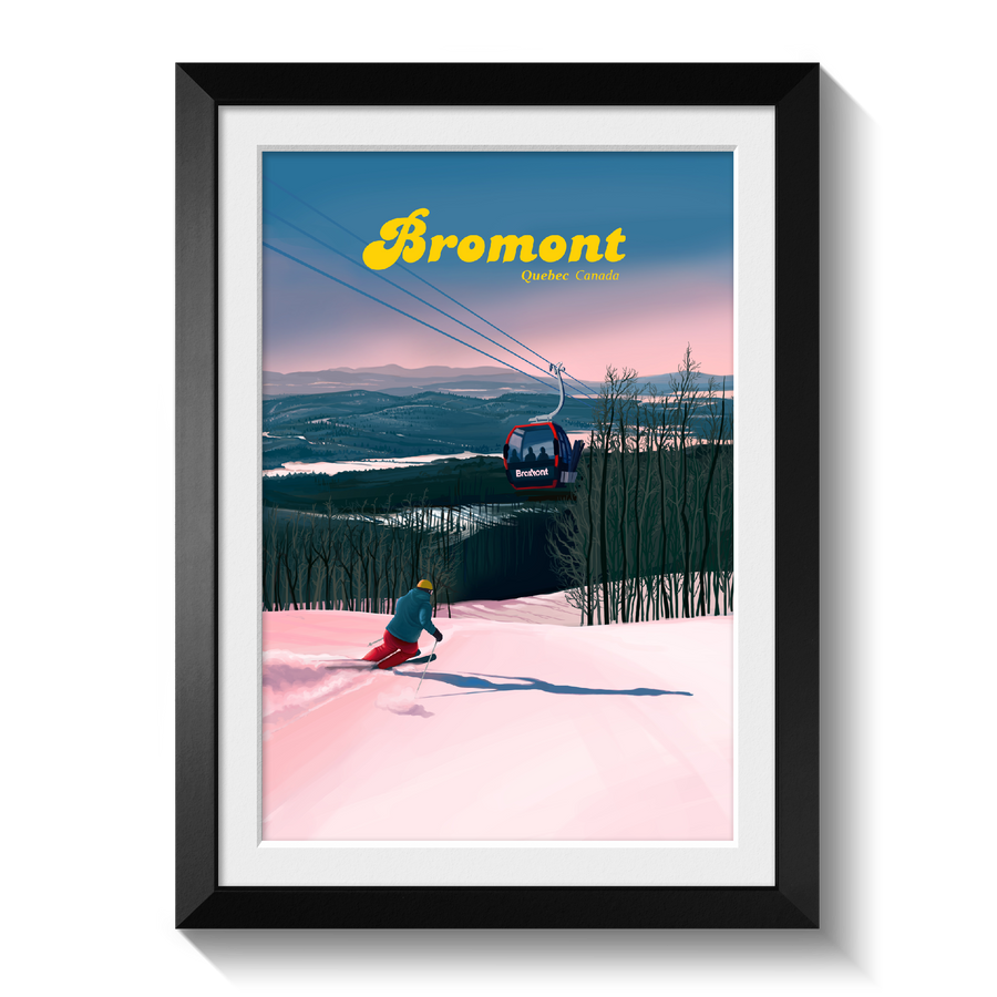 This is an original travel poster featuring Bromont Ski Resort, also known as Bromont Montagne.