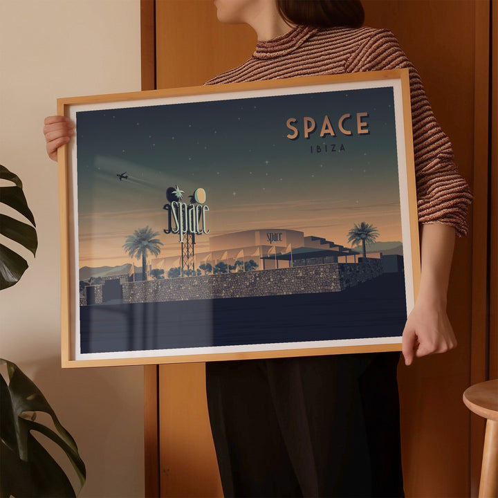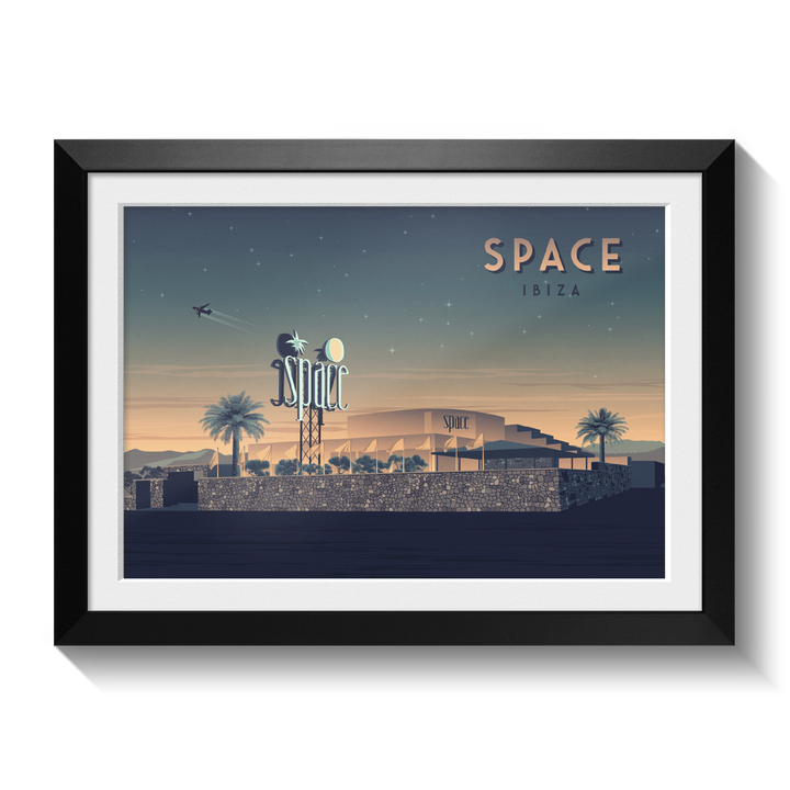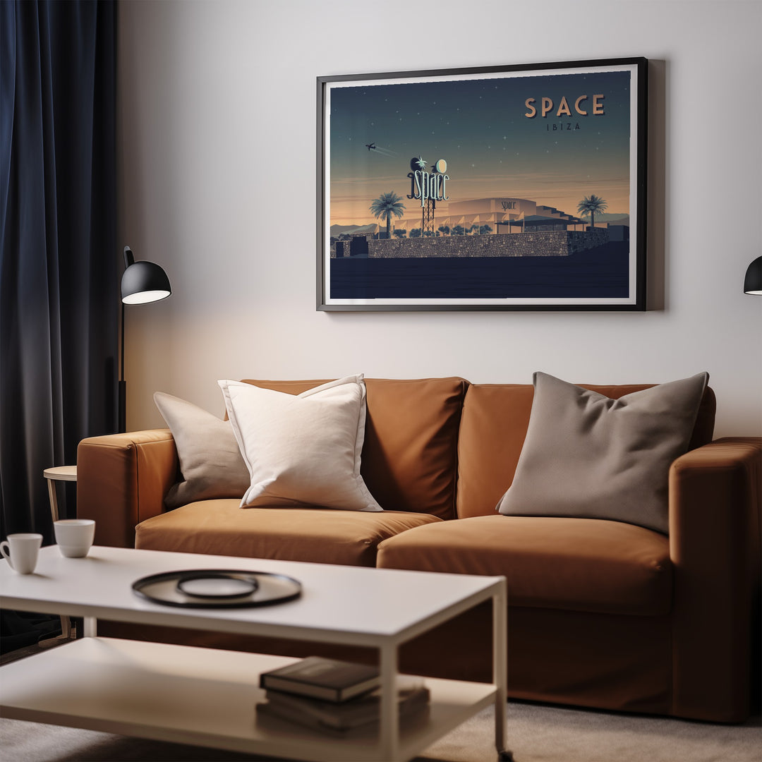An original travel poster of the famous Ibiza superclub Space, now known as Hi.