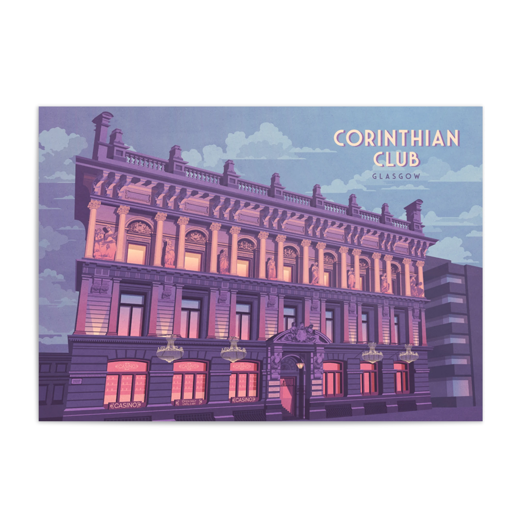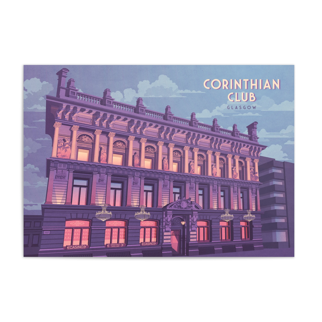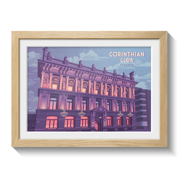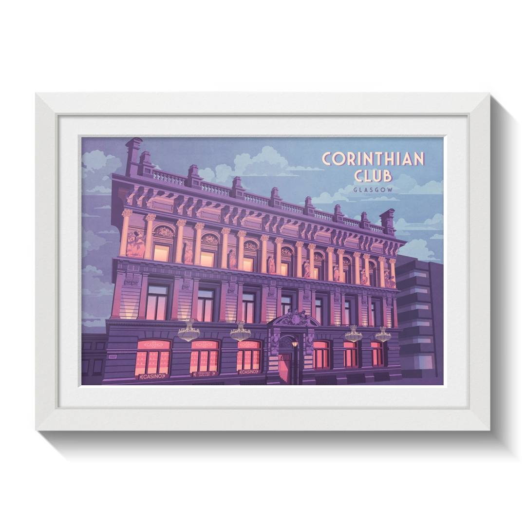 This Corinthian Club poster captures the elegance of one of Glasgow’s most iconic venues. Known for its stunning architecture, vibrant bar scene, and popular wedding events, it’s a standout in the city’s nightlife and social scene. A stylish decor piece celebrating the grandeur and cultural charm of the Corinthian Club.
