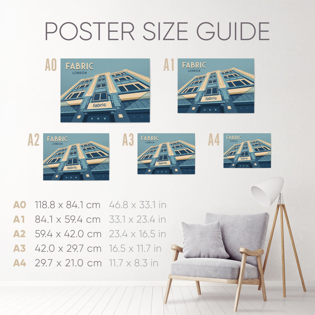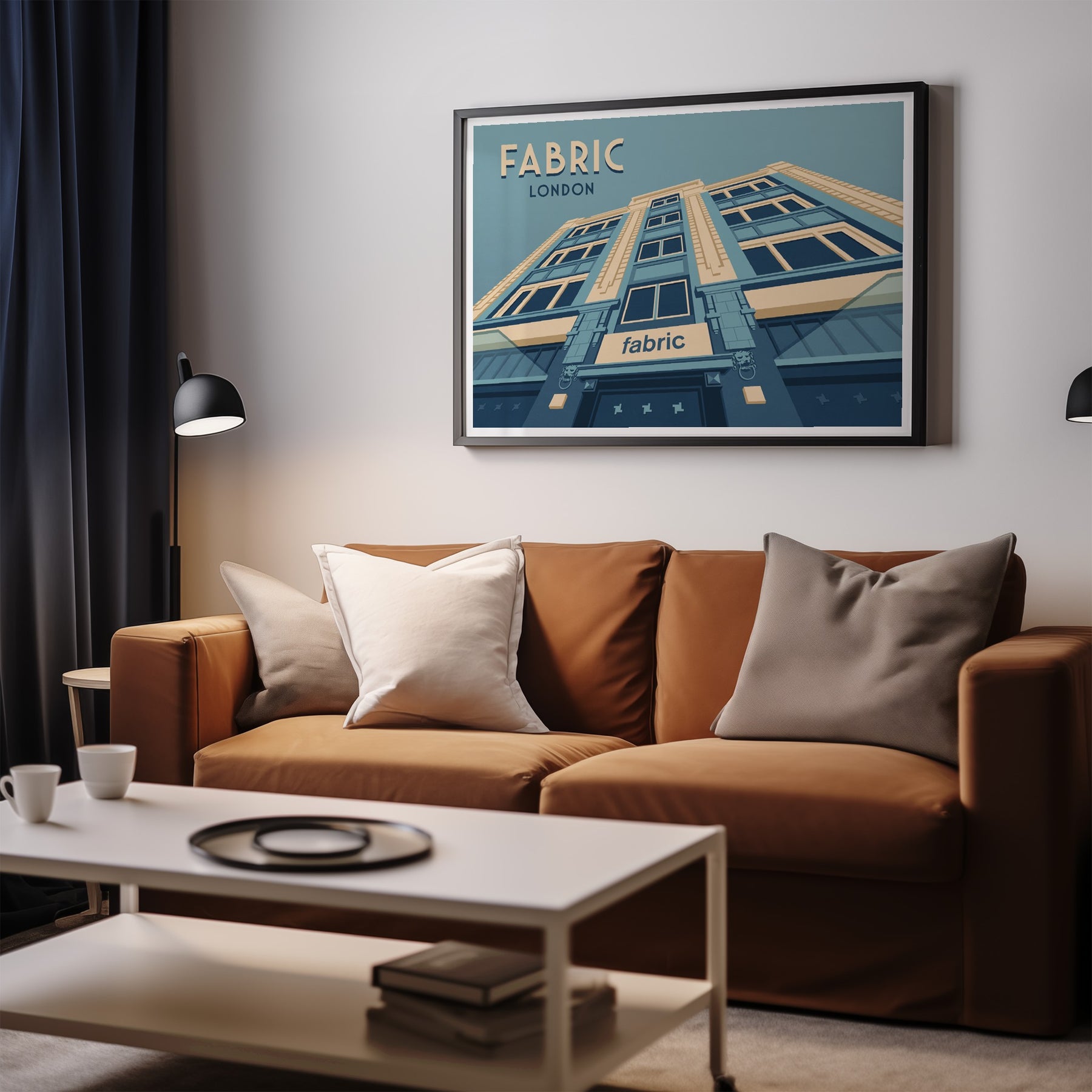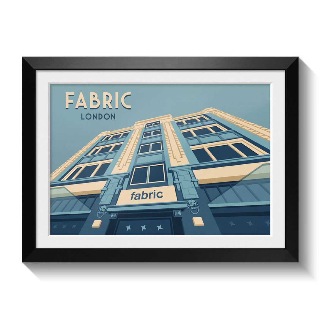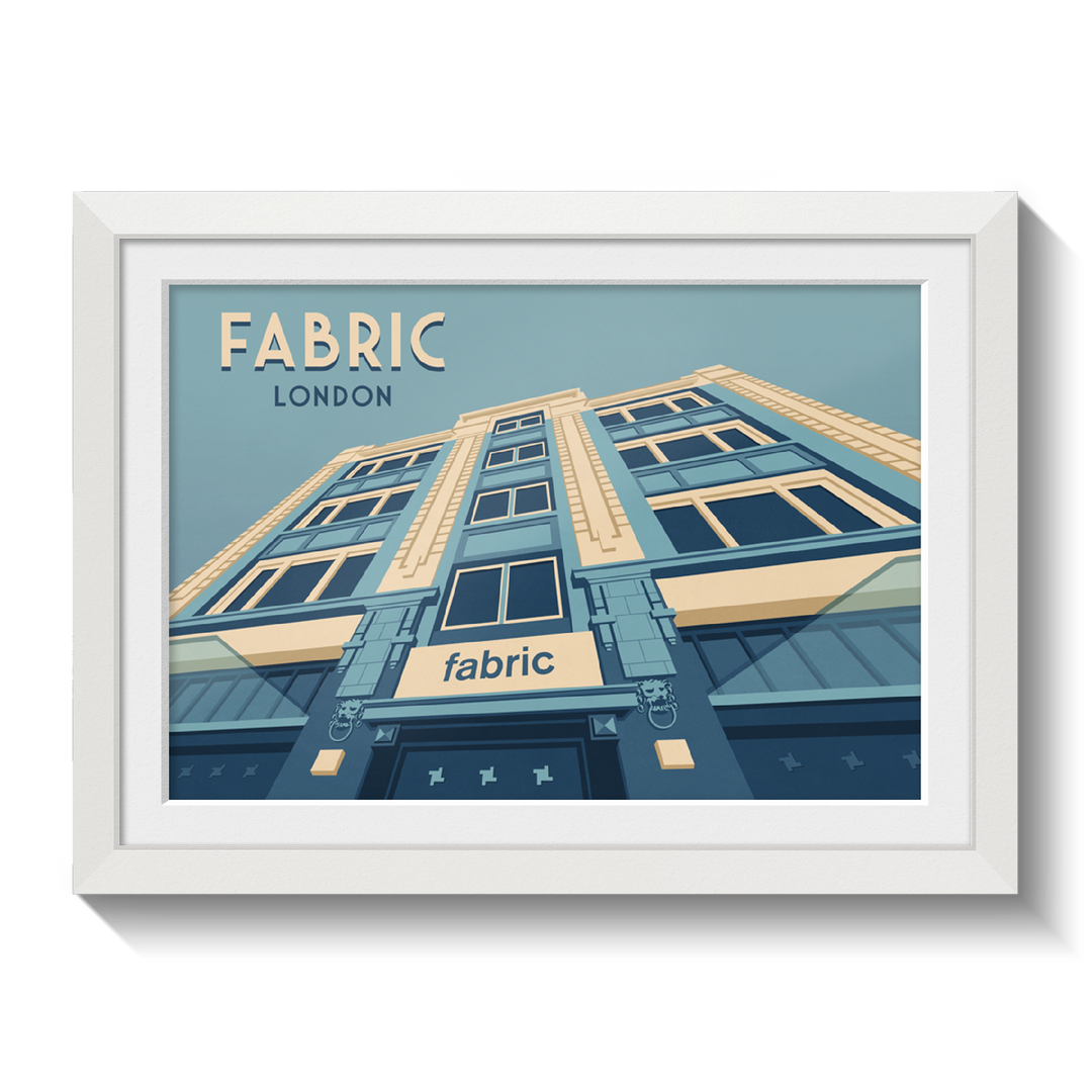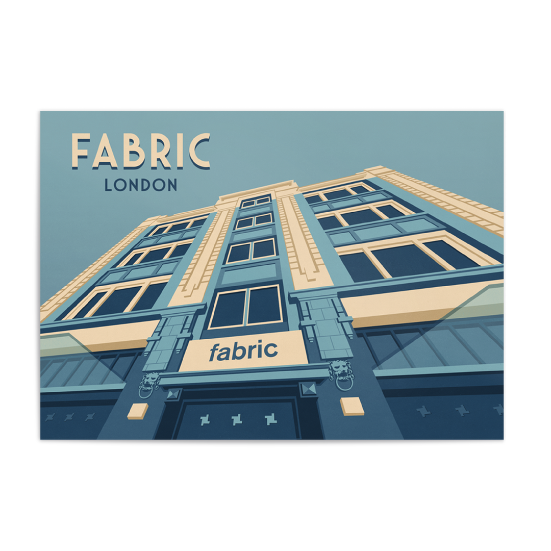 A minimalist travel poster featuring legendary London nightclub, Fabric.