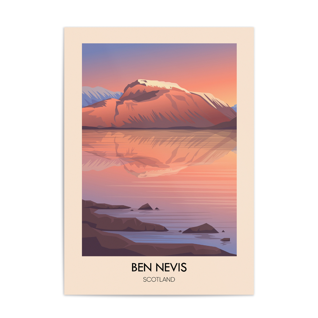 This original full colour print features the famous Ben Nevis mountain near Fort William in Scotland.