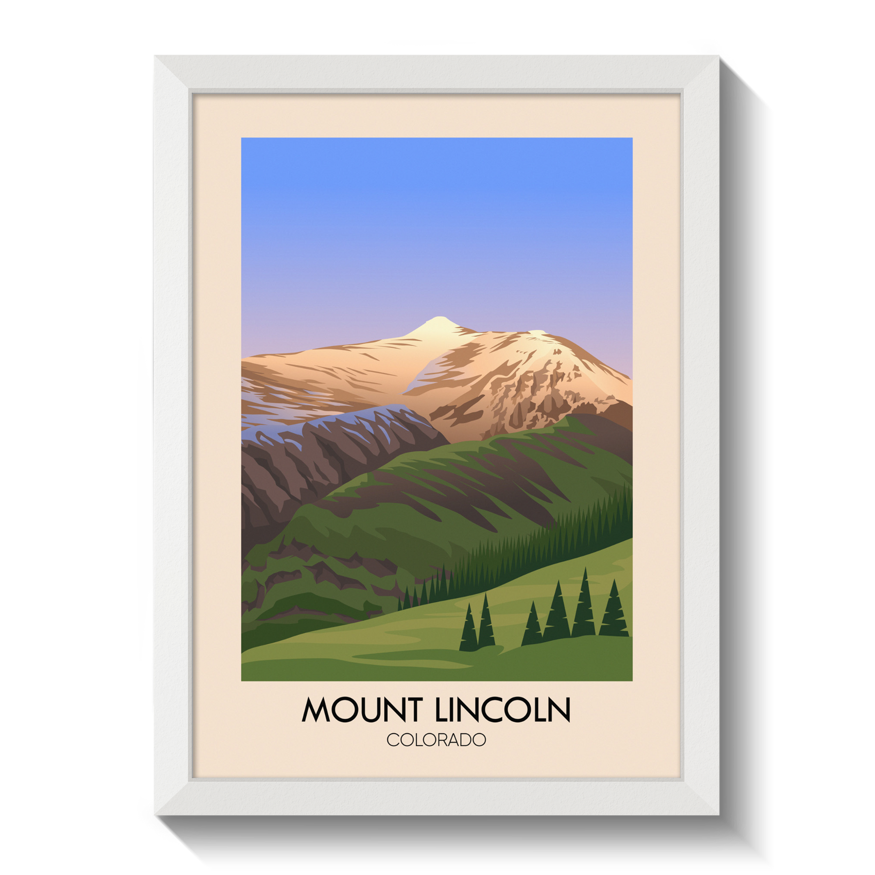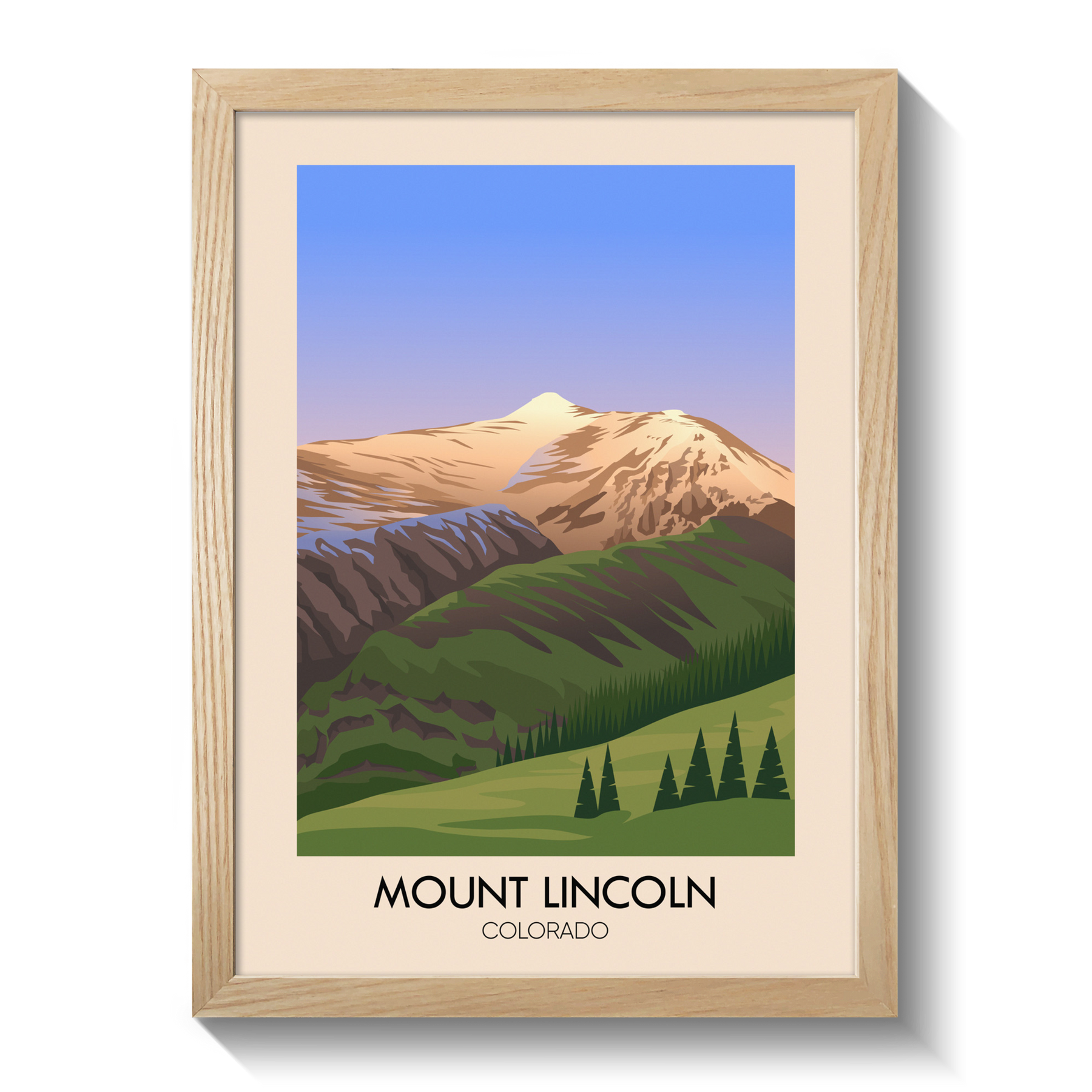This Mount Lincoln travel poster showcases the rugged charm of one of Colorado’s notable Fourteeners and the highest peak in the Mosquito Range. Ideal for hikers and alpine adventurers, it offers stunning summit views. Part of our Colorado 14ers collection, it’s a stylish tribute to the beauty of Mount Lincoln.