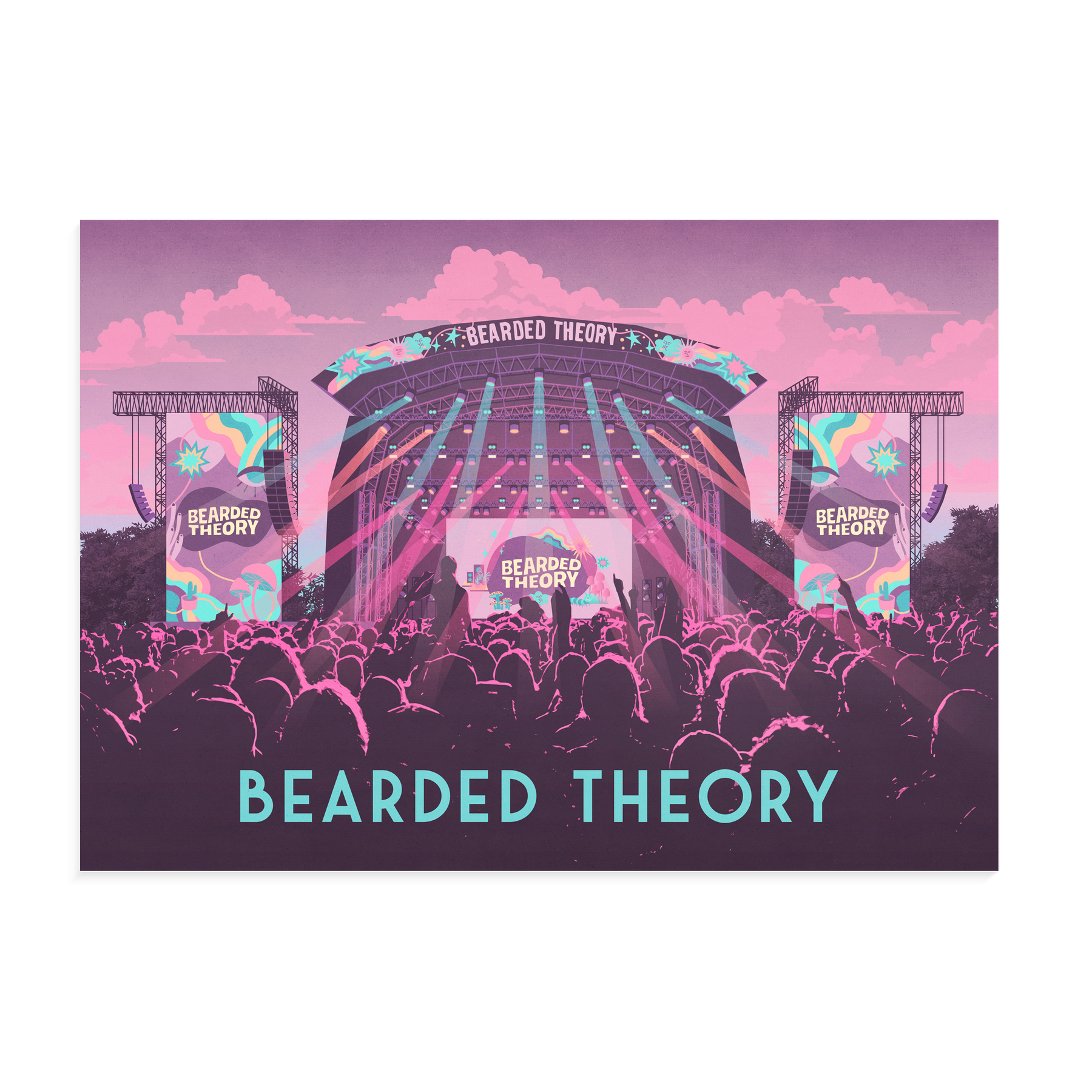 This Bearded Theory Festival poster captures the lively spirit of one of the UK’s favourite independent music events. Perfect for festival fans and music lovers, it celebrates the diverse line-ups and vibrant atmosphere. A bold decor piece honoring the creativity and community of the Bearded Theory Music Festival.