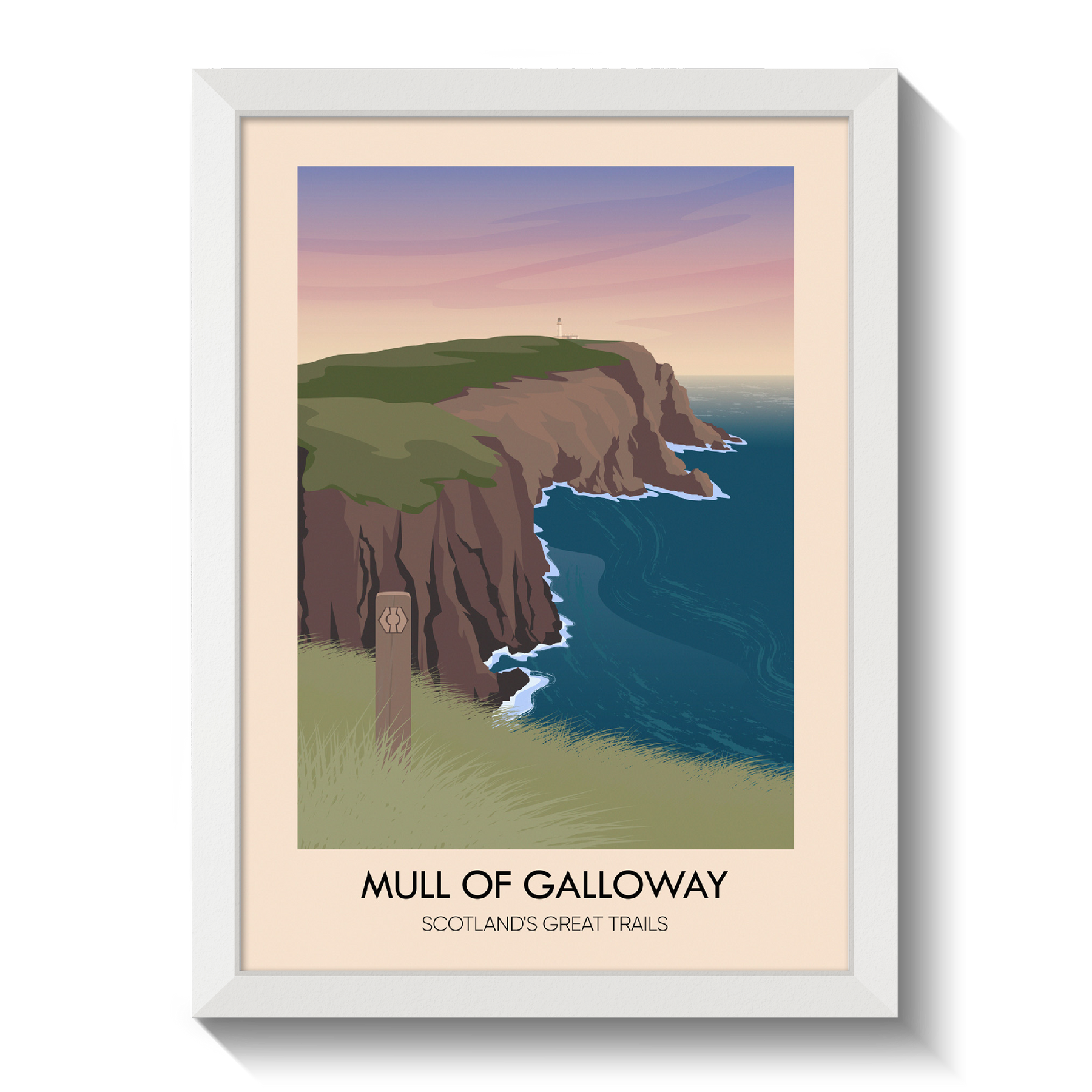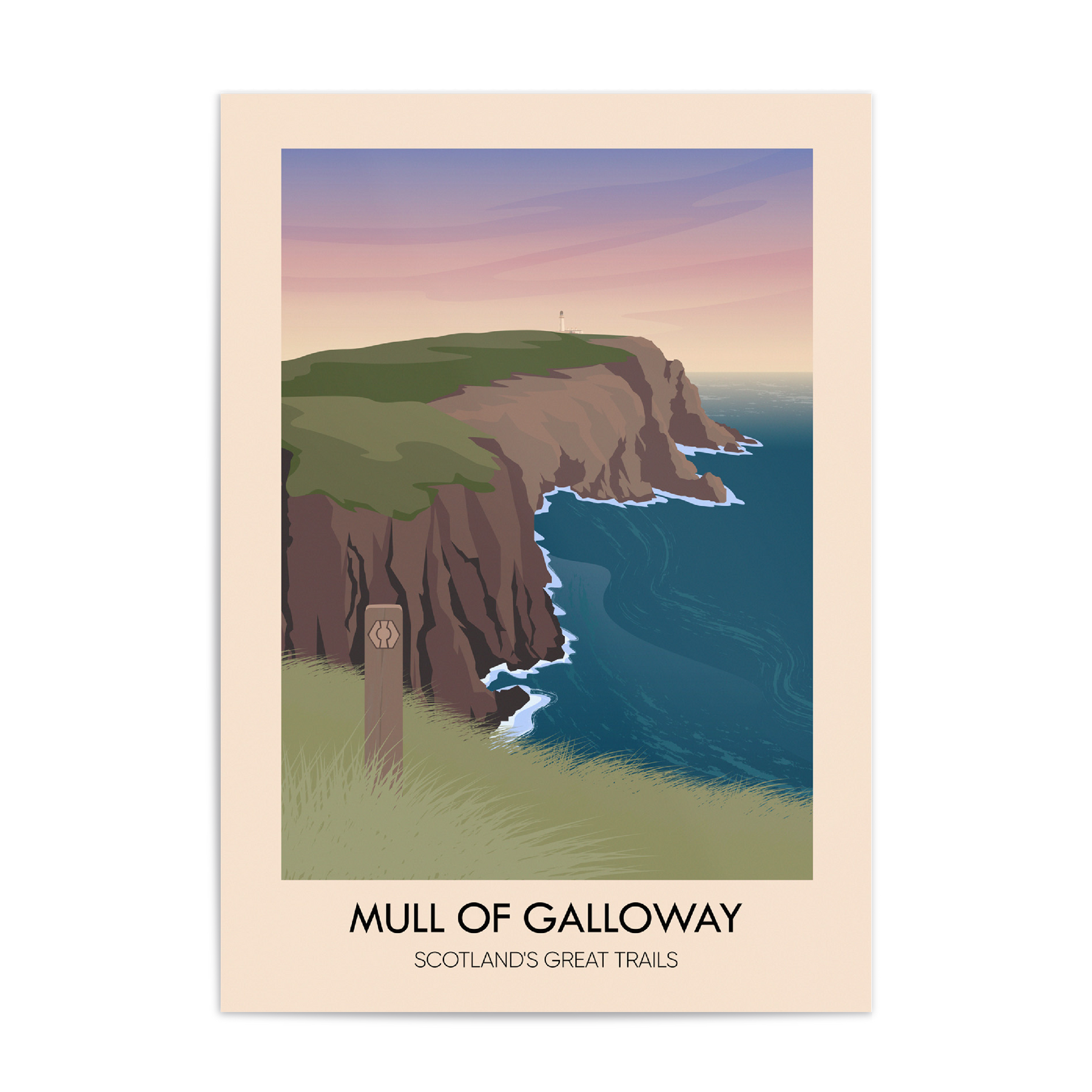 This original print features the Mull Of Galloway a 37 mile Scottish coastal hiking trail that begins in Glenapp near Ballantrae and ends on the Mull Of Galloway, from which the trail gets its name.