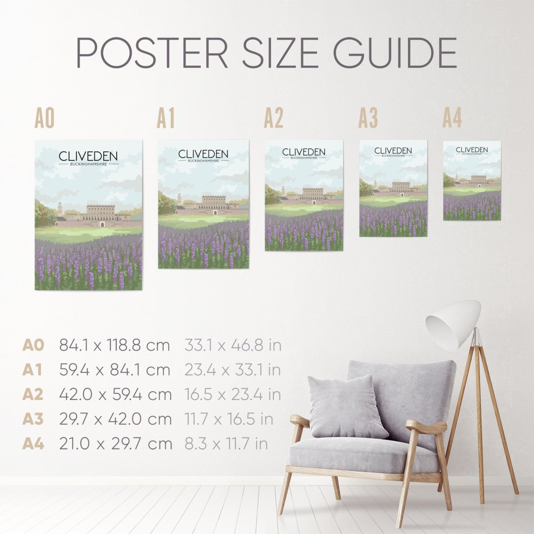 This Cliveden Buckinghamshire poster showcases the grandeur of the historic estate, with its landscaped gardens, woodland paths, and impressive architecture. Perfect for heritage lovers and garden enthusiasts, it captures the elegance and scenic beauty of Cliveden. A stylish decor piece celebrating one of Buckinghamshire’s most iconic National Trust landmarks.
