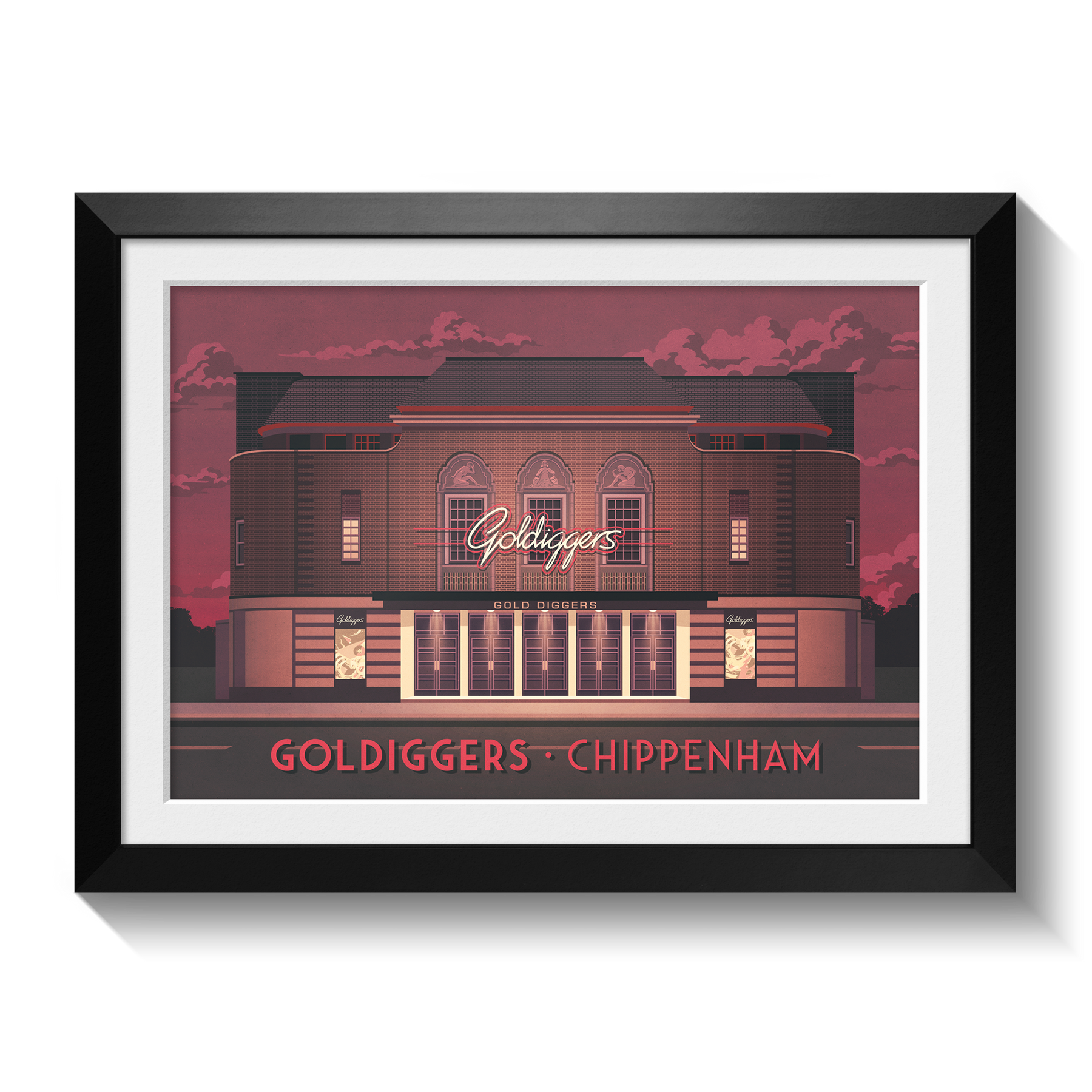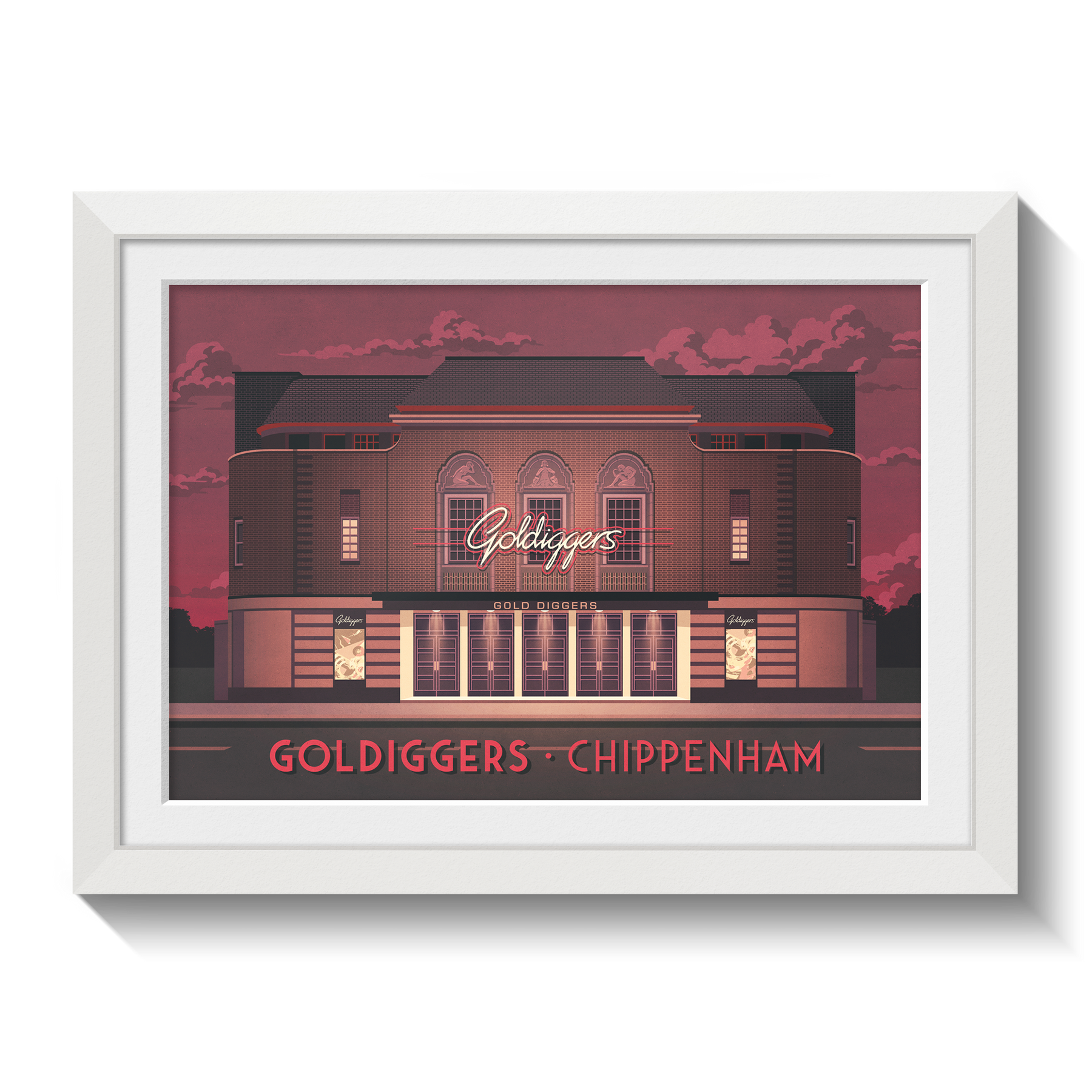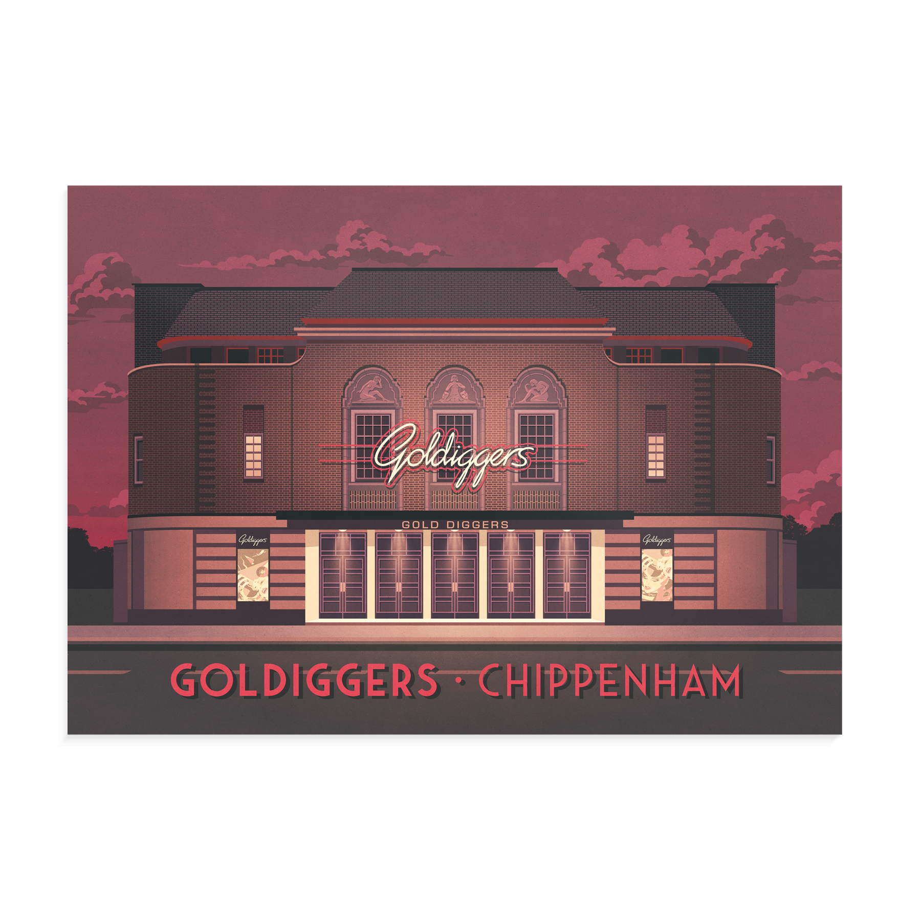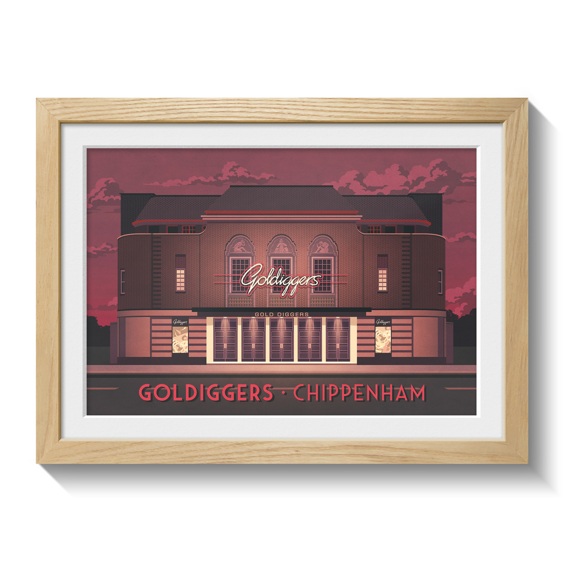 This Goldiggers Club Chippenham poster celebrates the nostalgia and energy of one of Wiltshire’s most iconic former nightclubs. Known for its lively atmosphere, memorable club nights, and beloved place in local nightlife history, it’s perfect for music fans and nostalgia lovers. A stylish decor piece honouring the legacy of Goldiggers in Chippenham.