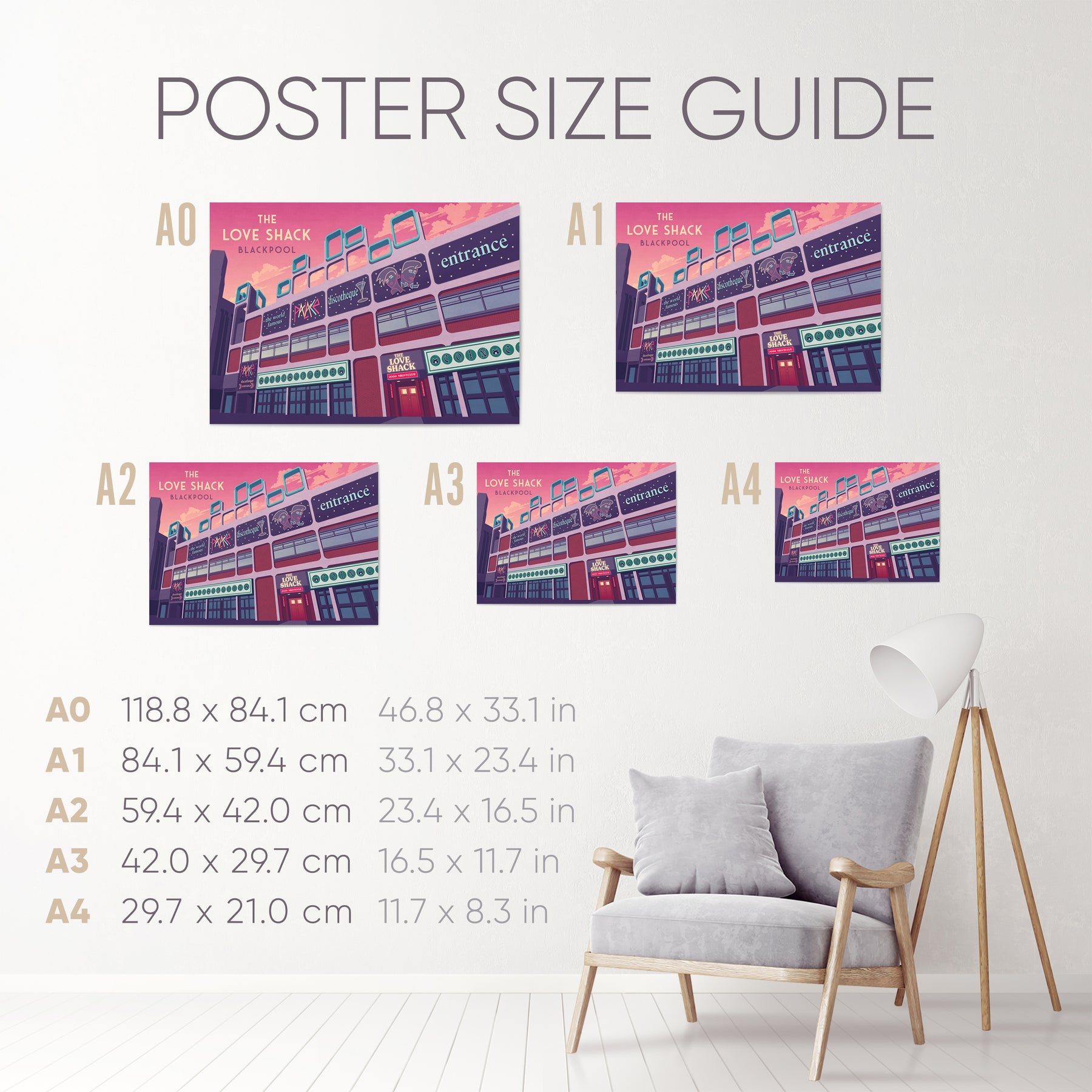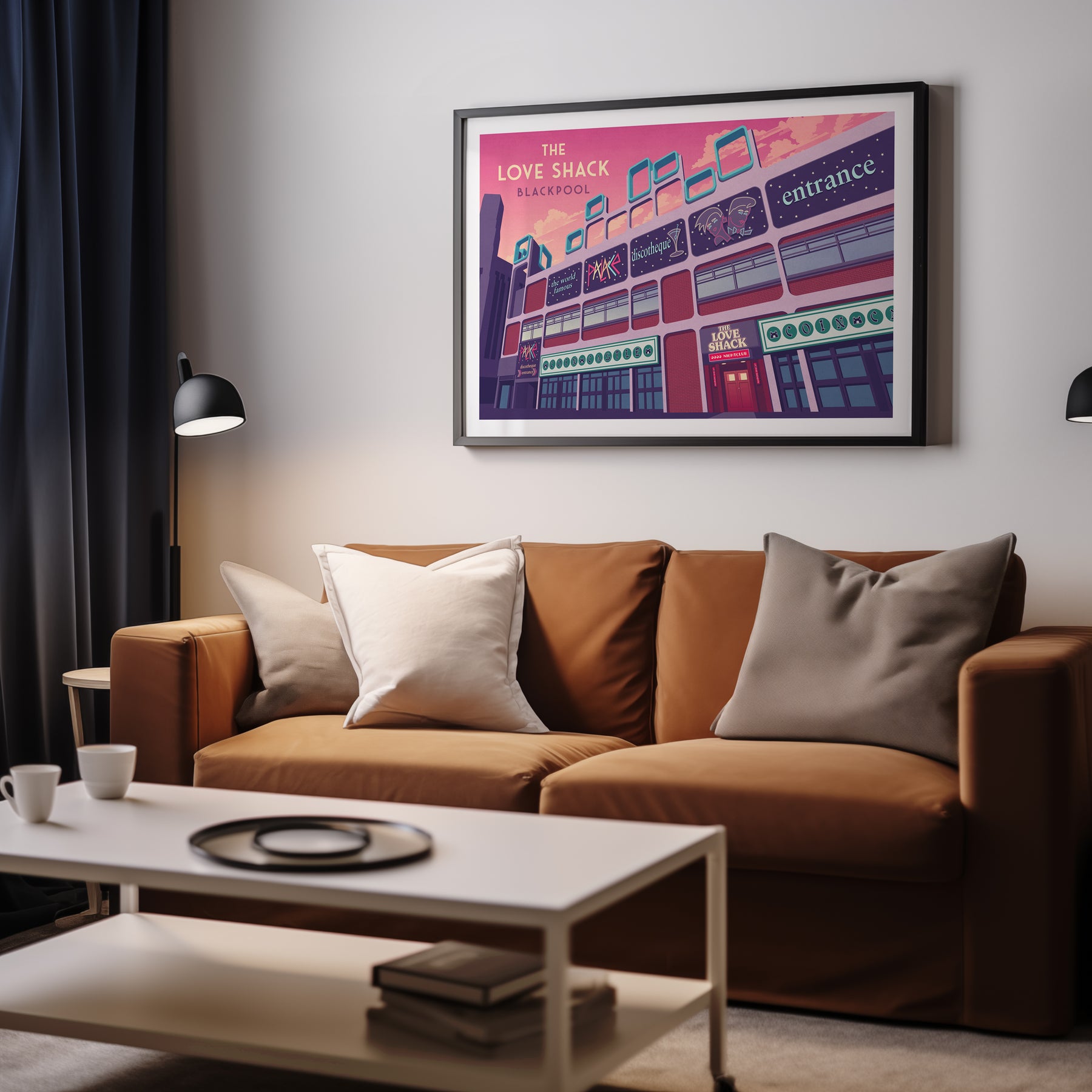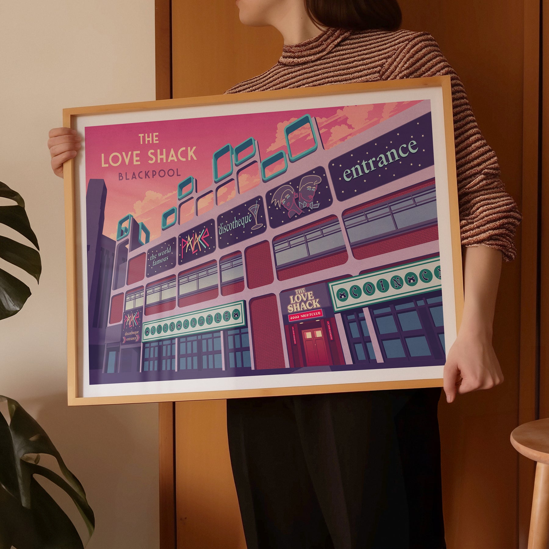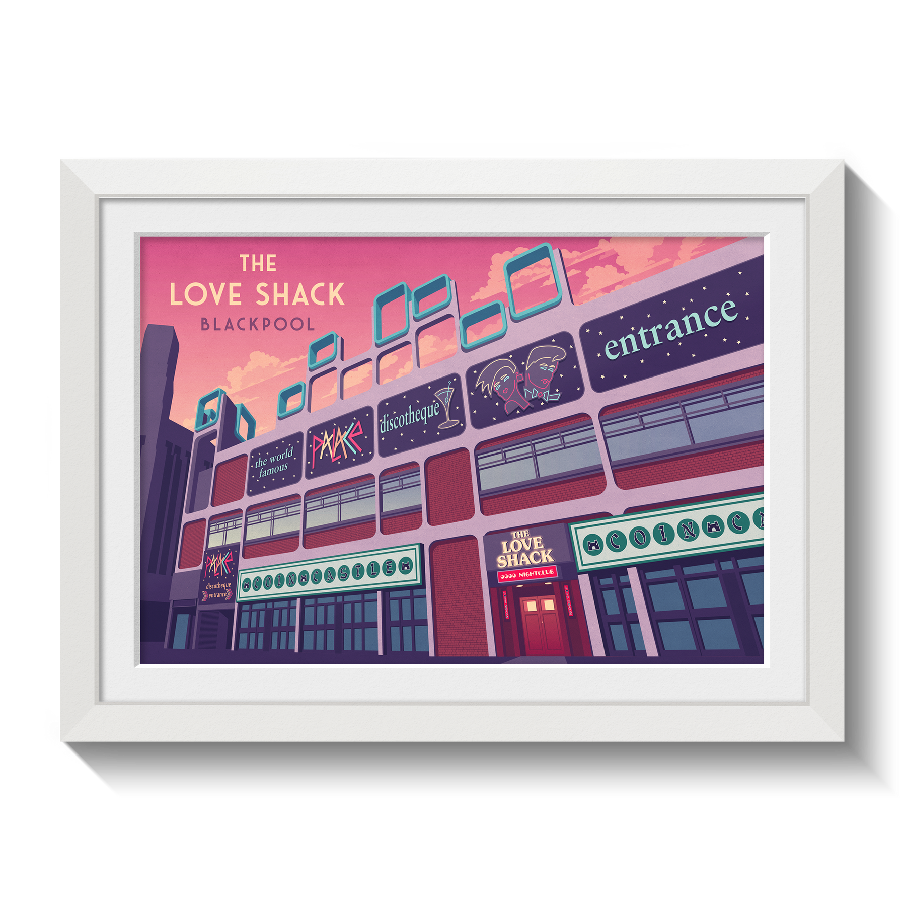 This Love Shack Nightclub Blackpool poster celebrates the fun, vibrant atmosphere of one of the town’s favourite nightlife spots. Perfect for partygoers and music fans, it captures the energy of Blackpool’s club scene. A stylish decor piece paying tribute to the lively spirit of Love Shack Nightclub.