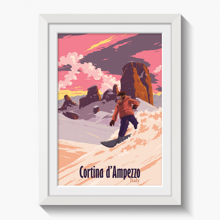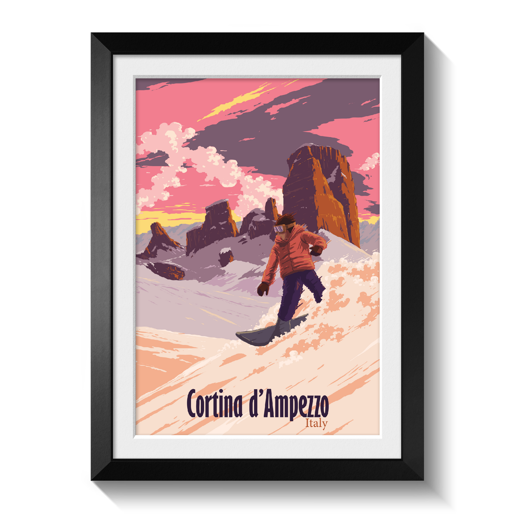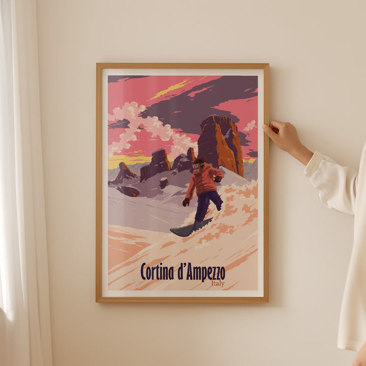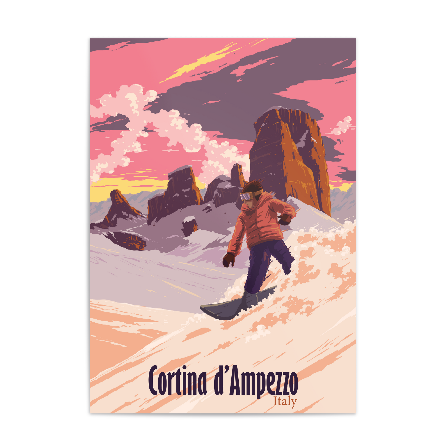 Cortina d'Ampezzo Snowboarding Travel Poster