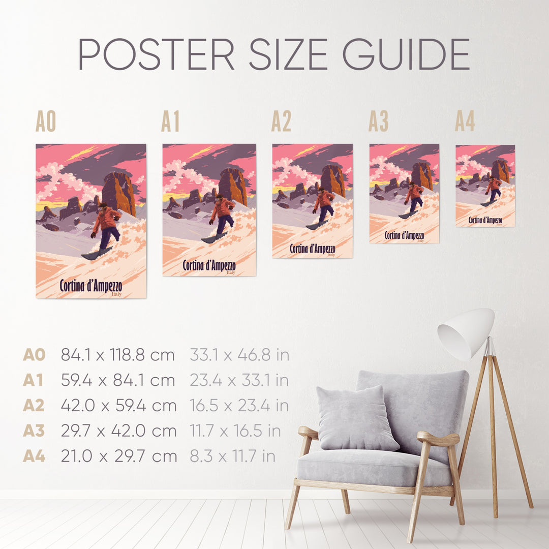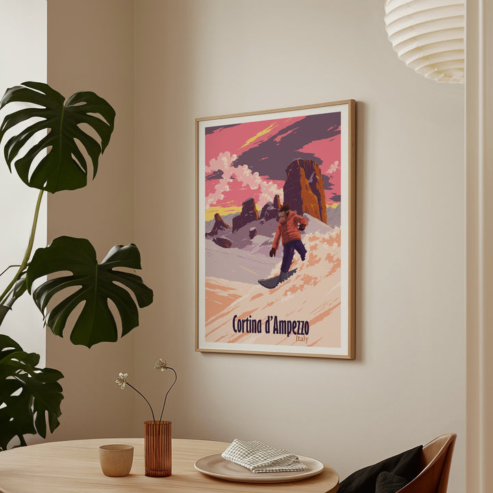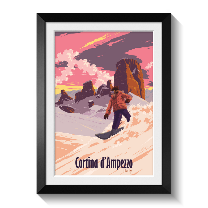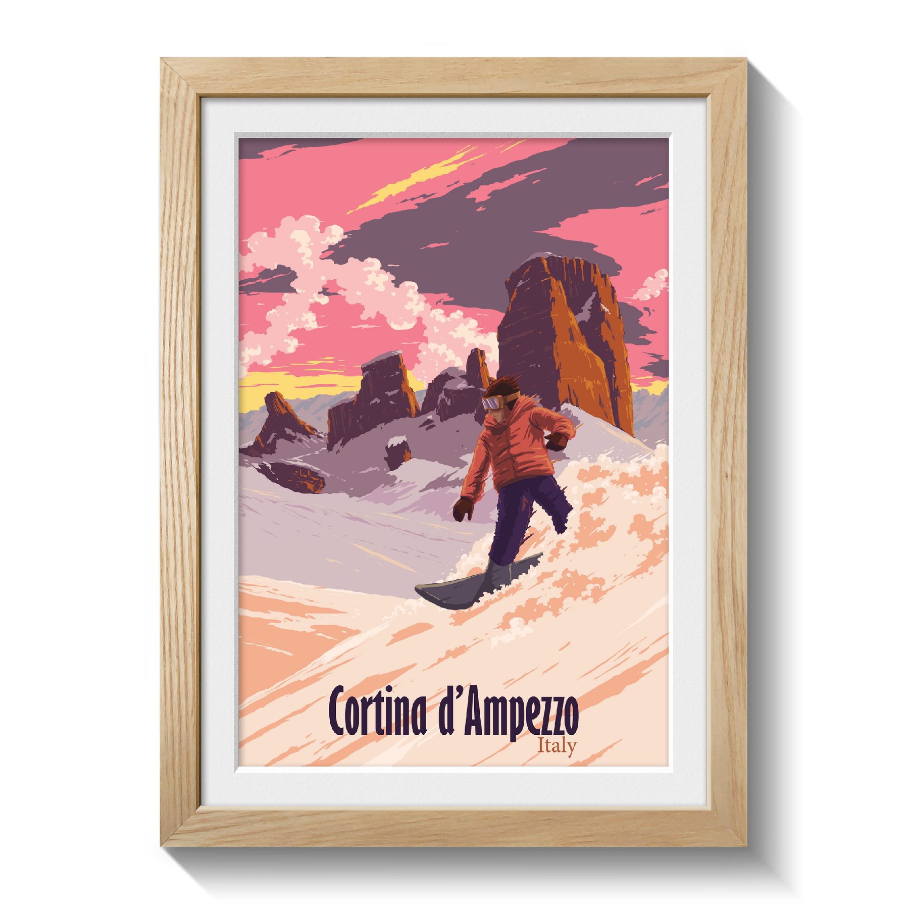 Cortina d'Ampezzo Snowboarding Travel Poster