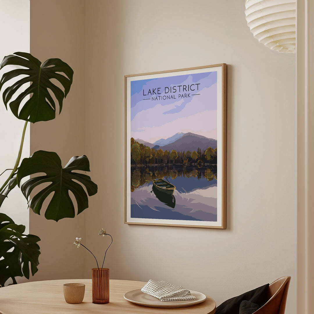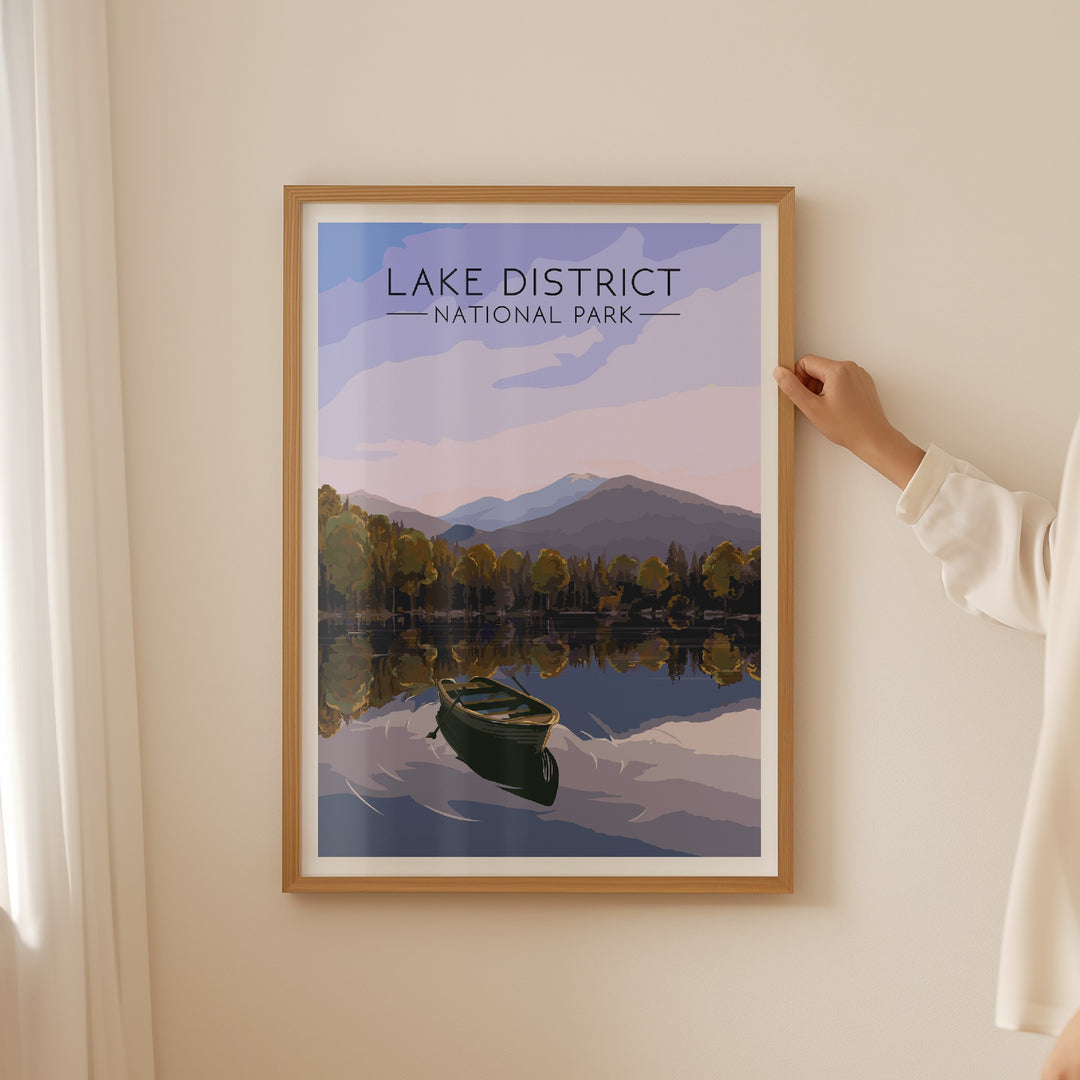 Original UK National Park travel poster featuring the famous Ullswater Lake in Cumbria's Lake District.