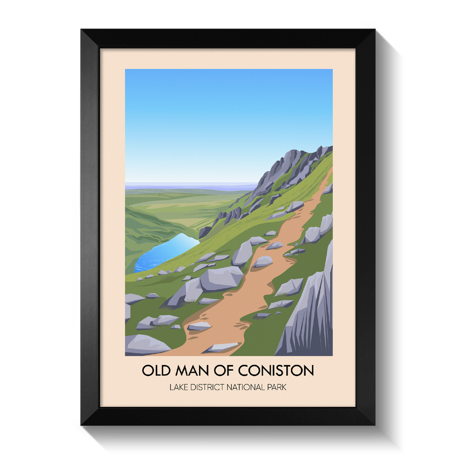 This original print features the Old Man Of Coniston, situated in the Furness Fells west of the village of Coniston and Coniston Water. It is also known as Coniston Old Man, or simply The Old Man.