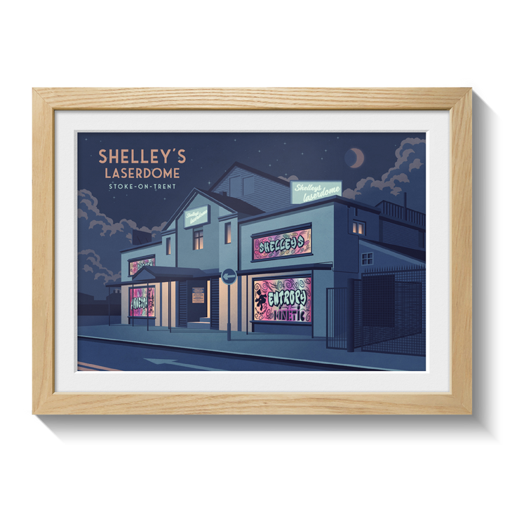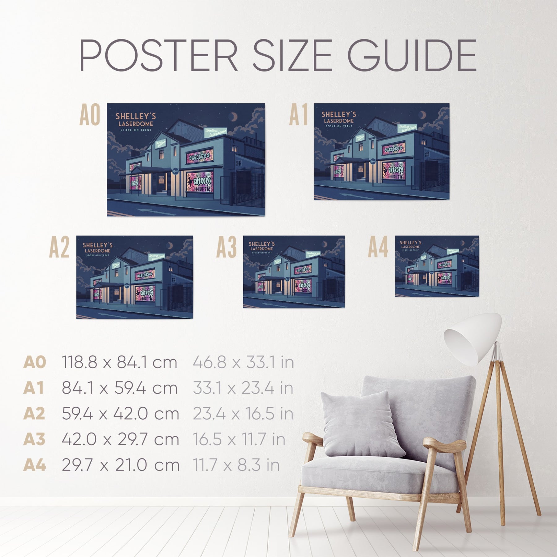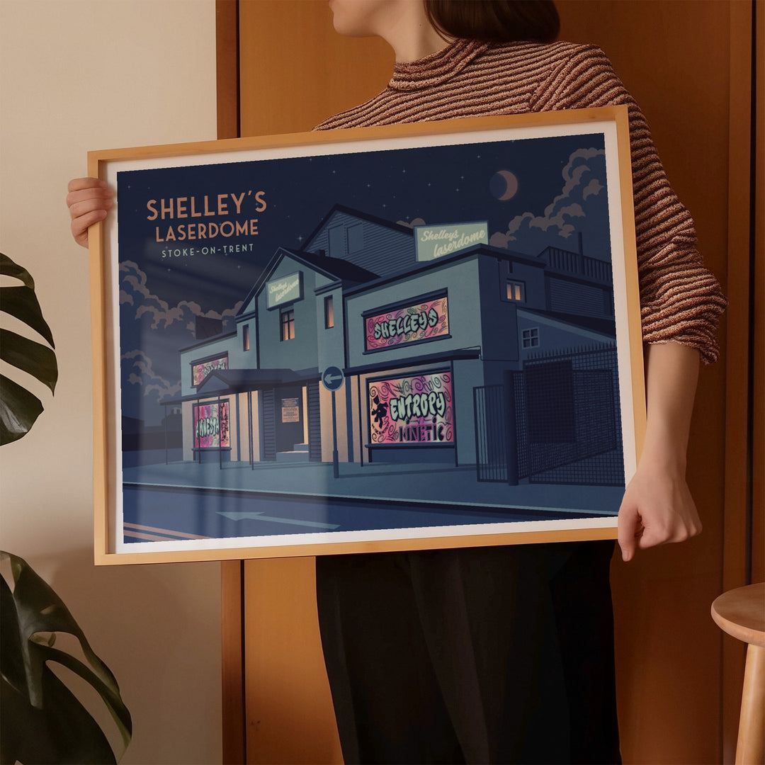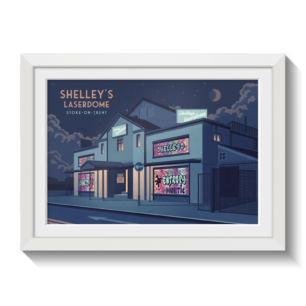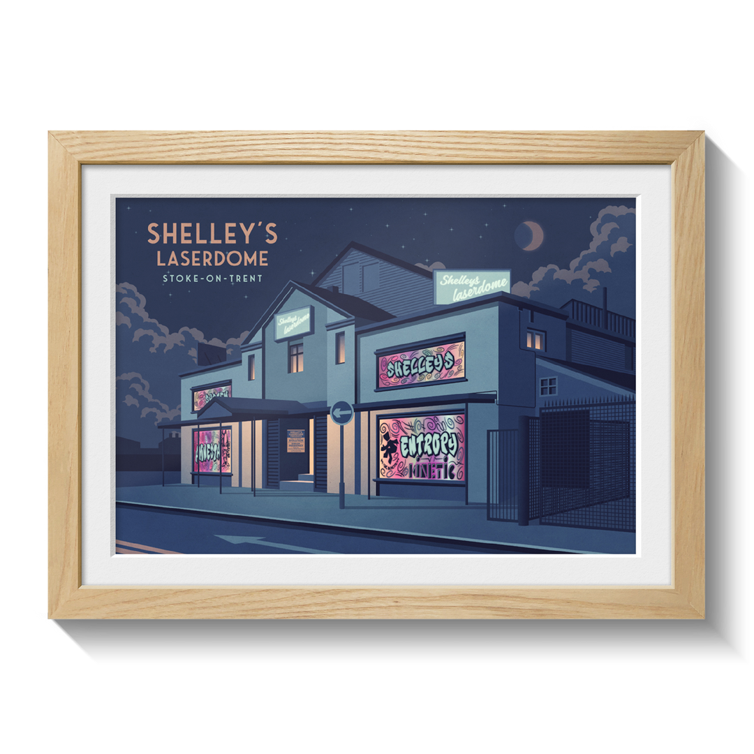 An original travel poster featuring iconic 90s rave club, Shelley's Laserdome.