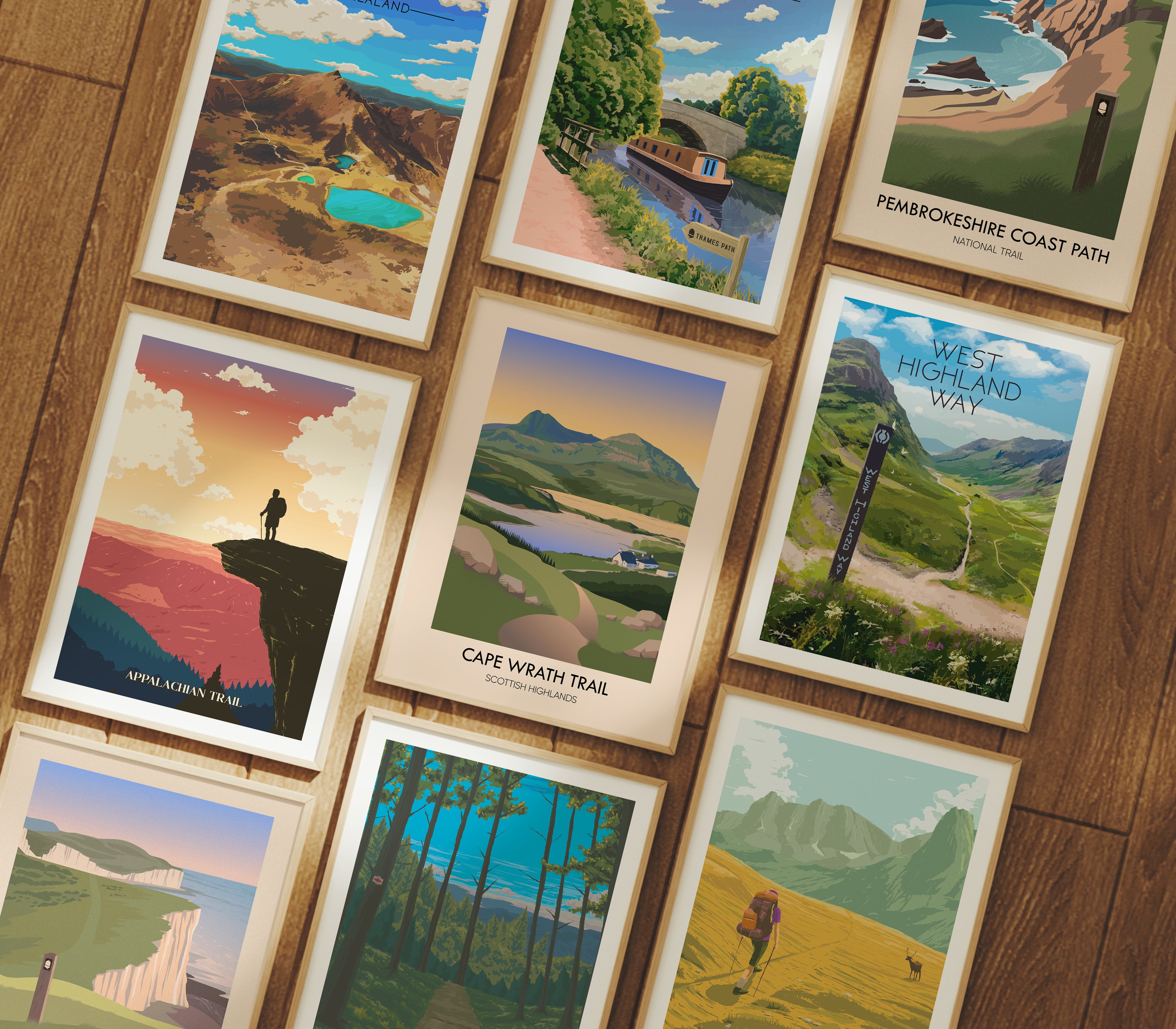 Whether you're a thru hiker getting ready to take on the Appalachian Trail or Pacific Crest Trail, or a casual rambler ticking off the South Downs Way on weekends, we've got the perfect travel poster for you, from the National Scenic Trails of the USA to the UK's National Trails.
