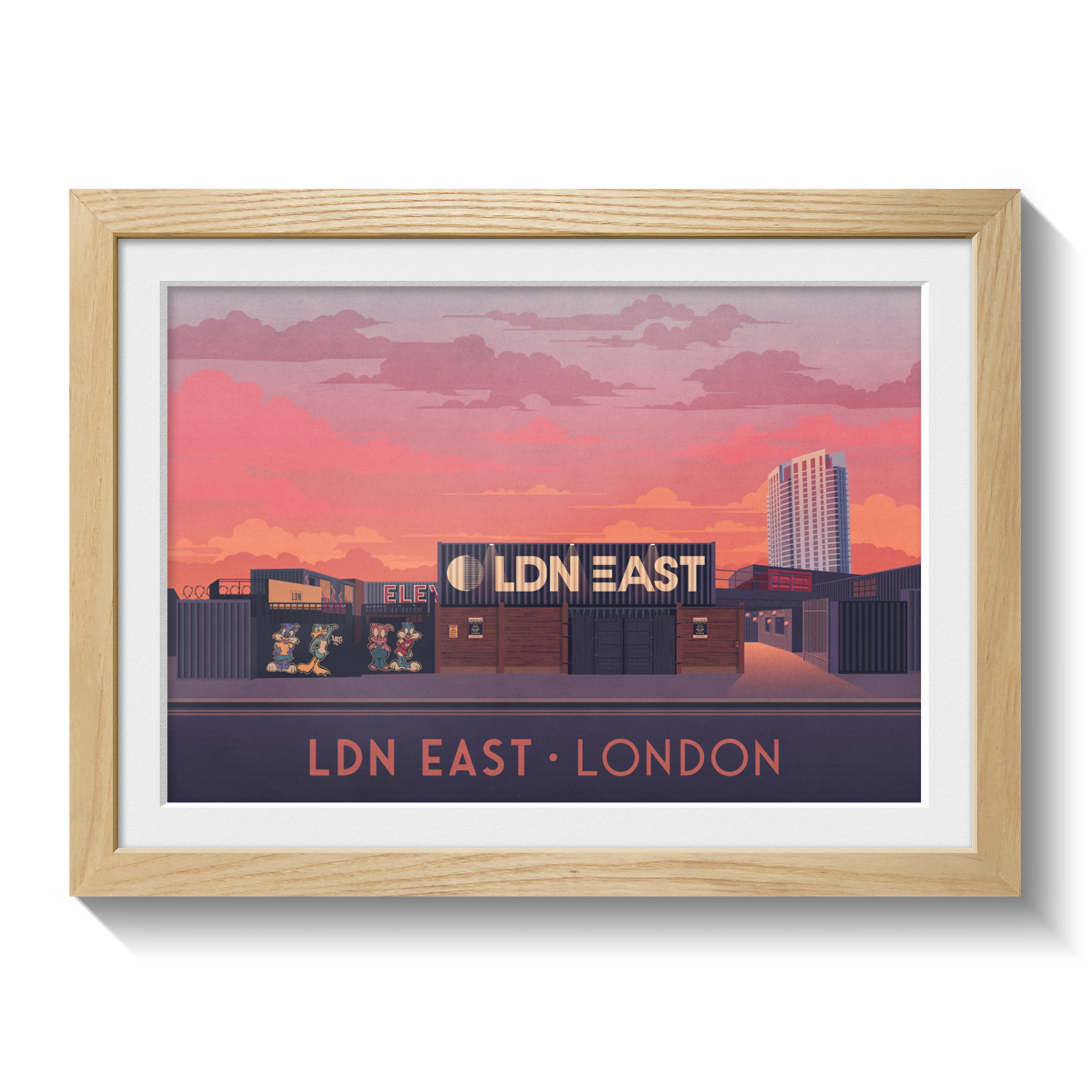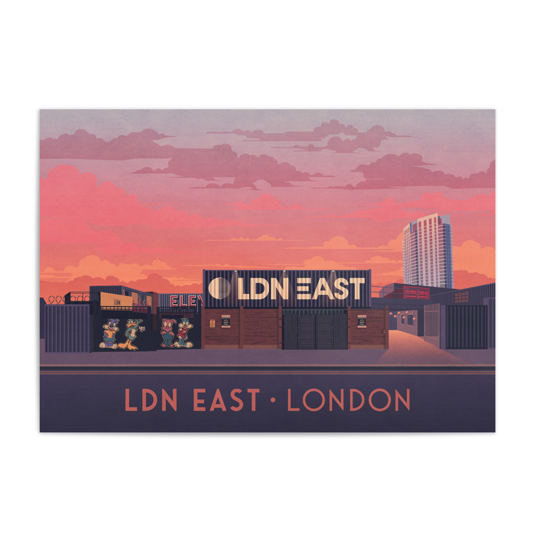 This LDN East poster captures the industrial edge and vibrant atmosphere of one of London’s standout event spaces. Known for hosting live music, club nights, and cultural events, it’s perfect for nightlife fans and city explorers. A bold decor piece celebrating the creative energy of LDN East in East London.