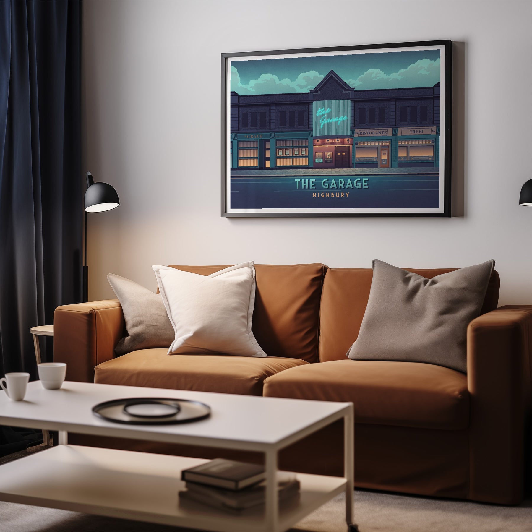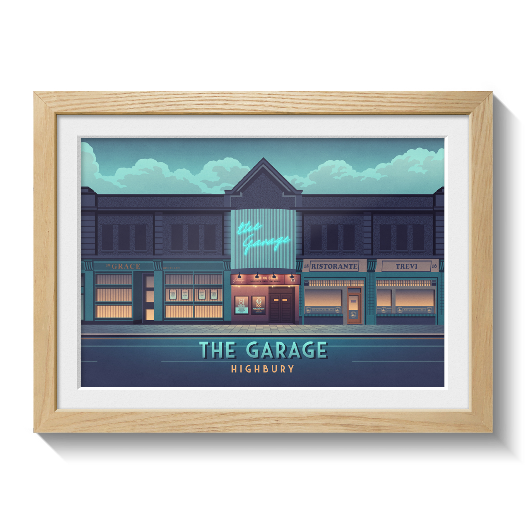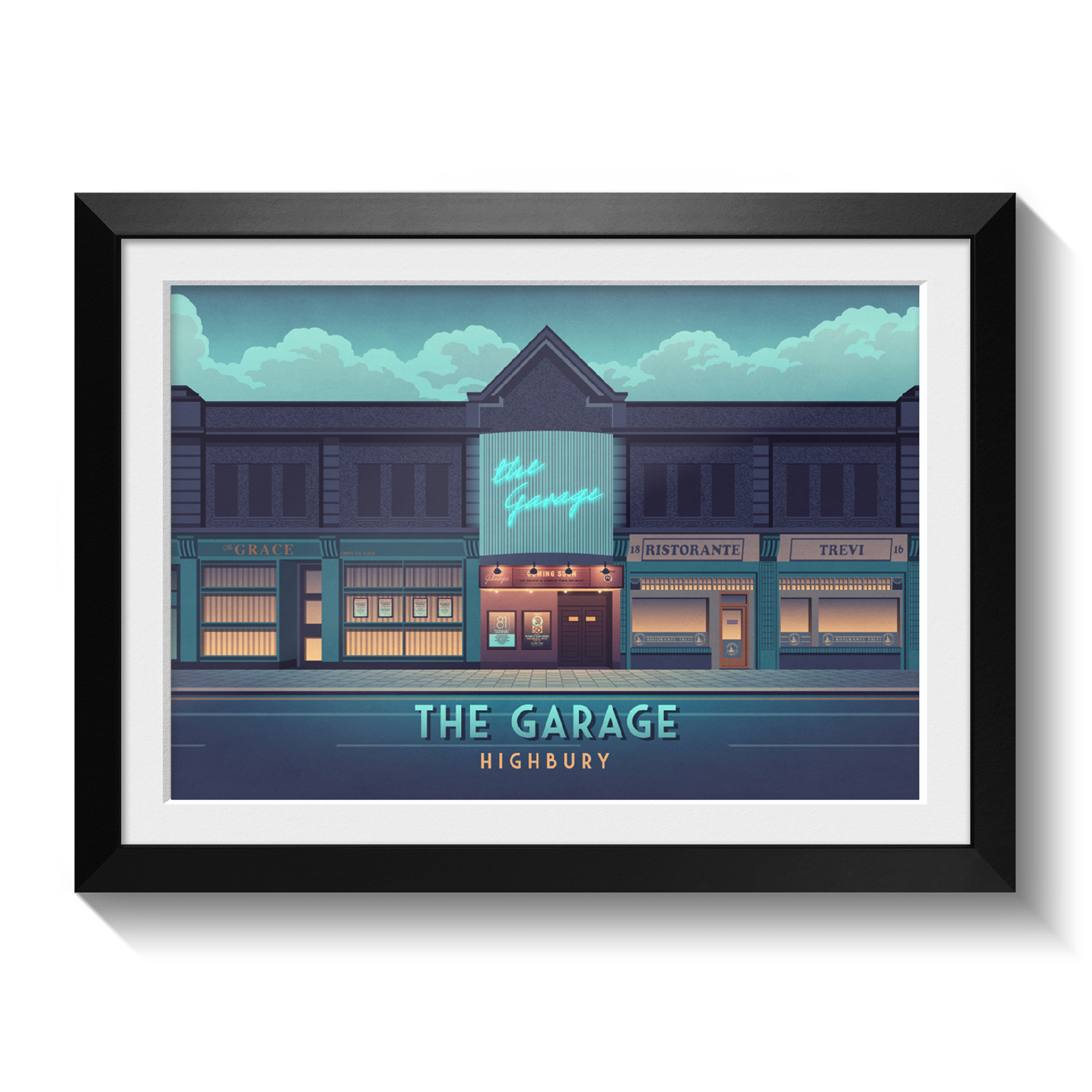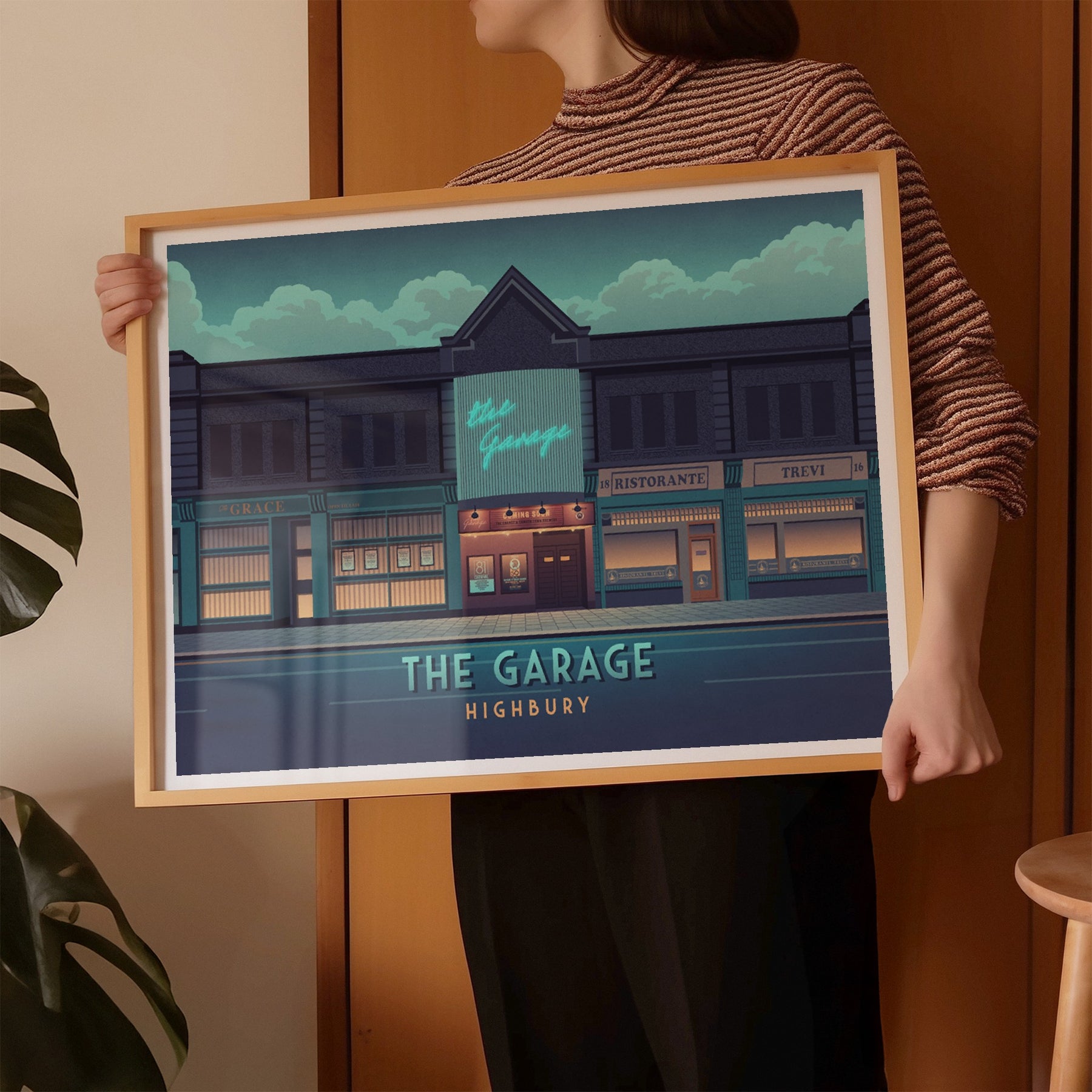 An original music venue poster featuring North London's The Garage. The Garage originally opened as the Temperance Billiard Hall and became The Garage in 1993. It has hosted acts such as The Killers, Oasis, Red Hot Chilli Peppers, Mumford & Sons and Muse.