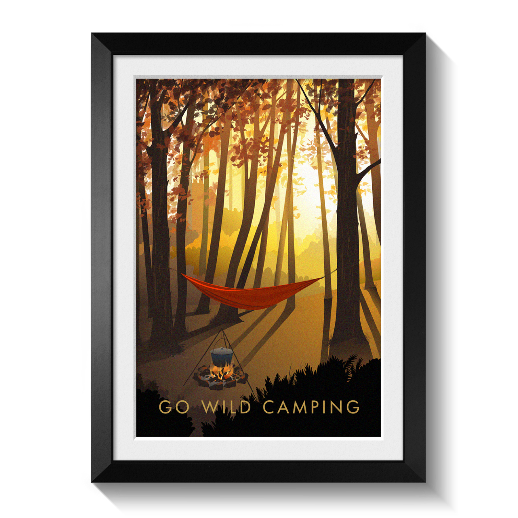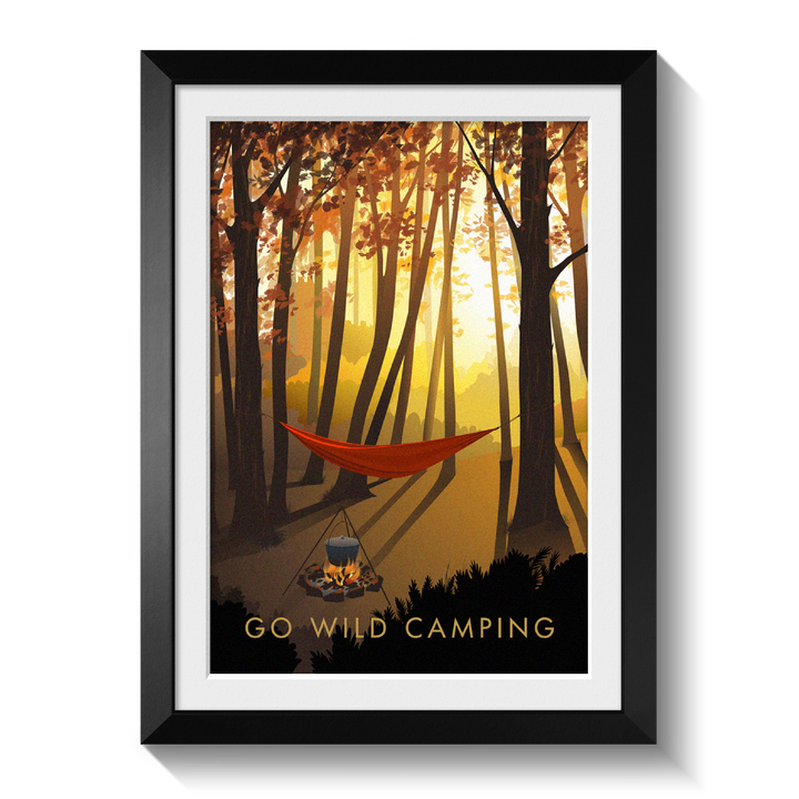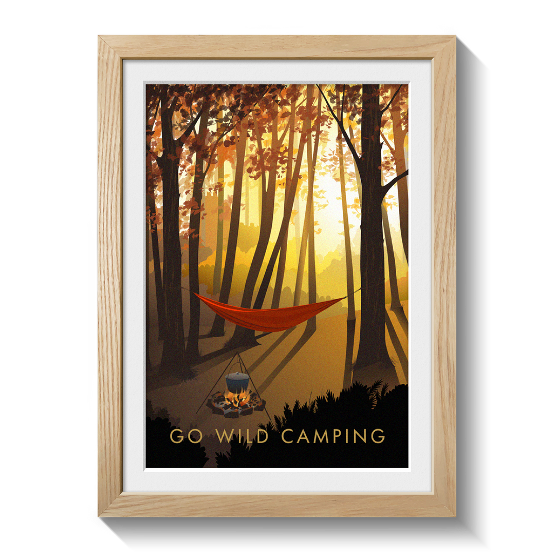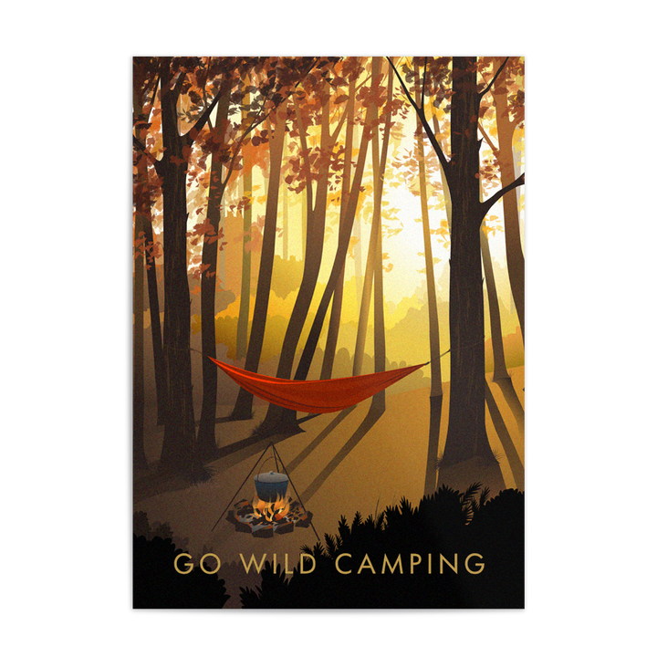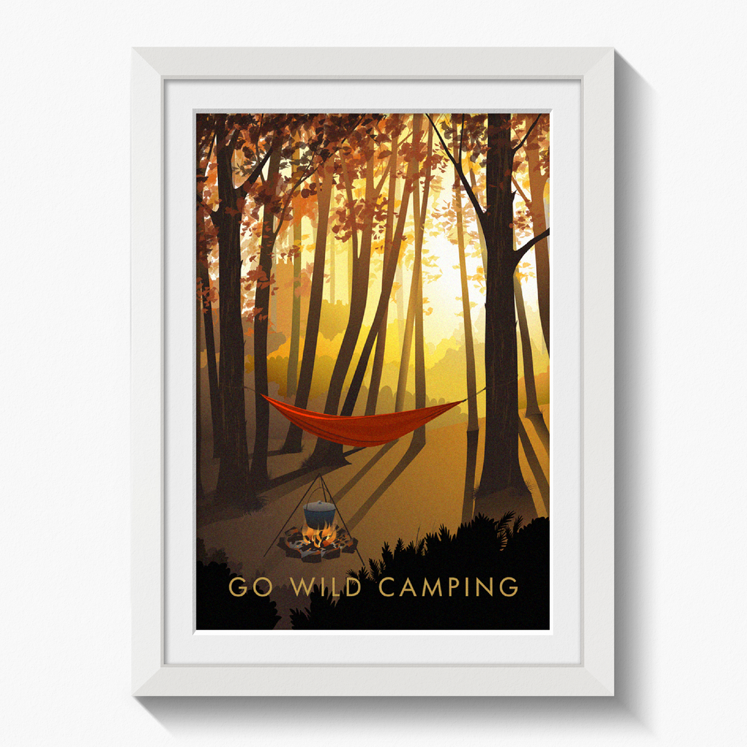 This is an original travel poster celebrating the popular outdoor pursuit of Wild Camping. A perfect gift for the adventurous wild camper in your life or a great way to celebrate your love of your favourite adventurous pursuit.