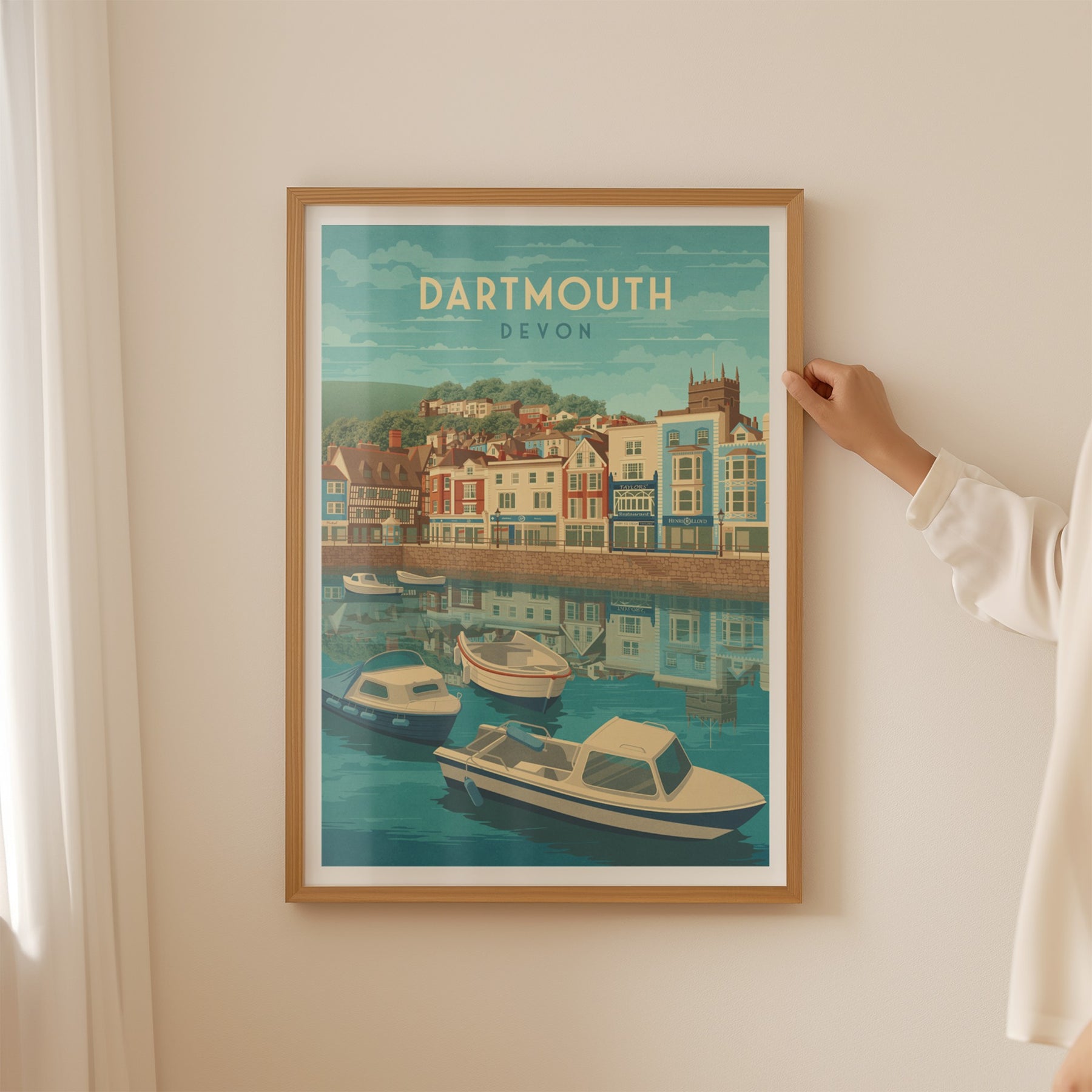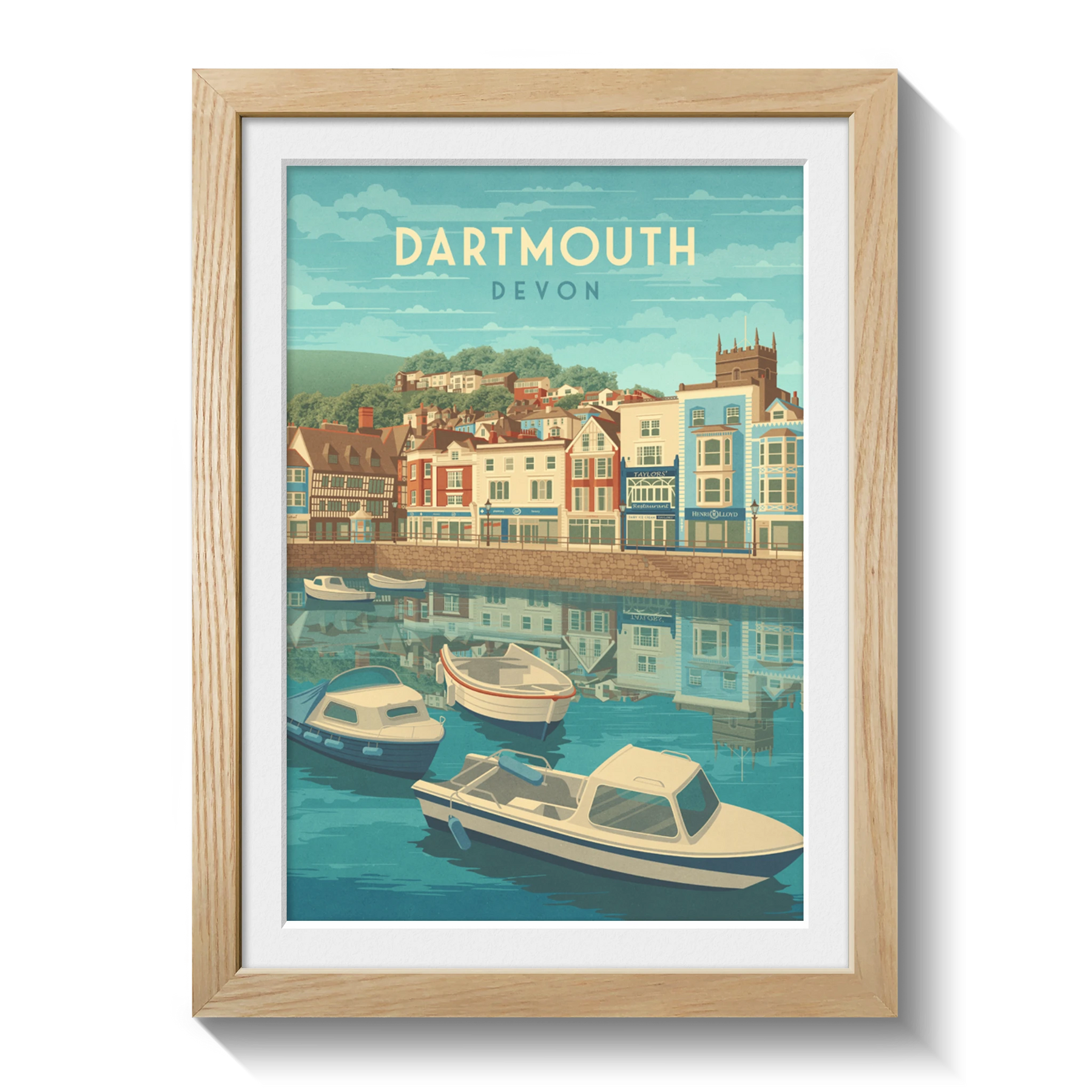 This Dartmouth travel poster captures the scenic charm of the harbour, with its colourful buildings and boats along the River Dart. Perfect for coastal lovers and travellers, it highlights the beauty of this historic Devon town. A stylish decor piece celebrating Dartmouth’s maritime heritage and picturesque waterfront views.